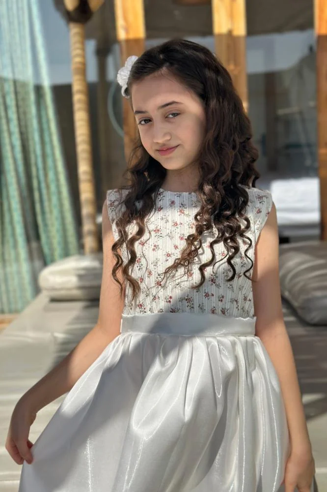 اجعلي طفلتك تتألق بإطلالة حالمة مع هذا الفستان الأبيض الأنيق. يتميز الفستان بتطريز فاخر يغطي الصدر ويضيف لمسة من الفخامة والرقي، مع تنورة بيضاء منسدلة بتصميم بسيط وانسيابي. يناسب الفستان الفتيات من عمر 2 إلى 12 سنة، ليكون الخيار المثالي للمناسبات الخاصة والأعياد.