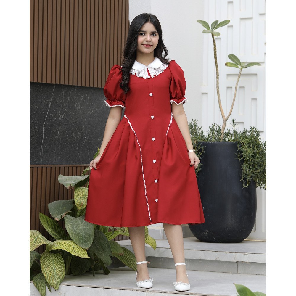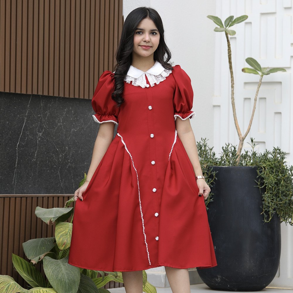 فخامة اللون الأحمر.. حين يعانق البريق تفاصيل الأميراتهناك ألوان تفرض هيبتها بمجرد النظر إليها، واللون الاحمر هو ملك الأناقة الراقية. نقدم لكِ الموديل 1161، قطعة فنية تجمع بين عمق اللون الملكي وبريق الفصوص اللامعة التي تملأ التصميم حياةً وفخامة. يبرز جمال الفستان من خلال الياقة "الدلعة" المبتكرة المرصعة بالفصوص، والتي تتناغم ببراعة مع تفاصيل الأكمام اللامعة وصف الأزرار الأمامية الذي يروي حكاية من الأناقة الكلاسيكية المتجددة. إنه ليس مجرد فستان، بل هو قطعة من الضوء صُممت لتجعل طفلتك تتألق كجوهرة في كل مناسبة. لماذا هذا الفستان هو قطعة الاستثناء في خزانة أميرتك؟لأنه يجمع بين التصميم الدرامي المبتكر وأدق التفاصيل الجمالية المرصعة:رقبة "دلعة" مرصعة بالبريق: تأتي الياقة بتصميم "دلعة" انسيابية تبرز جمال العنق بأسلوب أرستقراطي، ومحددة بصف من الفصوص اللامعة التي تضفي إشراقة فورية على وجه أميرتك.تفاصيل الأكمام الفاخرة: تزدان نهاية الأكمام بلمسات من الفصوص المتراصة، مما يعطي تناغماً مذهلاً مع الياقة ويبرز دقة وحرفية الشغل اليدوي في القطعة.أزرار أمامية بلمسة ملكية: يمتد على كامل الفستان من الأمام صف من الأزرار الأنيقة، والمميز هو تحديد جوانب الأزرار بالفصوص اللامعة، مما يعطي انطباعاً بالفخامة والتميز في أدق التفاصيل ويبرز طول القامة بأسلوب راقٍ.لون الأحمر يفيض بالهيبة: تم اختيار درجة الاحمر بعناية لتناسب مختلف ألوان البشرة وتمنح أميرتك حضوراً طاغياً في حفلات الزفاف، الأعياد، والزيارات الرسمية.قصة انسيابية مريحة: يجمع التصميم بين المظهر الفخم والراحة المطلقة، مما يتيح لأميرتك الحركة واللعب بكل ثقة وأناقة طوال وقت الحفل.جودة تليق بلحظات لا تُنسى نحن في "توتي كيدز" نؤمن أن التميز يبدأ من جودة التنفيذ. هذا الفستان مصنوع بحرفية عالية جداً، مع تقنيات تثبيت متطورة للفصوص تضمن بقاءها ساطعة ومثبتة بإتقان مهما تعددت مرات الارتداء، لتظل القطعة محتفظة برونقها الفاخر كأول يوم.امنحيها إطلالة تشرق بـفخامة الأحمر وسحر البريق! اجعلي من مناسبة أميرتك القادمة مهرجاناً للأناقة والجمال بقطعة تجمع بين الفن والترف.✨ اطلبيه الآن (موديل 1161) ودعي أميرتك الصغيرة تشرق بجمال لا يقاوم! ✨ شاركينا إطلالتها الساحرة!يسعدنا دائماً رؤية أميراتكم يتألقن بتصاميمنا التي تعكس ذوقكم الرفيع. ندعوكِ لمشاركة صورها وتقييمك للمنتج، فرأيك هو مصدر إلهامنا الدائم لنقدم الأفضل.خدماتنا: نقدم لكِ تجربة تسوق ممتعة مع شحن سريع وموثوق، وسياسة استبدال واسترجاع مرنة لضمان رضاكِ الكامل.