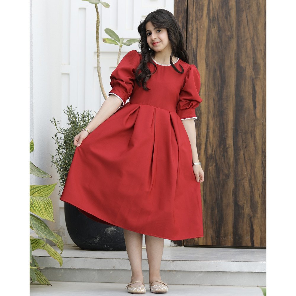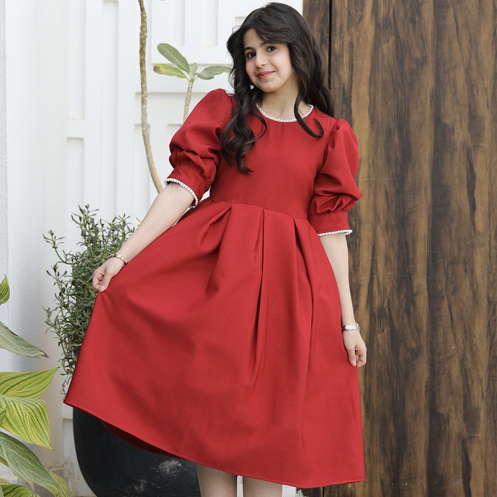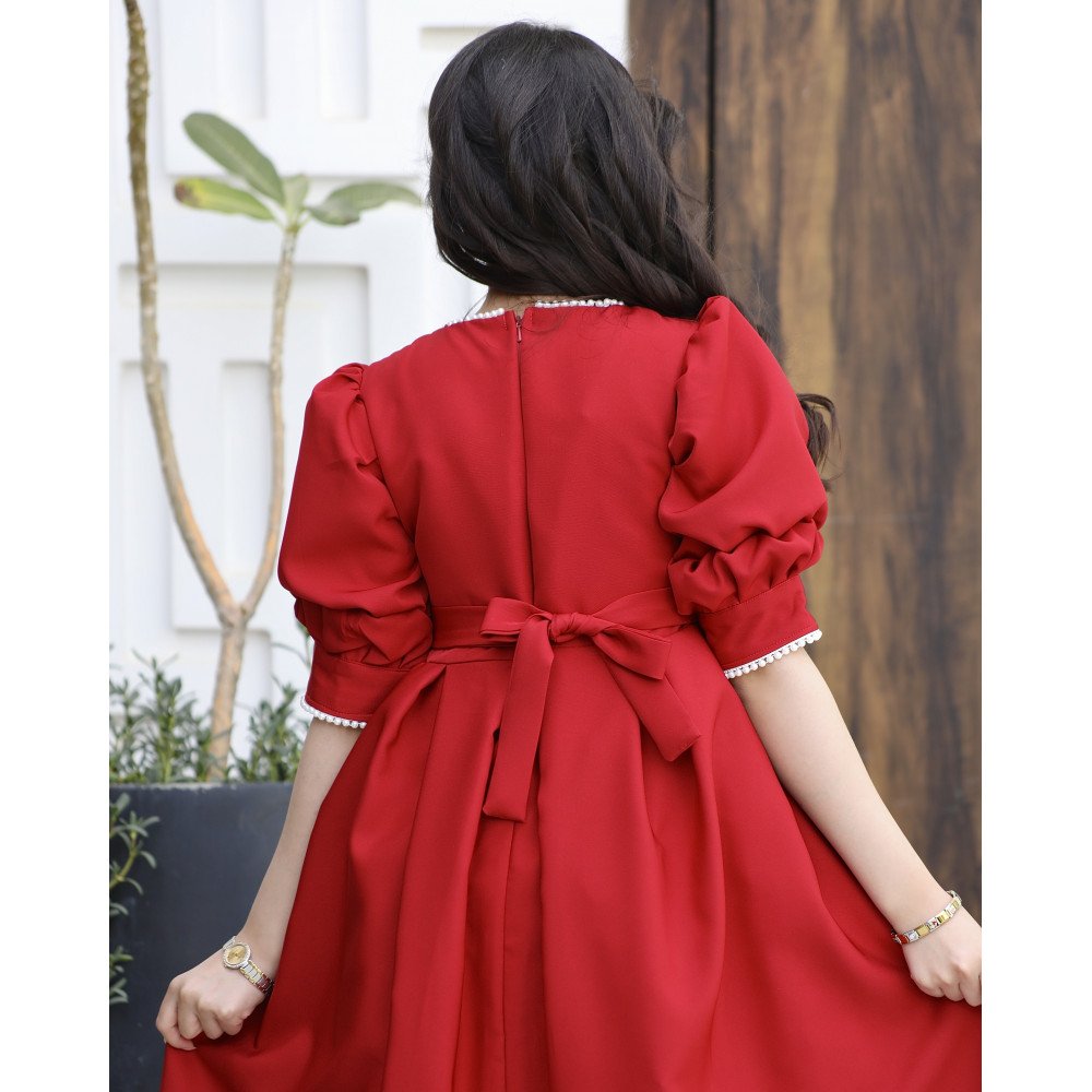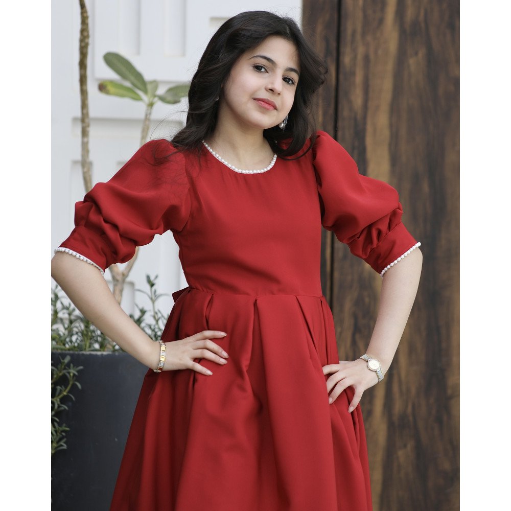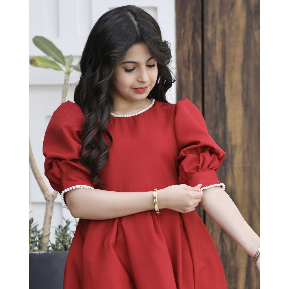 فخامة الأحمر .. حين يتوج ببريق اللؤلؤ الأبيضهناك فساتين تصمم لتبقى خالدة في صور الذكريات الجميلة، وهذا الفستان هو قطعة فنية تنبض بالرقي والبراءة في آن واحد. نقدم لكِ الموديل 1167، تصميم يجمع بين قوة اللون الأحمر الجذاب ونقاء حبات اللؤلؤ التي تزيّن تفاصيله بعناية فائقة. صُمم هذا الفستان ليمنح أميرتك الصغيرة حضوراً ملكياً يفيض بالأناقة الكلاسيكية، حيث يحيط اللؤلؤ بياقة الفستان كعقد ثمين، ويمتد ليمنح الأكمام لمسة من الترف والجمال. إنه ليس مجرد فستان، بل هو قطعة صُممت لتجعل من طفلتك أيقونة للأناقة في كل مناسبة. لماذا هذا الفستان هو قطعة الاستثناء لمناسباتك القادمة؟لأنه يجمع بين التصميم الانسيابي الفاخر وأدق التفاصيل الجمالية:ياقة مرصعة باللؤلؤ: تتميز الرقبة بياقة دائرية راقية محددة بالكامل بـ حبات اللؤلؤ الأبيض، مما يضفي بريقاً ملائكياً يضيء وجه طفلتك ويغني عن أي إكسسوارات إضافية.نهاية أكمام لؤلؤية: تأتي الأكمام بتصميم مريح وتنتهي بصف من اللؤلؤ المتراص عند المعصم، مما يضفي لمسة من الفخامة اليدوية (Handmade feel) مع كل حركة.ثلاثة ألوان ملكية: اختاري اللون الذي يعكس شخصية أميرتك؛ الأحمر المشرق للبهجة، أو العودي للهيبة الأرستقراطية، أو الليموني العصري لإطلالة منعشة.قصة مرتبة وأنيقة: ينسدل الفستان بقصة واسعة قليلاً توفر الراحة المطلقة وتمنح الجسم شكلاً متناسقاً، مما يجعله مثاليًا للاحتفالات الطويلة.مثالي لجميع المناسبات السعيدة: سواء كنتِ تبحثين عن فستان بناتي للعيد أو لحفلات الزفاف والزيارات الرسمية، فإن موديل 1167 هو الخيار الذي سيجعلها محط الأنظار.جودة تليق بلحظات لا تُنسى نحن في "توتي كيدز" ندرك أن التميز يبدأ من جودة التنفيذ. هذا الفستان مصنوع بحرفية عالية جداً، من أقمشة فاخرة تحافظ على رونقها وألوانها الزاهية، مع تقنيات تثبيت متطورة للؤلؤ تضمن بقاءه ساطعاً ومثبتاً بإتقان مهما تعددت مرات الارتداء، ليبقى الفستان ذكرى جميلة لأجمل الأوقات السعيدة.امنحيها إطلالة تتألق بـالأحمر وسحر اللؤلؤ! اجعلي من إطلالة أميرتك في المناسبة القادمة لوحة فنية لا تُنسى بقطعة تجمع بين الفن والترف.✨ اطلبيه الآن (موديل 1167) باللون المفضل لأميرتك ودعيها تشرق بجمال لا يقاوم! ✨ شاركينا إطلالتها الساحرة!يسعدنا دائماً رؤية أميراتكم يتألقن بتصاميمنا التي تعكس ذوقكم الرفيع. ندعوكِ لمشاركة صورها وتقييمك للمنتج، فرأيك هو مصدر إلهامنا الدائم لنقدم الأفضل.خدماتنا: نقدم لكِ تجربة تسوق ممتعة مع شحن سريع وموثوق، وسياسة استبدال واسترجاع مرنة لضمان رضاكِ الكامل.