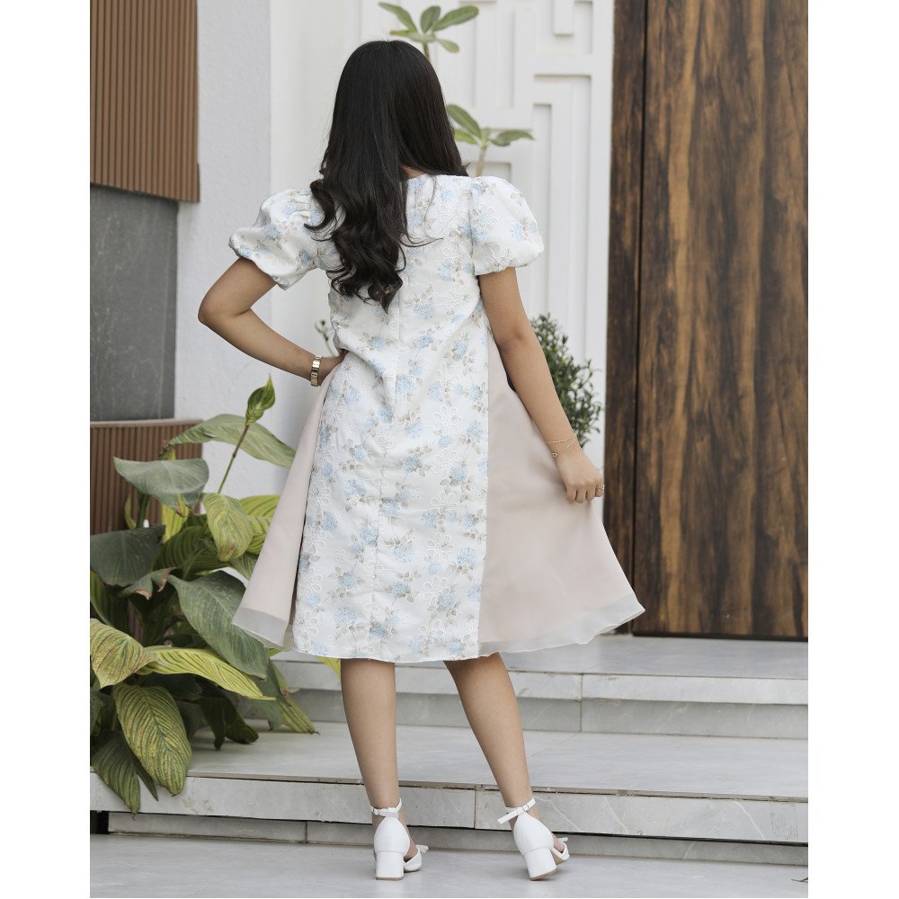 نسمات الربيع.. حين تلتقي الرقة بالراحة المطلقةهناك فساتين تُصمم لتكون عنواناً للبراءة والهدوء، وهذا الفستان هو تجسيد حي لتلك المشاعر الرقيقة. نقدم لكِ الموديل M3744، تحفة فنية تجمع بين صفاء اللون السماوي ودفء اللون البيج في نقشات زهور متناغمة تفيض بالجمال. صُمم هذا الفستان ليمنح أميرتك الصغيرة إطلالة حالمة ومنطلقة، بفضل قصته الواسعة التي تمنحها شعوراً بالحرية دون قيود الخصر التقليدية. إنه ليس مجرد فستان، بل هو نسمة باردة في يوم مشمش، مصمم ليجعل من طفلتك أيقونة للرقة والجمال الطبيعي في كل خطوة. لماذا هذا الفستان هو الخيار الأكثر رقة لأميرتك؟لأنه يجمع بين التصميم الانسيابي المبتكر وسحر الألوان الهادئة:تناغم السماوي والبيج: يتميز الفستان بمزيج لوني ساحر يجمع بين برودة السماوي ونعومة البيج، مما يخلق توازناً بصرياً مريحاً للعين ويناسب جميع ألوان البشرة.نقشة زهور رقيقة: يزدان الفستان بطبعات زهور ناعمة موزعة ببراعة، تعطي إيحاءً بالحدائق الغنّاء وتضفي طابعاً ربيعياً منعشاً على الإطلالة.قصة واسعة بدون خصر (Trapeze Cut): يتميز الفستان بتصميم عصري ينسدل باتساع من الأعلى وحتى الأسفل دون تحديد للخصر، مما يوفر راحة فائقة وحرية تامة في الحركة مع الحفاظ على المظهر الأنيق والمنفوش.رقبة "دلعة" انسيابية: الرقبة مصممة بقصة ناعمة ومريحة تتناغم مع انسيابية الفستان، مما يجعله قطعة مثالية للاحتفالات الطويلة والنزهات الراقية.مثالي للمناسبات الصيفية والأعياد: يجمع الفستان بين الفخامة والبساطة، مما يجعله الخيار الأول للأمهات اللواتي يبحثن عن "السهل الممتنع" في أناقة أميراتهن.جودة تليق بلحظات لا تُنسى نحن في "توتي كيدز" نؤمن أن الجمال يكتمل بالراحة. هذا الفستان مصنوع بحرفية عالية من أقمشة باردة وناعمة جداً على البشرة، مع خياطة متقنة تضمن بقاء الألوان الزاهية والقصة الواسعة محافظة على رونقها الفاخر حتى مع الاستخدام المتكرر. امنحيها إطلالة تشرق بـسحر الطبيعة!اجعلي من مناسبتها القادمة ذكرى لا تُمحى بقطعة تجمع بين الابتكار والراحة.✨ اطلبيه الآن (موديل M3744) ودعي أميرتك الصغيرة تشرق بجمال الزهور السماوية! ✨ شاركينا إطلالتها الساحرة!يسعدنا دائماً رؤية أميراتكم يتألقن بتصاميمنا التي تعكس ذوقكم الرفيع. ندعوكِ لمشاركة صورها وتقييمك للمنتج، فرأيك هو مصدر إلهامنا الدائم لنقدم الأفضل.خدماتنا: نقدم لكِ تجربة تسوق ممتعة مع شحن سريع وموثوق، وسياسة استبدال واسترجاع مرنة لضمان رضاكِ الكامل.