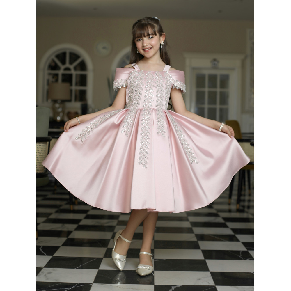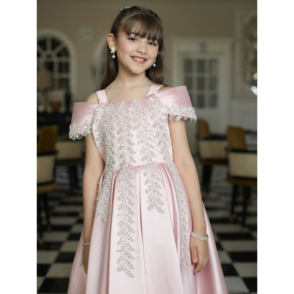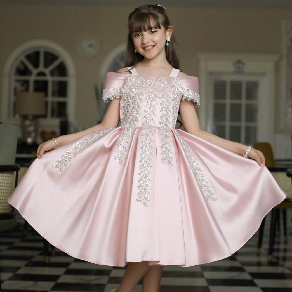 إطلالة ملكية.. على عرش الأناقة والرقيهناك فساتين تُلبس، وهناك فساتين تُتوج بها الأميرات. نقدم لكِ قطعة استثنائية صُممت لتكون تاج الأناقة في خزانة طفلتك، تحفة فنية تجمع بين فخامة قماش الساتان ودقة التطريز الفضي. بتصميمه الملكي وقصته المنفوشة، يروي هذا الفستان قصة من الذوق الرفيع، حيث كل تفصيلة فيه تنبض بالجمال والرقي. إنه ليس مجرد فستان، بل هو تجربة ملكية متكاملة، مصممة لتجعل من أميرتك نجمة متلألئة في أهم مناسباتها. لماذا هذا الفستان هو قطعة ملكية بامتياز؟لأنه يجمع بين التصميم الراقي، فخامة الأقمشة، والتفاصيل التي لا تُنسى.تصميم أوف شولدر ساحر: يتميز الفستان بقصة الأكتاف المكشوفة (أوف شولدر) التي تضفي لمسة من الأناقة الراقية والجاذبية.تطريز فضي فاخر: يزدان صدر الفستان بتطريزات فضية لامعة، تتناثر بنعومة لتخلق تأثيرًا بصريًا مذهلاً ينم عن حرفية عالية.قماش ساتان راقٍ: صُنع هذا الفستان البناتي الوردي للأفراح من قماش الساتان عالي الجودة، الذي يمنح التنورة قصة منفوشة وثابتة، مع لمعان راقٍ يعكس الضوء بأناقة.مثالي للمناسبات الكبرى: هذا الفستان البناتي بتطريز فضي هو الخيار الأمثل لحفلات الزفاف، والأعياد، والمناسبات الرسمية التي تتطلب إطلالة ملكية مكتملة. جودة تلمسينها في كل خيط من 1 - 18 سنة ✨ اطلبيه الآن ودعي أميرتك تتألق بسحر الطبيعة الخلاب! ✨