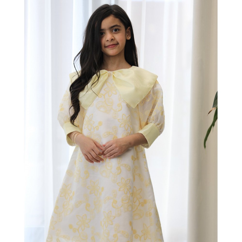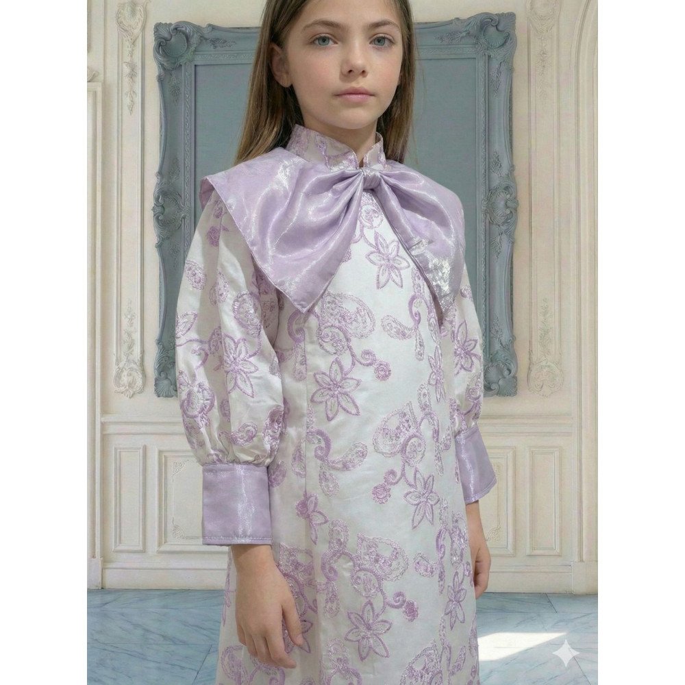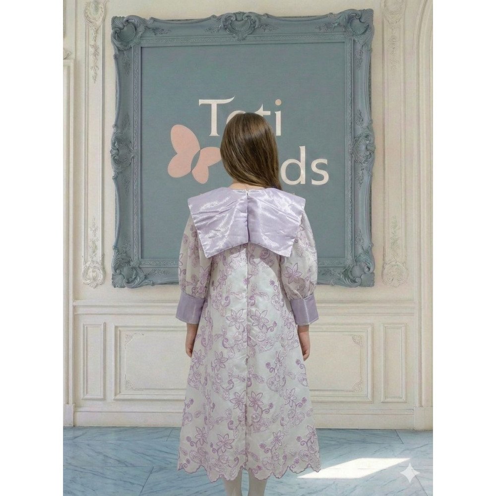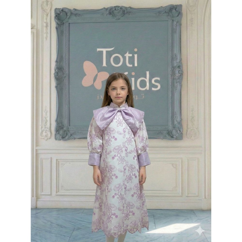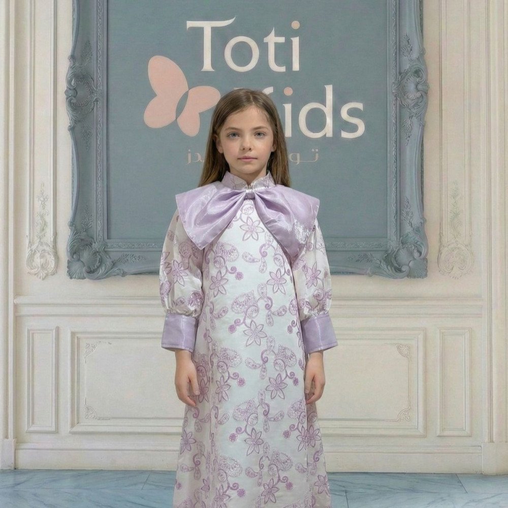 سحر البنفسجي .. حين تعانق البهجة رقي التفاصيل الملكيةفي "توتي كيدز"، نؤمن أن الأناقة تبدأ من الابتكار، وهذا الفستان هو احتفال حقيقي بالضوء والحيوية. نقدم لكِ الموديل 1134، قطعة فنية مستوحاة من انتعاش بساتين الزهور في ضوء الشمس. يبرز جمال هذا التصميم في الياقة الفريدة التي تحيط بالرقبة على شكل فيونكة ضخمة تنسدل بنعومة، مما يمنح أميرتك حضوراً درامياً يفيض بالبراءة والأناقة العصرية. إنه ليس مجرد فستان، بل هو نسمة صيفية صُممت لتجعل من طفلتك أيقونة للجمال في كل محفل. لماذا هذا الفستان هو خيارك الأرقى لمناسباتك القادمة؟لأنه يجمع بين التباين اللوني المنعش وأحدث صيحات الـ "كوتور" في عالم أزياء الأطفال:نقشة مشجرة بالبنفسجي: يتميز الفستان بقماش فاخر مطرز بنقشات زهور بنفسجيه رقيقة، تمنح طفلتك إشراقة طبيعية مذهلة تناسب تماماً أجواء العيد والمهرجانات.ياقة "الفيونكة" الأيقونية: الميزة الأبرز هي تصميم الرقبة (الدلعة) التي تأتي على شكل فيونكة كبيرة جداً، تلتف حول العنق وتضفي لمسة أرستقراطية فاخرة تغنيكِ تماماً عن استخدام أي إكسسوارات.أكمام شفافة حالمة: تأتي الأكمام بتصميم من القماش الشفاف الراقي بلمسة "باف" (Puff Sleeves)، تنتهي بأساور عريضة باللون بنفسجي الصافي، مما يعطي توازناً بصرياً مذهلاً وأناقة متكاملة.قصة "نص كلوش" انسيابية: ينسدل الفستان بقصة "نص كلوش" مفتوحة، تمنح الفستان حجماً جمالياً وحركة انسيابية ملكية مع كل خطوة، وتسمح لأميرتك باللعب والتحرك بكل خفة.حواف "سكالوب" فنية: ينتهي ذيل الفستان بحواف دائرية (Scalloped edge) مطرزة بعناية، مما يبرز دقة وحرفية العمل اليدوي في القطعة.جودة تليق بلحظات لا تُنسى نحن في "توتي كيدز" نضع الجودة في مقدمة أولوياتنا. هذا الفستان مصنوع بحرفية عالية من أقمشة باردة وناعمة تسمح لبشرة طفلتك بالتنفس، مع خياطة متقنة تضمن بقاء الفيونكة الضخمة والأكمام الشفافة محافظة على شكلها الفخم ورونقها مهما تعددت مرات الارتداء.امنحيها إطلالة تشرق بـبهجة البنفسجي وسحر الفيونكات! اجعلي من إطلالة أميرتك في المناسبة القادمة ذكرى لا تُمحى بقطعة تجمع بين الفن والتميز.✨ اطلبيه الآن (موديل 1134) ودعي أميرتك الصغيرة تشرق بجمال لا يقاوم! ✨ شاركينا إطلالتها الساحرة!يسعدنا دائماً رؤية أميراتكم يتألقن بتصاميمنا التي تعكس ذوقكم الرفيع. ندعوكِ لمشاركة صورها وتقييمك للمنتج، فرأيك هو مصدر إلهامنا الدائم لنقدم الأفضل.خدماتنا: نقدم لكِ تجربة تسوق ممتعة مع شحن سريع وموثوق، وسياسة استبدال واسترجاع مرنة لضمان رضاكِ الكامل.
