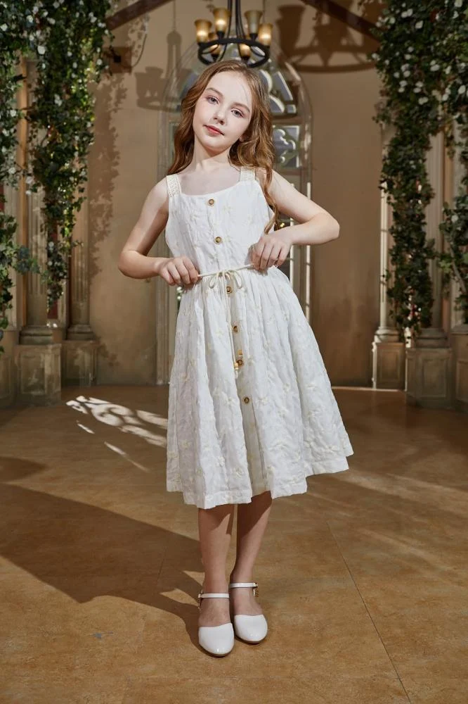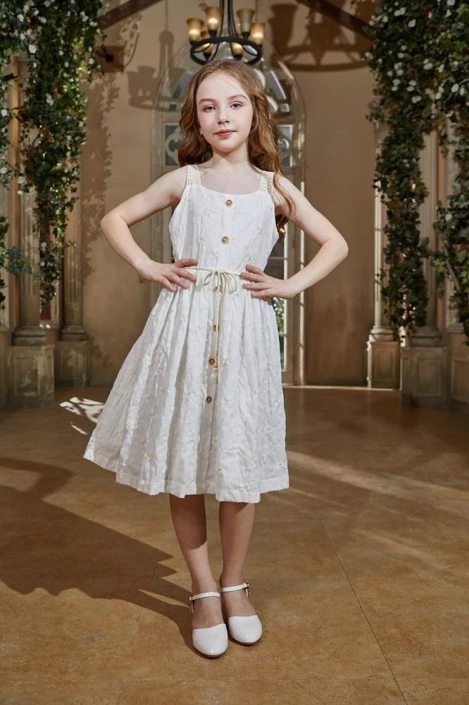 ✨ فستان بناتي بيج علاقي بأزرار أمامية – تصميم ميدي أنيق لعمر 2 إلى 12 سنة ✨