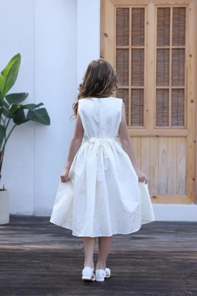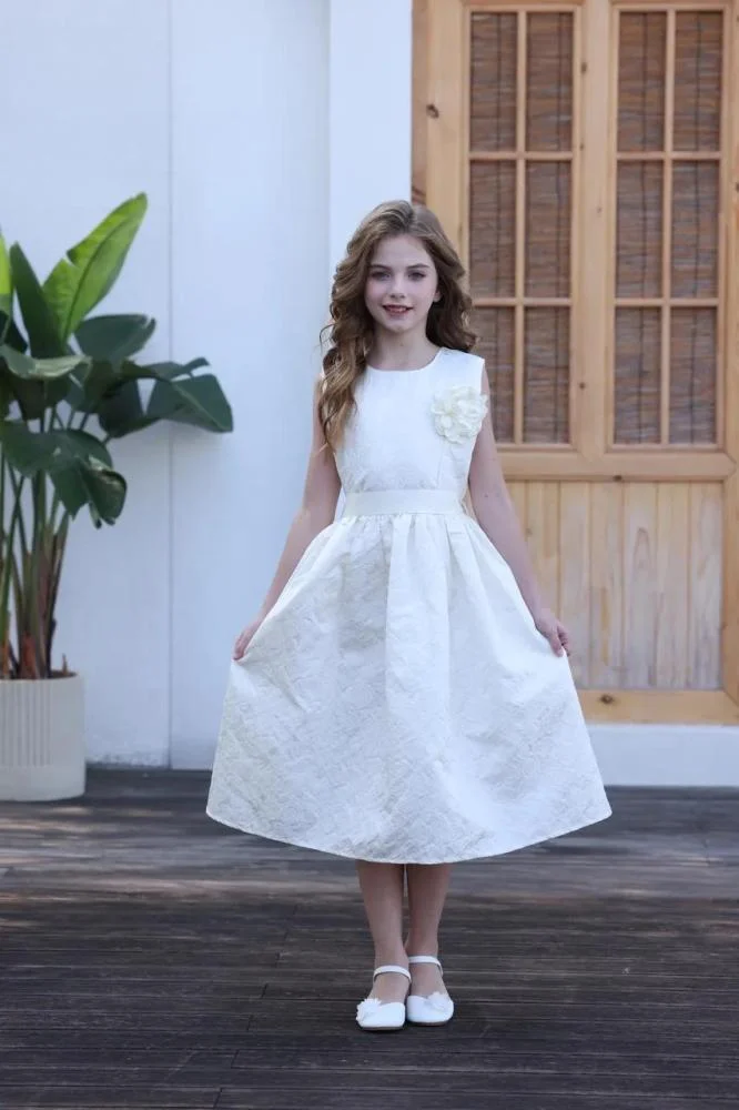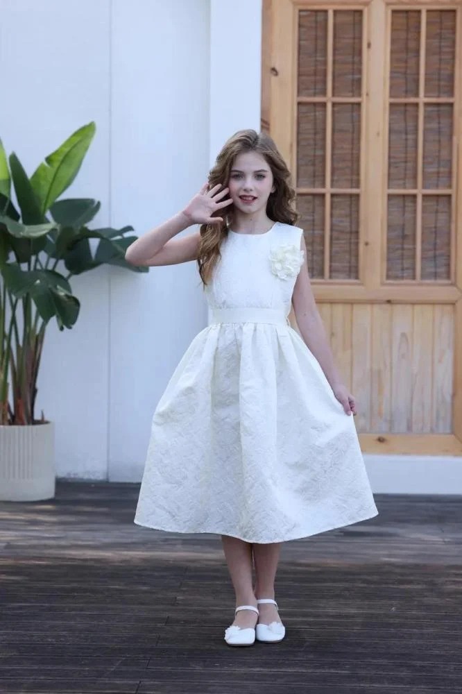 احصلي على إطلالة أنيقة لطفلتك مع هذا الفستان البناتي المميز باللون البيج الناعم، والمزين بتفاصيل أنيقة تجعل منه الخيار المثالي للمناسبات. يتميز الفستان بتصميم الكسرات في الجزء السفلي، مع حزام مميز على الخصر ووردة جميلة على الصدر تضفي لمسة من الأناقة والرقة.