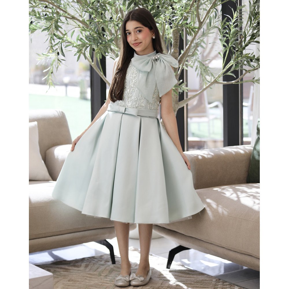 سحر التفاح المنعش.. حين تلتقي الفخامة برقة الطبقاتفي عالم الأناقة، يعتبر اللون "التفاحي" عنواناً للتميز والحيوية، وهذا الفستان هو القصيدة الأجمل في هذا اللون الفريد. نقدم لكِ الموديل M3824، تحفة فنية تجمع بين دقة التطريز اليدوي وجرأة التصميم العصري. صُمم هذا الفستان ليمنح أميرتك الصغيرة حضوراً طاغياً يفيض بالبهجة، حيث تلتقي فيونكة الكتف المرصعة بالاكسسوار اللامع مع تنورة الطبقات التي تمنحها هيبة الأميرات في كل خطوة. إنه ليس مجرد فستان، بل هو إعلان عن أناقة استثنائية تليق بأجمل لحظات العمر. لماذا هذا الفستان هو قطعة الاستثناء في خزانة أميرتك؟لأنه يجمع بين التصميم الدرامي المبتكر وأدق التفاصيل الجمالية:لون تفاحي مشرق وعصري: تم اختيار هذه الدرجة بعناية لتمنح طفلتك إشراقة فورية وتناسب الأجواء الاحتفالية الراقية، مما يجعلها محط الأنظار في أي تجمع.صدرية مطرزة ببراعة: يتميز الجزء العلوي بتطريزات فنية غنية، تضفي لمسة من الفخامة اليدوية وتبرز دقة وحرفية الشغل اليدوي (Handmade) في القطعة.فيونكة الكتف الأيقونية: يزدان الكتف بفيونكة ضخمة وأنيقة، يتوسطها إكسسوار لامع مرصع يغنيكِ تماماً عن إضافة الكثير من المجوهرات ويمنح وجه أميرتك بريقاً ملكياً.تنورة "الطبقات" المنفوشة: يتميز الجزء السفلي بتصميم طبقات متتالية يمنح الفستان حجماً ملكياً وحركة انسيابية ساحرة، مما يعطي إيحاءً بـ "التنورة والبلوزة" في قطعة واحدة متكاملة.قصة انسيابية مريحة: يجمع التصميم بين المظهر الفخم والراحة المطلقة، مما يتيح لأميرتك الحركة واللعب بكل ثقة وأناقة طوال وقت الاحتفال.مثالي لجميع المناسبات الكبرى: هذا الفستان هو الخيار الأول للأعياد، حفلات الزفاف، ومناسبات التخرج التي تتطلب إطلالة ملكية عصرية.جودة تليق بلحظات لا تُنسى نحن في "توتي كيدز" نؤمن أن التميز يبدأ من جودة التنفيذ. هذا الفستان مصنوع بحرفية عالية جداً، من أقمشة فاخرة تحافظ على رونقها، مع تقنيات تثبيت متطورة للتطريز والاكسسوارات لضمان بقائها ساطعة ومثبتة بإتقان مهما تعددت مرات الارتداء.امنحيها إطلالة تشرق بـسحر التفاح والبريق! اجعلي من مناسبة أميرتك القادمة ذكرى لا تُمحى بقطعة تجمع بين الفن والترف.✨ اطلبيه الآن (موديل M3824) ودعي أميرتك الصغيرة تتألق بجمالٍ لا يقاوم! ✨ شاركينا إطلالتها الساحرة!يسعدنا دائماً رؤية أميراتكم يتألقن بتصاميمنا التي تعكس ذوقكم الرفيع. ندعوكِ لمشاركة صورها وتقييمك للمنتج، فرأيك هو مصدر إلهامنا الدائم لنقدم الأفضل دائماً.خدماتنا: نقدم لكِ تجربة تسوق ممتعة مع شحن سريع وموثوق، وسياسة استبدال واسترجاع مرنة لضمان رضاكِ الكامل.