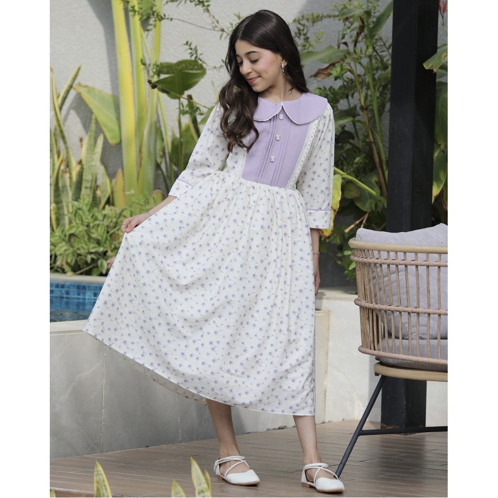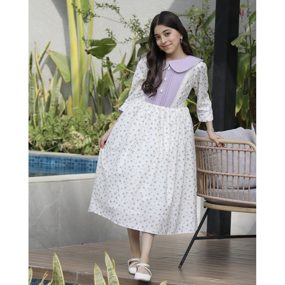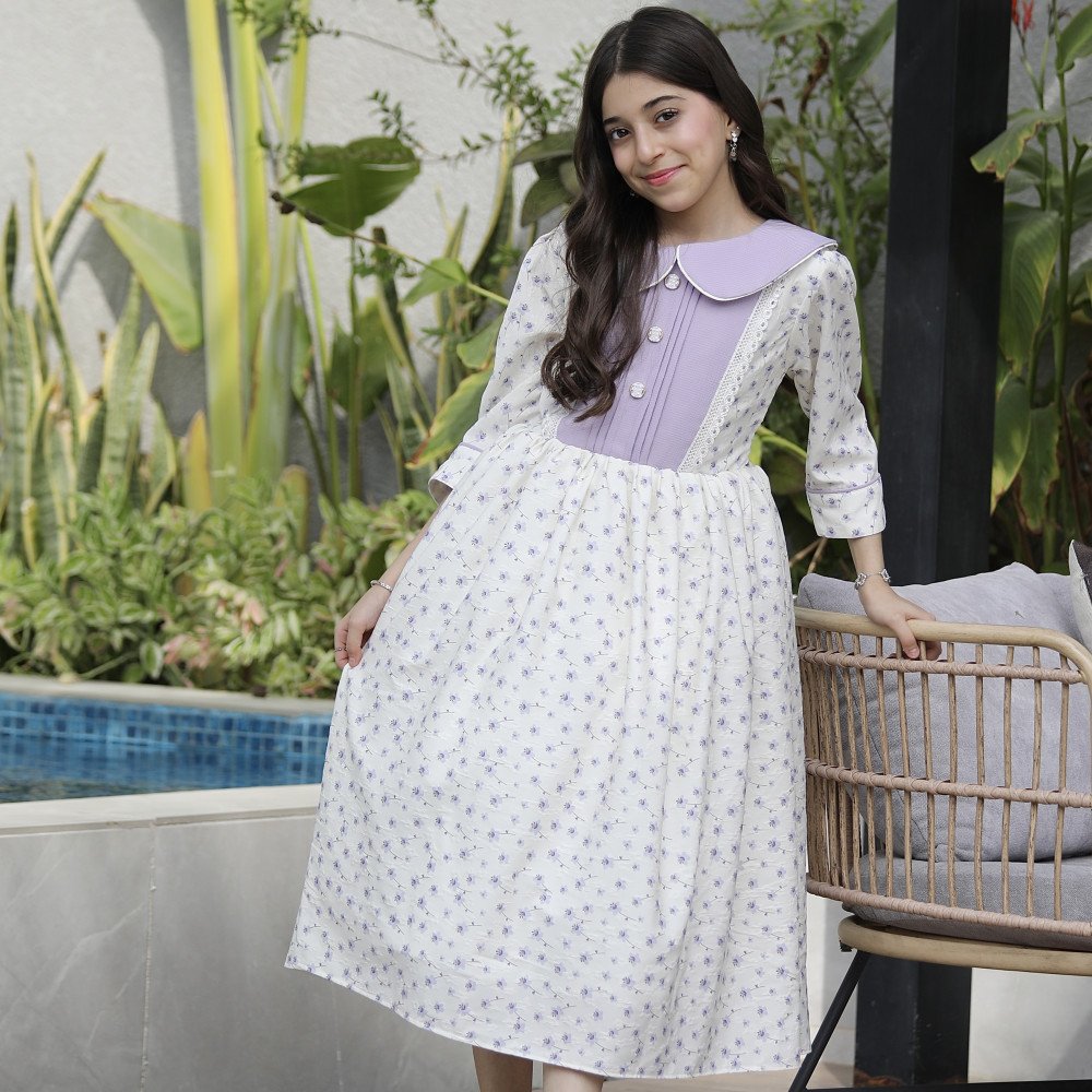 نسمات الخزامى.. إطلالة تعزف لحن الرقة والجمالفي عالم الأناقة، يظل اللون البنفسجي هو الخيار الأمثل للإطلالات الحالمة، وهذا الفستان هو تجسيد حي لذلك السحر بلمسة فنية مبتكرة. نقدم لكِ الموديل 1141، تحفة فنية تجمع بين حيوية الزهور البنفسجية ورقي التفاصيل الكلاسيكية. صُمم هذا الفستان ليمنح أميرتك الصغيرة إطلالة تخطف الأنظار، بفضل قطعة الصدر المميزة التي تم حياكتها ببراعة لتكون النقطة المحورية في التصميم. إنه ليس مجرد فستان، بل هو قطعة من البراءة والجمال مصممة لتجعل من طفلتك أيقونة للرقة والتميز في كل مناسبة. لماذا هذا الفستان هو قطعة التميز لمناسباتك القادمة؟لأنه يجمع بين التصميم المبتكر وسحر التفاصيل اليدوية:نقشة زهور بنفسجية ساحرة: يتميز الفستان بقماش فاخر بنقشات زهور بنفسجية متناغمة، تمنح طفلتك إشراقة هادئة وإطلالة تفيض بالحيوية والجمال.قطعة الصدر المميزة (Bib Style): يزدان الصدر بقطعة قماشية مضافة بتصميم فريد، محددة بـ كلفة (دانتيل) راقية تضفي لمسة من الفخامة اليدوية (Handmade look) وتبرز جمال القصة.أزرار كلاسيكية أنيقة: تتوسط قطعة الصدر صف من الأزرار الأنيقة التي تعزز الطابع الملكي والمنظم للفستان، وتضيف تفصيلاً جمالياً لا يقاوم.رقبة "دلعة" انسيابية: الرقبة مصممة بقصة "دلعة" ناعمة توفر الراحة التامة وتنسجم مع تفاصيل الكلفة المحيطة بالصدر لتعطي مظهراً متكاملاً وراقياً.قصة مريحة وفخمة: يجمع التصميم بين الاتساع المثالي والراحة المطلقة، مما يتيح لأميرتك الحركة بكل انسيابية مع الحفاظ على شكل الفستان الأنيق.جودة تليق بلحظات لا تُنسى نحن في "توتي كيدز" نؤمن بأن التميز يكمن في التفاصيل والجودة. هذا الفستان مصنوع بحرفية عالية من أقمشة ناعمة ولطيفة جداً على البشرة، مع خياطة متقنة تضمن ثبات قطعة الصدر والكلفة والأزرار لتبقى القطعة محتفظة برونقها الفاخر مهما طال الزمن وتعددت مرات الارتداء. امنحيها إطلالة تتألق بـسحر البنفسج!اجعلي من مناسبتها القادمة ذكرى لا تُمحى بقطعة تجمع بين الابتكار والجمال الربيعي.✨ اطلبيه الآن (موديل 1141) ودعي أميرتك الصغيرة تشرق بسحر الزهور والأزرار! ✨ شاركينا إطلالتها الساحرة!يسعدنا دائماً رؤية أميراتكم يتألقن بتصاميمنا. ندعوكِ لمشاركة صورها وتقييمك للمنتج، فرأيك هو مصدر إلهامنا الدائم لنقدم الأفضل.خدماتنا: نقدم لكِ تجربة تسوق ممتعة مع شحن سريع وموثوق، وسياسة استبدال واسترجاع مرنة لضمان رضاكِ الكامل.