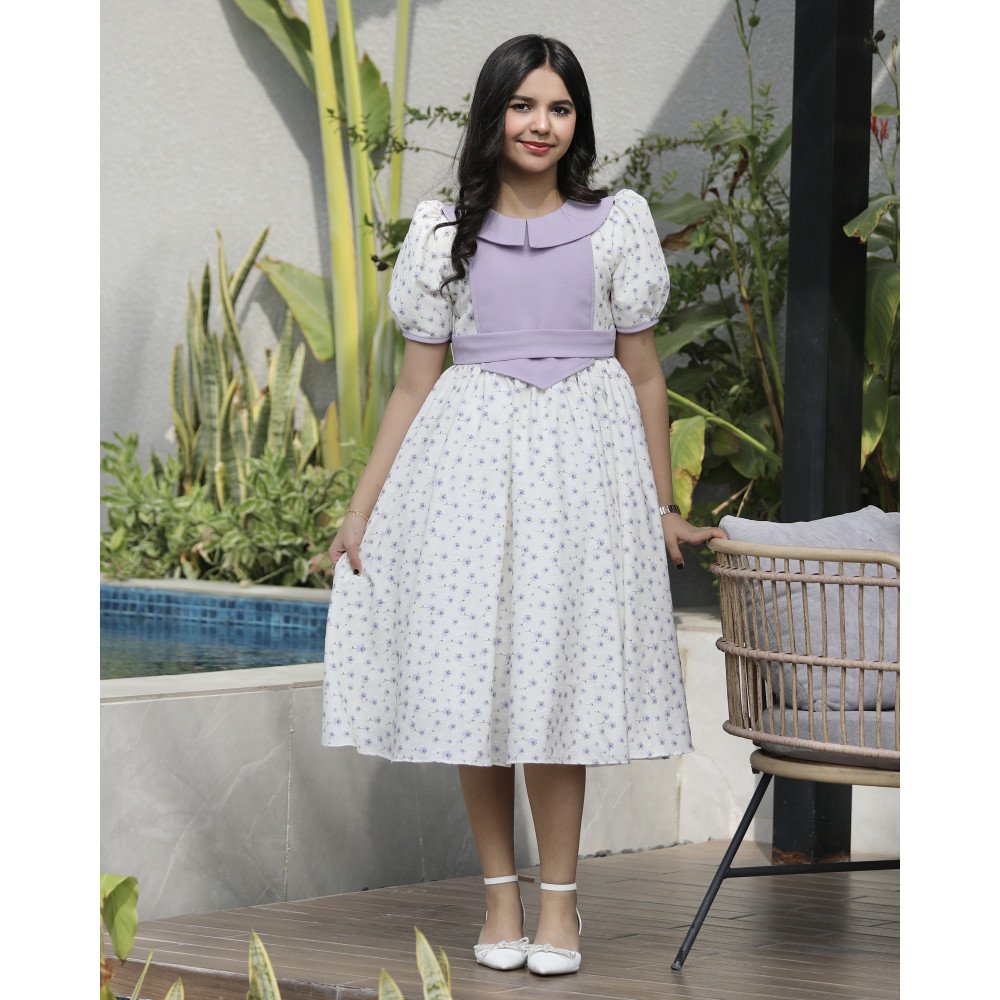 عبير الخزامى.. إطلالة تفيض بالرقة والأنوثةفي عالم الأناقة، للون البنفسجي سحرٌ لا يقاوم، وهذا الفستان هو تجسيد لذلك السحر في أبهى صوره. نقدم لكِ الموديل 1140، تحفة فنية مستوحاة من بساتين الخزامى، حيث تعانق الزهور البنفسجية قماشاً ناعماً ينسدل بجمال ملكي. صُمم هذا الفستان ليمنح أميرتك الصغيرة إطلالة حالمة، بفضل قطعة الصدر المبتكرة التي تنسدل بنعومة نحو الخصر، لتلتقي بحزام أنيق يبرز تفاصيل القصة. إنه ليس مجرد فستان، بل هو قطعة من البراءة والجمال مصممة لتجعل من طفلتك أيقونة للرقة في كل مناسبة. لماذا هذا الفستان هو قطعة التميز لمناسباتك القادمة؟لأنه يجمع بين التصميم الهندسي المبتكر وسحر الطبيعة الموردة:نقشة زهور بنفسجية ساحرة: يتميز الفستان بقماش فاخر بنقشات زهور بنفسجية متناغمة، تمنح طفلتك إشراقة هادئة وإطلالة تفيض بالرقة.قطعة الصدر المنسدلة (Overlay): يزدان الصدر بقطعة قماشية مضافة (قطعة نازلة) تمتد من الأكتاف وصولاً إلى الخصر، مما يعطي أبعاداً جمالية للفستان وطابعاً ملكياً فريداً.حزام الخصر الأنيق: يأتي الفستان مزوداً بحزام خصر يحدد القصة بدقة، مما يمنح أميرتك مظهراً مرتباً وأناقة كلاسيكية تبرز جمال التصميم.رقبة "دلعة" انسيابية: الرقبة مصممة بقصة "دلعة" ناعمة توفر الراحة التامة وتنسجم مع قطعة الصدر المنسدلة لتعطي مظهراً متكاملاً.قصة "كلوش" مريحة: يجمع التصميم بين الفخامة والراحة المطلقة، مما يتيح لأميرتك الحركة بكل انسيابية مع الحفاظ على شكل الفستان المنفوش والراقي.جودة تليق بلحظات لا تُنسى نحن في "توتي كيدز" نؤمن بأن التميز يكمن في التفاصيل. هذا الفستان مصنوع بحرفية عالية من أقمشة باردة وناعمة جداً على البشرة، مع خياطة متقنة تضمن ثبات قطعة الصدر والحزام لتبقى القطعة محتفظة برونقها الفاخر مهما طال الزمن. امنحيها إطلالة تتألق بـسحر البنفسج!اجعلي من مناسبتها القادمة ذكرى لا تُمحى بقطعة تجمع بين الابتكار والجمال.✨ اطلبيه الآن (موديل 1140) ودعي أميرتك الصغيرة تشرق بسحر الزهور البنفسجية! ✨ شاركينا إطلالتها الساحرة!يسعدنا دائماً رؤية أميراتكم يتألقن بتصاميمنا. ندعوكِ لمشاركة صورها وتقييمك للمنتج، فرأيك هو مصدر إلهامنا الدائم لنقدم الأفضل.خدماتنا: نقدم لكِ تجربة تسوق ممتعة مع شحن سريع وموثوق، وسياسة استبدال واسترجاع مرنة لضمان رضاكِ الكامل.