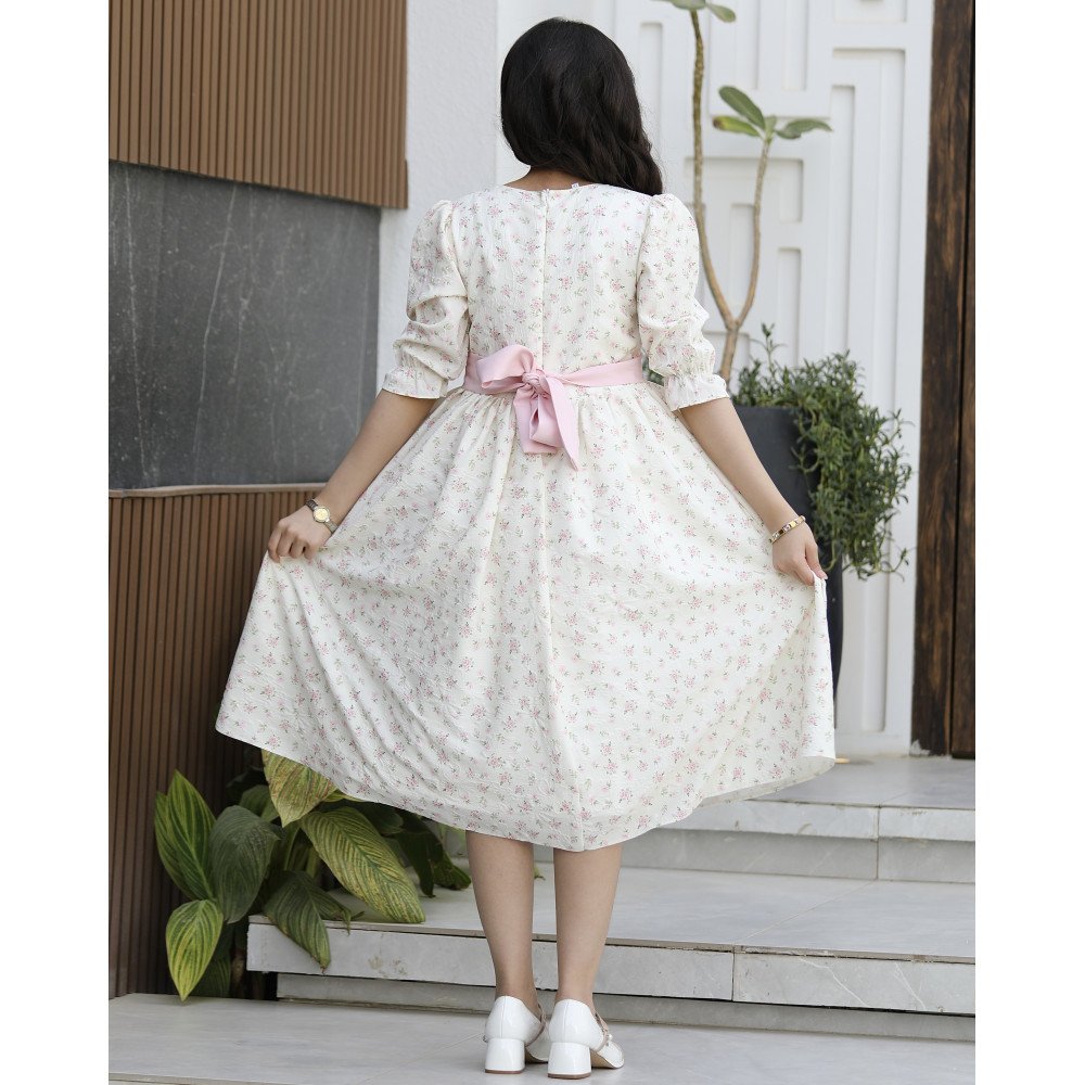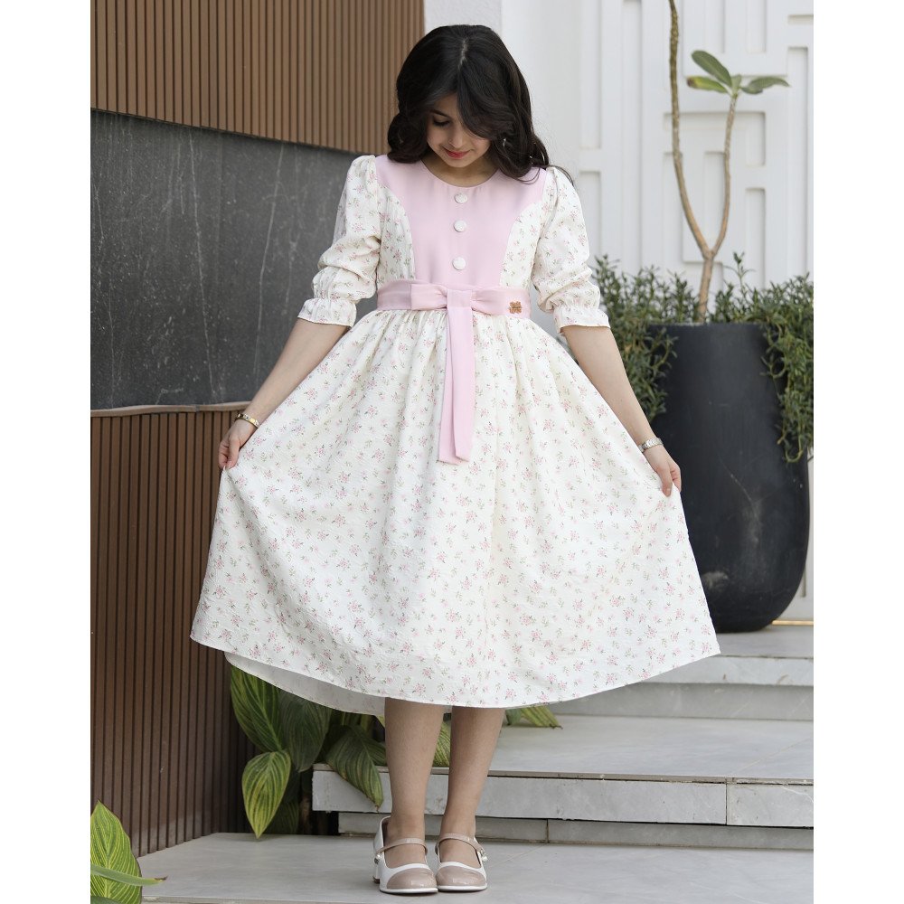 سحر التجدد.. إطلالة تجمع بين كلاسيكية الزهور وعصرية التصميمهناك إطلالات تخطف الأنظار ببساطتها، وهناك إطلالات تأسر القلوب بابتكارها، وهذا الفستان هو المزيج المثالي بينهما. نقدم لكِ الموديل 1155، تحفة فنية تحتفي بجمال الزهور الوردية مع لمسة تصميمية حديثة تضفي طابعاً استثنائياً. صُمم هذا الفستان ليمنح أميرتك حضوراً يفيض بالحيوية، حيث يلتقي القماش المورد بقطعة الصدر الوردية الصافية، وتتوج الإطلالة بفيونكة الخصر التي أعيد ابتكارها بشكل حديث وجذاب. إنه الخيار الأمثل لكل أم تبحث عن قطعة تجمع بين الرقة والتميز العصري. لماذا هذا الفستان هو قطعة التميز لموسمك القادم؟لأنه يجمع بين التباين اللوني الجميل والتفاصيل الهندسية الراقية:نقشة زهور وردية حيوية: يتميز الفستان بقماش منسوج بنقشات زهور وردية زاهية، تعطي إيحاءً بالبهجة والانطلاق وتناسب تماماً أجواء المناسبات السعيدة.قطعة الصدر الوردية الفاتحه المبتكرة: يزدان الصدر بقطعة قماشية باللون الوردي الصافي، تكسر نمط النقشات وتضيف لمسة من الهدوء والرقي لتبرز جمال ملامح طفلتك.فيونكة خصر بتصميم حديث: بدلاً من الفيونكات التقليدية، يتميز هذا الموديل بفيونكة خصر مصممة بشكل عصري وفريد، تعمل كقطعة مركزية تخطف الأنظار وتحدد الخصر بأناقة ملكية.رقبة "دلعة" ناعمة: الرقبة مصممة بقصة "دلعة" انسيابية توفر الراحة التامة وتضفي لمسة من البراءة والجمال على التصميم العام.قصة انسيابية مريحة: يجمع التصميم بين المظهر الفخم والراحة المطلقة، مما يتيح لأميرتك الحركة واللعب بكل ثقة مع الحفاظ على مظهرها المرتب والراقي.جودة تليق بلحظات لا تُنسى في "توتي كيدز"، الجودة هي شغفنا الأول. هذا الفستان مصنوع بحرفية عالية من أقمشة ناعمة ولطيفة جداً على بشرة الأطفال، مع خياطة متقنة تضمن بقاء الفيونكة والتفاصيل الهندسية في مكانها وبنفس رونقها حتى بعد الارتداء المتكرر. امنحيها إطلالة عصرية تفيض بالجمال!اجعلي من إطلالة أميرتك في العيد أو المناسبة القادمة ذكرى لا تُنسى بقطعة تجمع بين الابتكار والأناقة.✨ اطلبيه الآن (موديل 1155) ودعيها تتألق بسحر الزهور والفيونكة الحديثة! ✨ شاركينا إطلالتها الساحرة!يسعدنا دائماً رؤية أميراتكم يتألقن بتصاميمنا. ندعوكِ لمشاركة صورها وتقييمك للمنتج، فرأيك هو سر إلهامنا الدائم لنقدم الأفضل.خدماتنا: نقدم لكِ تجربة تسوق ممتعة مع شحن سريع وموثوق، وسياسة استبدال واسترجاع مرنة لضمان رضاكِ الكامل.