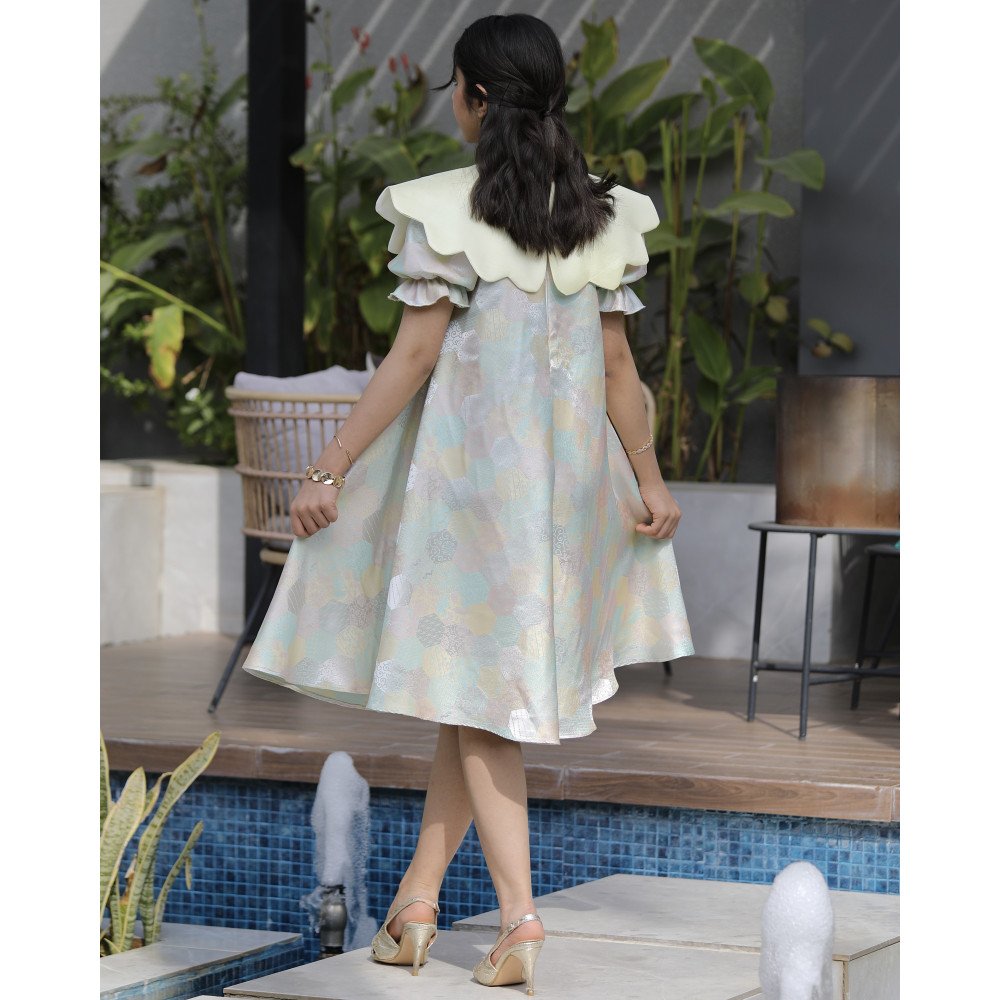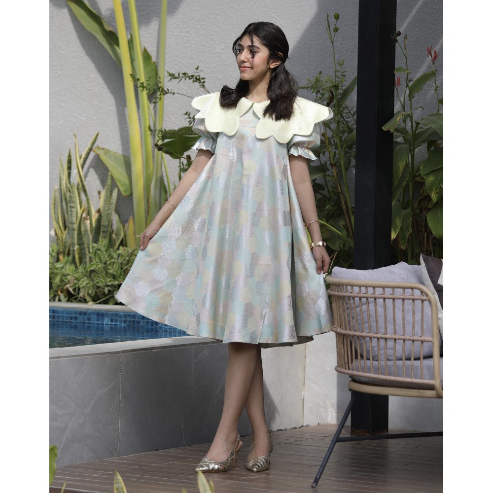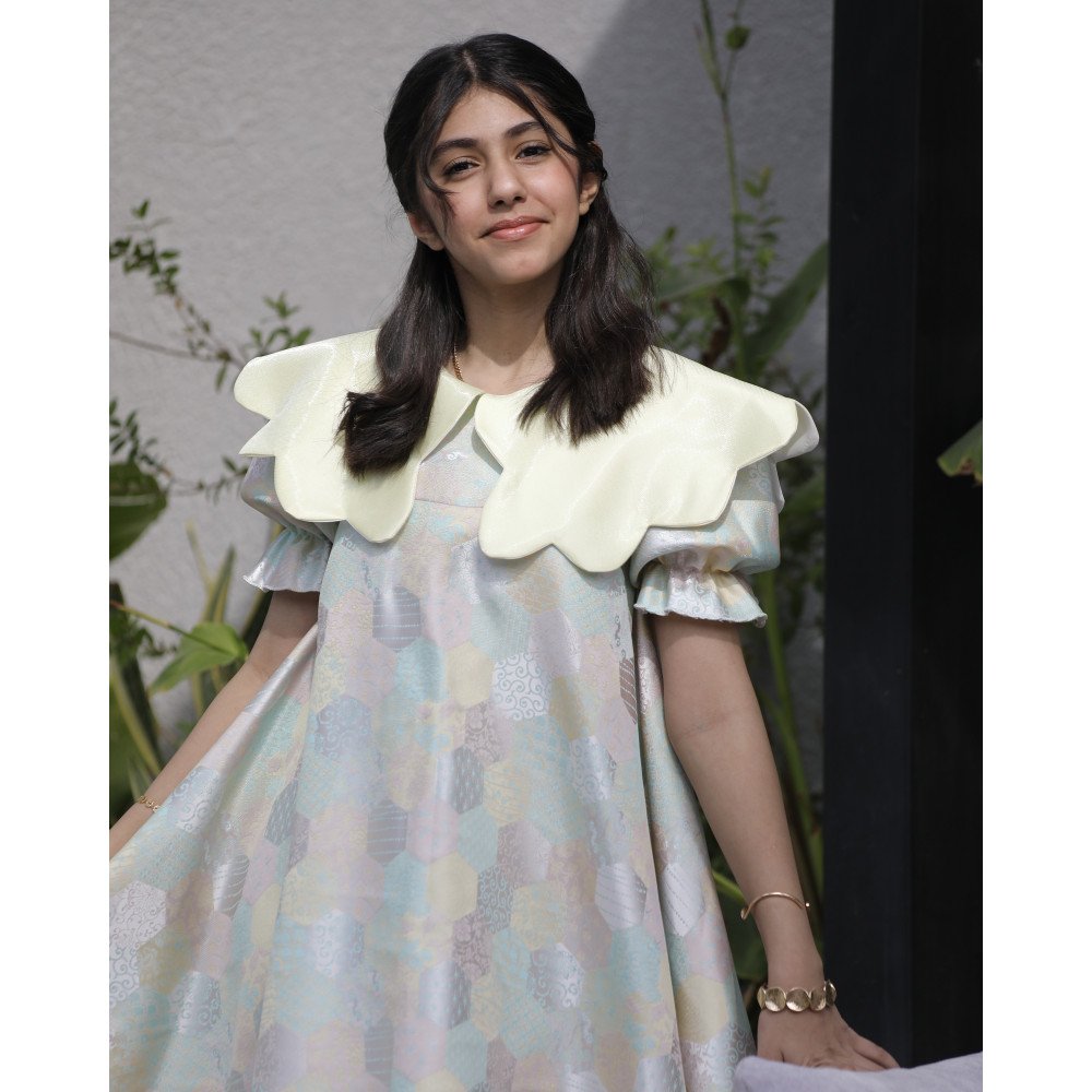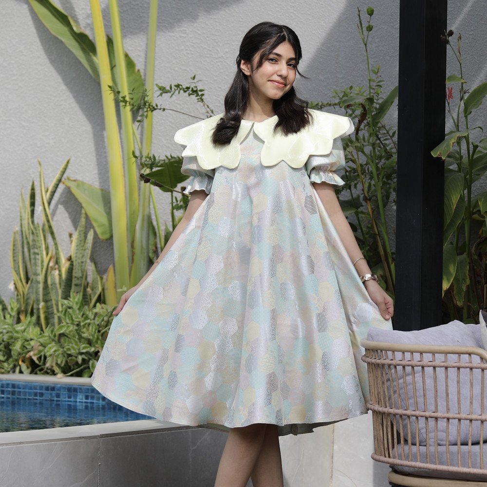 بهجة الألوان.. إطلالة فنية تتنفس حيوية وتجددهناك فساتين تُصمم لتكسر المألوف وترسم البهجة في كل زاوية، وهذا الفستان هو احتفالٌ حقيقي بالألوان والابتكار. نقدم لكِ الموديل 1182، قطعة فنية تجمع بين هندسة الأشكال السداسية الملونة ولمسات الصيف المشرقة. صُمم هذا الفستان ليمنح أميرتك الصغيرة إطلالة حيوية غير تقليدية، حيث تلتقي الدلعة الصفراء الجذابة بالقصة الواسعة والمفتوحة عند الخصر لتمنحها شعوراً بالحرية والأناقة في آن واحد. إنه ليس مجرد فستان، بل هو تجربة لونية فريدة تجعل طفلتك تتألق كلوحة فنية تنبض بالحياة. لماذا هذا الفستان هو الخيار الأكثر تميزاً لأميرتك؟لأنه يجمع بين الجرأة في التصميم والراحة المطلقة في الارتداء:نقشة سداسية ملونة (Kaleidoscope): يتميز الفستان بنقشات هندسية سداسية متداخلة بألوان مبهجة ومنسجمة، مما يضفي عليه طابعاً فنياً حديثاً يخطف الأنظار.دلعة صفراء مشرقة: تأتي منطقة الرقبة بتصميم "دلعة" باللون الأصفر الصافي، الذي يضفي إشراقة فورية على الوجه ويتناغم ببراعة مع ألوان النقشة السداسية.قصة الخصر المفتوح (Cut-out Details): يتميز الفستان بلمسة عصرية جريئة من خلال فتحات جانبية عند الخصر، مما يمنح التصميم تهوية مثالية وشكلاً عصرياً يواكب أحدث صيحات الموضة العالمية.تنورة واسعة (Full Flare): ينسدل الفستان بقصة واسعة جداً ومنفوشة، تمنح أميرتك حرية تامة في اللعب والرقص وتجعل حركتها تبدو كفراشة ملونة.مثالي للمناسبات الصيفية والأعياد: سواء كان الاحتفال في الهواء الطلق أو في مناسبة عائلية خاصة، فإن هذا الفستان يضمن بقاء طفلتك في قمة أناقتها وانطلاقها.جودة تليق بلحظات لا تُنسى نحن في "توتي كيدز" نؤمن أن التميز يبدأ من جودة التنفيذ. هذا الفستان مصنوع بحرفية عالية من أقمشة باردة وناعمة تسمح لبشرة طفلتك بالتنفس، مع خياطة متقنة تضمن ثبات الألوان والحفاظ على شكل القصة المبتكرة حتى مع الاستخدام المستمر. امنحيها إطلالة تشرق بـالألوان والابتكار!اجعلي من إطلالة أميرتك في مناسبتها القادمة ذكرى لا تُنسى بقطعة تجمع بين الفن والجرأة.✨ اطلبيه الآن (موديل 1182) ودعيها تتألق بسحر الأشكال السداسية! ✨ شاركينا إطلالتها الفنية!يسعدنا جداً أن نرى أميراتكم يتألقن بهذا التصميم الاستثنائي. ندعوكِ لمشاركة صورها وتقييمك للمنتج، فرأيك هو مصدر إلهامنا الدائم.خدماتنا: نقدم لكِ تجربة تسوق ممتعة مع شحن سريع وموثوق، وسياسة استبدال واسترجاع مرنة لضمان رضاكِ الكامل.