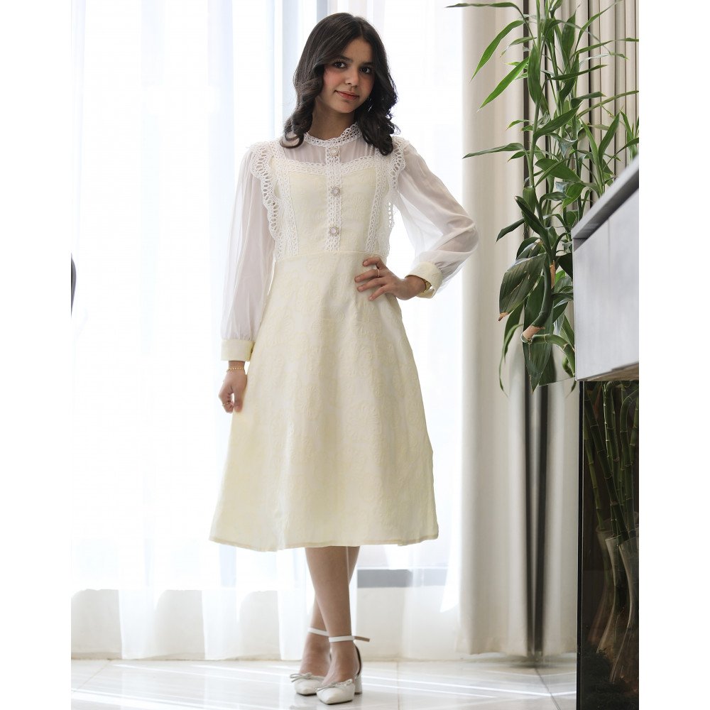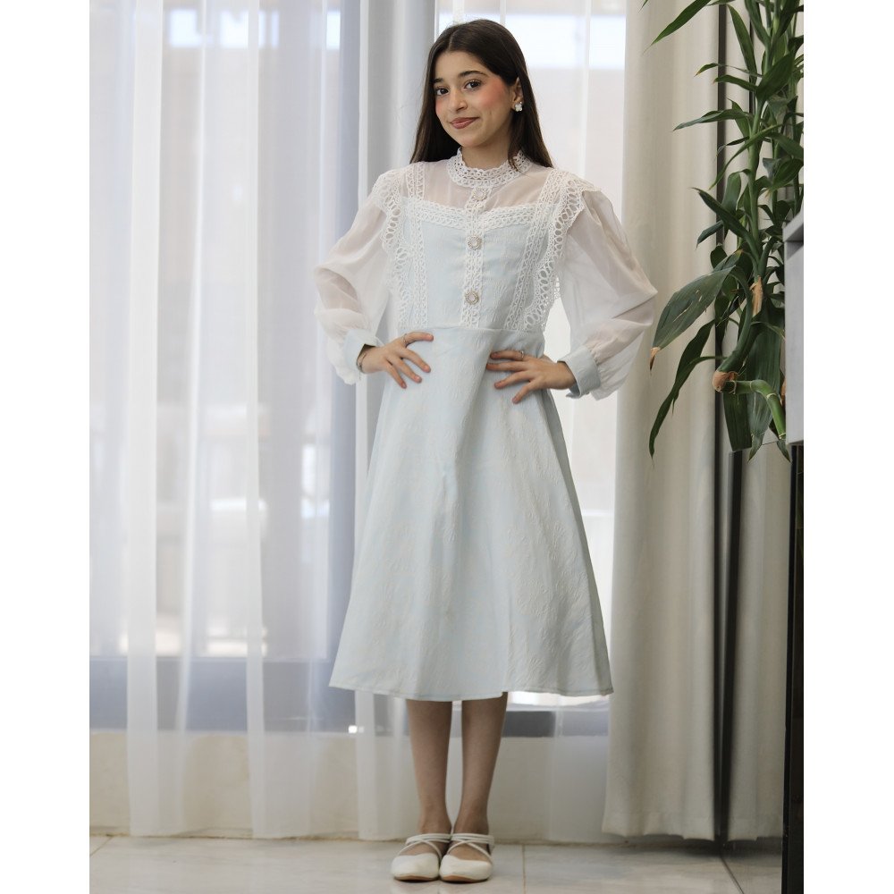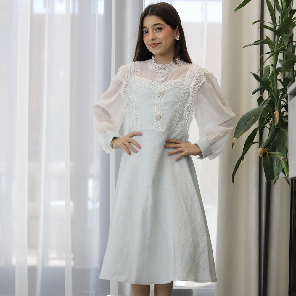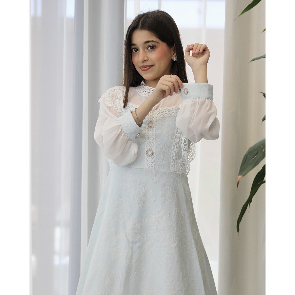 نسمات الأناقة.. حين تعانق النقوش سحر الشفافيةفي عالم "توتي كيدز"، نبتكر قطعاً تروي قصصاً من الجمال، وهذا الفستان هو القصيدة الأجمل التي تجمع بين وقار النقوش الراقية ورقّة التفاصيل الشفافة. نقدم لكِ الموديل kj2101، تحفة فنية صُممت لتمنح أميرتك الصغيرة حضوراً استثنائياً يفيض بالنعومة والترف. يبرز جمال الفستان من خلال "الكلفة البيضاء" المتقنة التي تزيّن الصدر بأسلوب ملكي، وتكتمل اللوحة بالأكمام والرقبة الشفافة التي تضفي لمسة ملائكية حالمة على الإطلالة العامة. إنه ليس مجرد فستان، بل هو تجسيد للأناقة التي تخطف الأنظار في كل محفل. لماذا هذا الفستان هو قطعة الاستثناء في خزانة أميرتك؟لأنه يجمع بين التصميم الدرامي المبتكر وأدق التفاصيل الجمالية:نسيج بنقوش راقية: يتميز الفستان بقماش فاخر منسوج بنقوش دقيقة تمنح القطعة عمقاً جمالياً وفخامة تليق بأرقى المناسبات، كما يتوفر بلونين ساحرين؛ السماوي الصافي والليموني المشرق.كلفة بيضاء ملكية: يزدان الصدر بقطعة عريضة من الكلفة (الدانتيل) البيضاء المتقنة، التي تضفي لمسة أرستقراطية فاخرة وتغنيكِ عن إضافة أي إكسسوارات معقدة.رقبة وأكمام شفافة حالمة: تأتي الرقبة والأكمام بتصميم من القماش الشفاف الراقي، مما يمنح الفستان طابعاً أنثوياً رقيقاً ويبرز براءة وجمال أميرتك بأسلوب عصري.أزرار زينة فاخرة: يتوسط الصدر صف من الأزرار الأنيقة التي تعزز الطابع الملكي للفستان وتضيف تفصيلاً جمالياً يعكس دقة التصميم.قصة انسيابية مريحة: يجمع التصميم بين المظهر الفخم والراحة المطلقة، مما يتيح للطفلة الحركة واللعب بكل خفة مع الحفاظ على مظهرها المرتب والراقي طوال وقت الحفل.جودة تليق بلحظات لا تُنسى نحن نؤمن أن التميز يبدأ من جودة التنفيذ. هذا الفستان مصنوع بحرفية عالية جداً، من أقمشة مختارة بعناية لتكون ناعمة على البشرة، مع خياطة متقنة تضمن بقاء الكلفة والأجزاء الشفافة محافظة على رونقها الفاخر مهما تعددت مرات الارتداء، ليبقى الفستان ذكرى جميلة لأجمل الأوقات السعيدة.امنحيها إطلالة تشرق بـسحر النقوش والشفافية! اجعلي من إطلالة أميرتك في المناسبة القادمة لوحة فنية لا تُنسى بقطعة تجمع بين الفن والترف.✨ اطلبيه الآن (موديل kj2101) باللون المفضل لأميرتك ودعيها تشرق بجمال لا يقاوم! ✨ شاركينا إطلالتها الساحرة!يسعدنا دائماً رؤية أميراتكم يتألقن بتصاميمنا التي تعكس ذوقكم الرفيع. ندعوكِ لمشاركة صورها وتقييمك للمنتج، فرأيك هو مصدر إلهامنا الدائم لنقدم الأفضل دائماً.خدماتنا: نقدم لكِ تجربة تسوق ممتعة مع شحن سريع وموثوق، وسياسة استبدال واسترجاع مرنة لضمان رضاكِ الكامل.