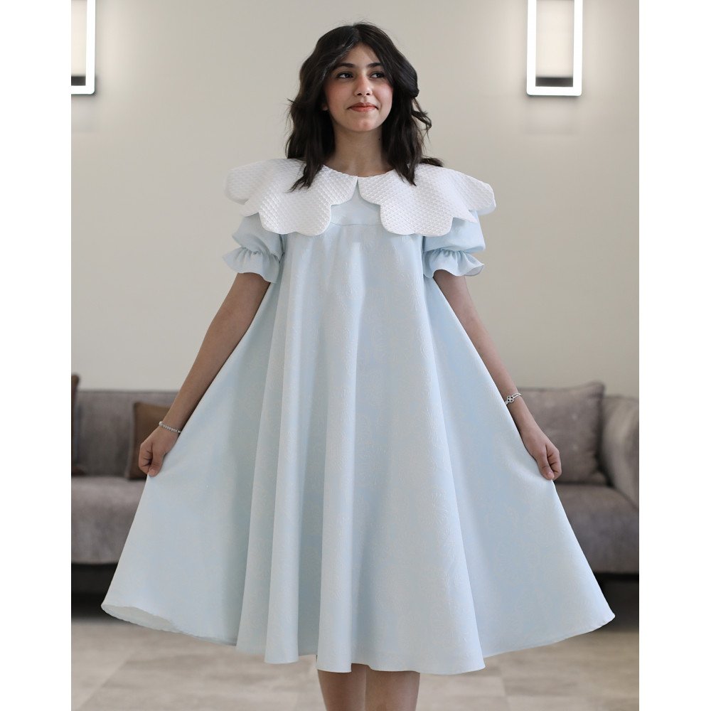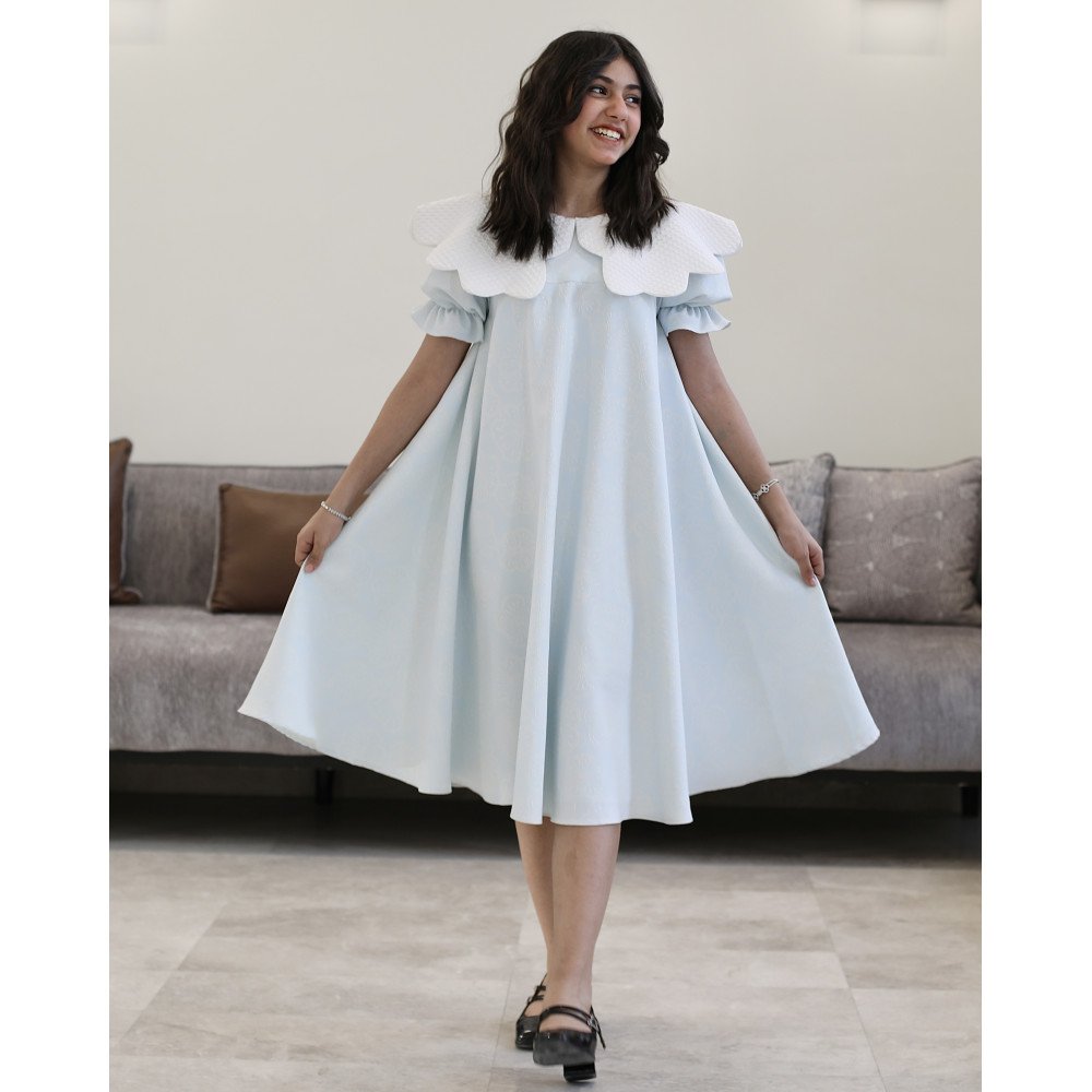سحر الزهور وعصرية الابتكار.. حين تعانق الأناقة حرية التصميمفي "توتي كيدز"، نؤمن أن الأناقة تبدأ من الابتكار الذي يروي حكايات التميز، وهذا الفستان هو التجسيد الحي للبهجة والجمال العصري. نقدم لكِ الموديل 1200، قطعة فنية تجمع بين كلاسيكية الزهور الملونة وجرأة التصميم الهندسي المبتكر. يبرز جمال هذا الفستان في "الدلعة البيضاء" التي تضيء وجه أميرتك بنقاء ملائكي، وتكتمل اللوحة بلمسة "الخصر المفتوح" الفريدة التي تمنح الفستان طابعاً "مودرن" يوفر تهوية مثالية وشكلاً ساحراً يواكب أحدث صيحات الموضة العالمية. إنه ليس مجرد فستان، بل هو إعلان عن حضور يجمع بين رقة الطفولة ورقي الأميرات في كل خطوة. لماذا هذا الفستان هو قطعة الاستثناء في خزانة أميرتك؟لأنه يجمع بين الهندسة الدقيقة للتصميم وأرقى أنواع الأقمشة الباردة والمشجرة:نقشة ورود مفعمة بالحياة: يتميز الفستان بقماش فاخر منسوج بطبعات ورود زاهية ومنسجمة، تمنح طفلتك إشراقة طبيعية مذهلة تناسب تماماً أجواء العيد والمهرجانات.تصميم "الخصر المفتوح" المبتكر: يتميز الخصر بفتحات جانبية مدروسة ببراعة، تمنح الفستان طابعاً عصرياً وجذاباً، وتوفر لأميرتك راحة فائقة وحرية تامة في الحركة مع الحفاظ على القوام المنفوش والراقي.دلعة (ياقة) بيضاء ملكية: تأتي منطقة الرقبة بتصميم "دلعة" بيضاء نقية، تضفي لمسة أرستقراطية ناعمة وتغنيكِ تماماً عن إضافة أي إكسسوارات معقدة حول العنق.قصة انسيابية مريحة: يجمع التصميم بين المظهر الرسمي المنسق والراحة المطلقة، مما يتيح للطفلة الحركة واللعب بكل خفة وثقة طوال وقت الاحتفال.مثالي لجميع المناسبات: تصميمه الفريد يجعله الخيار الأول للأعياد، حفلات أعياد الميلاد، وجلسات التصوير الاستثنائية التي تتطلب إطلالة لا تُنسى.جودة تليق بلحظات لا تُنسى نحن نضع الجودة في مقدمة أولوياتنا. هذا الفستان مصنوع بحرفية عالية جداً، من أقمشة باردة وناعمة تسمح لبشرة طفلتك بالتنفس، مع خياطة متقنة تضمن بقاء الألوان الزاهية وتفاصيل الخصر المفتوح محافظة على رونقها الفاخر وشكلها المنفوش مهما تعددت مرات الارتداء.امنحيها إطلالة تشرق بـسحر الزهور والابتكار! اجعلي من إطلالة أميرتك في المناسبة القادمة ذكرى لا تُمحى بقطعة تجمع بين الفن والتميز العصري.✨ اطلبيه الآن (موديل 1200) ودعي أميرتك الصغيرة تتألق بإشراقة لا تقاوم! ✨ شاركينا إطلالتها الساحرة!يسعدنا دائماً رؤية أميراتكم يتألقن بتصاميمنا التي تعكس ذوقكم الرفيع. ندعوكِ لمشاركة صورها وتقييمك للمنتج، فرأيك هو مصدر إلهامنا الدائم لنقدم الأفضل دائماً.خدماتنا: نقدم لكِ تجربة تسوق ممتعة مع شحن سريع وموثوق لجميع المناطق، وسياسة استبدال واسترجاع مرنة لضمان رضاكِ الكامل.