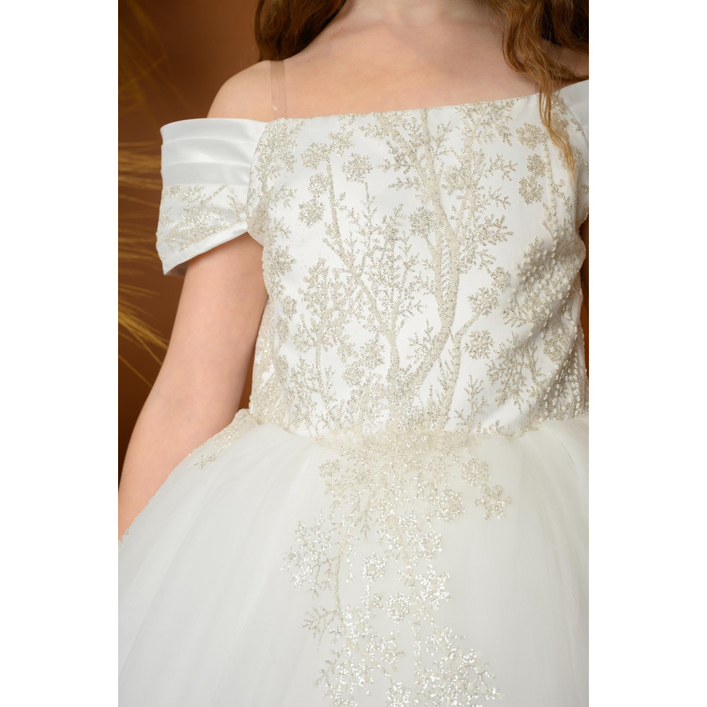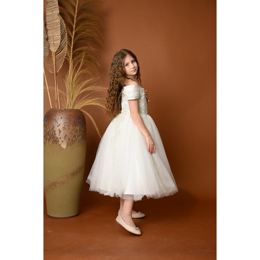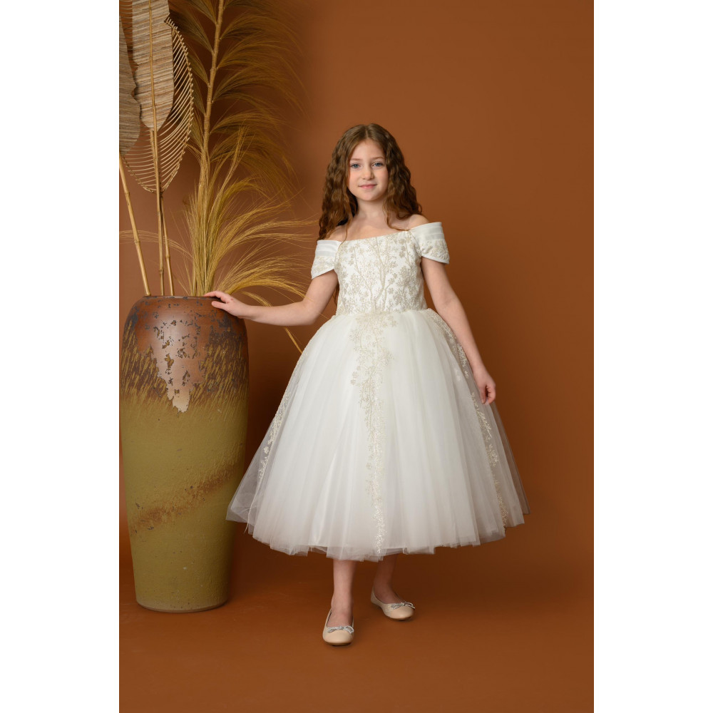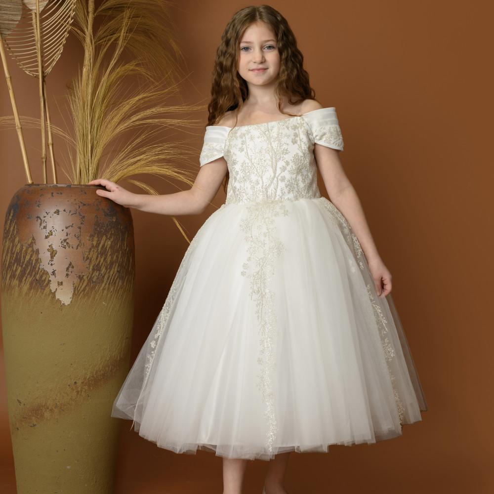 فستان سهرة بناتي أنيق من ماركة ميدي كيدز Midikids، مصمم بلون أبيض ملكي يناسب المناسبات الفاخرة مثل حفلات الزفاف والتخرج. يتميز بتصميم منفوش مع تطريزات ذهبية دقيقة تضفي لمسة راقية، وأكمام مكشوفة تمنح طفلتك إطلالة عصرية وجذابة. الفستان مصنوع من خامات فاخرة تضمن الراحة والجودة العالية. اجعلي صغيرتك تتألق بإطلالة أميرية مع هذا التصميم الرائع من علامة ميدي كيدز Midikids