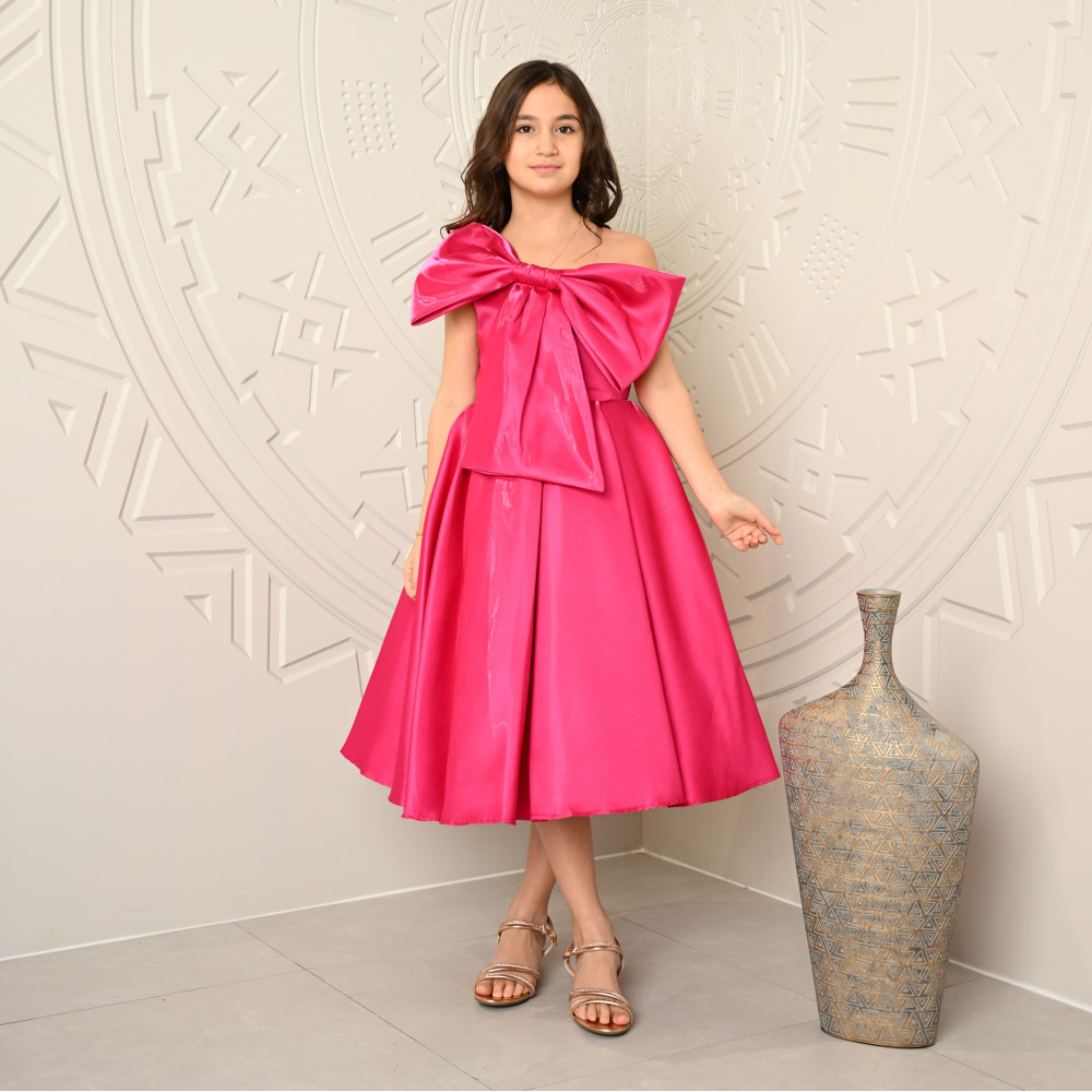 امنحي طفلتك إطلالة ساحرة ومفعمة بالأنوثة مع هذا الفستان الفوشيا الفاخر من توتي كيدز Totikids. يتميز الفستان بتصميم فيونكة كبيرة ملفتة على الصدر تضيف لمسة من الأناقة والرقي.القصّة المنفوشة تجعله الخيار المثالي للمناسبات الخاصة كحفلات الخطوبة، الزفاف، وأعياد الميلاد. القماش اللامع الفاخر يعكس الأناقة، بينما يمنح التصميم لطفلتك الراحة والتميز.اختاري هذا الفستان من توتي كيدز لإطلالة لا تُنسى في كل مناسبة خاصة.