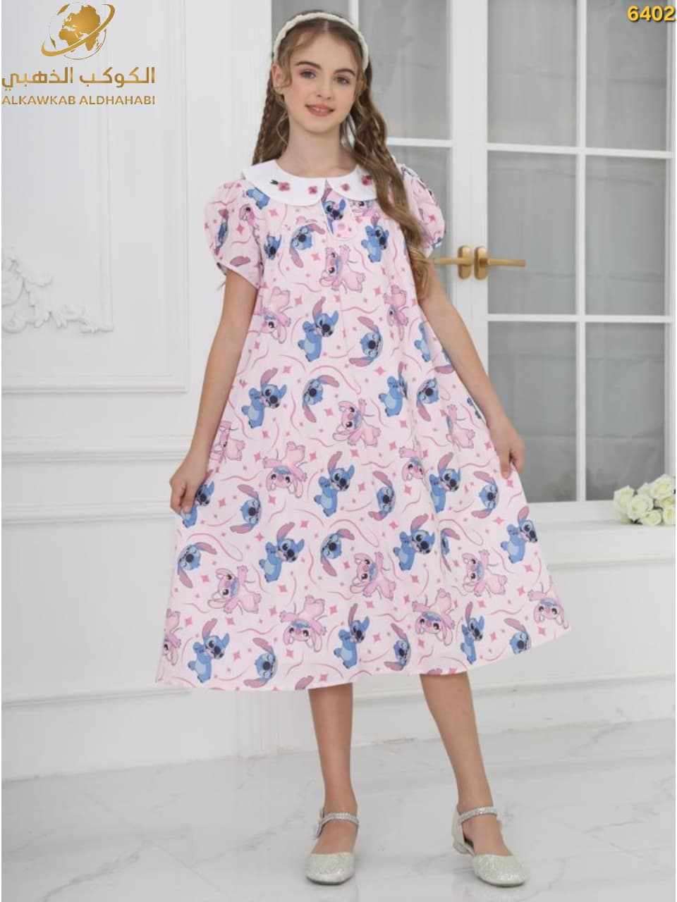 فستان بناتي صيفي بطبعة شخصيات وأكمام منتفخة – موديل 6402