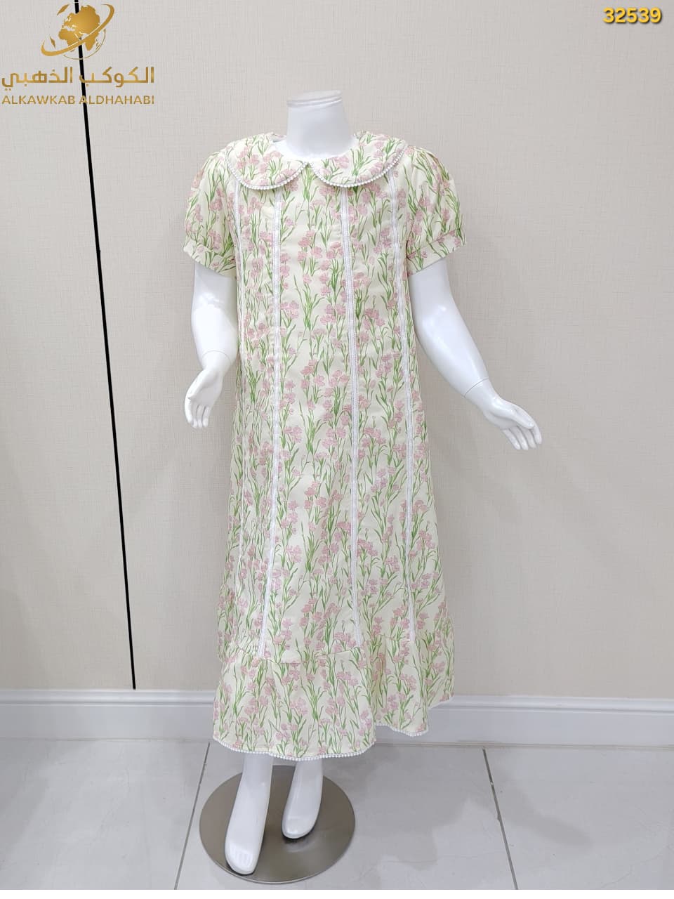 أضيفي لمظهر طفلتك لمسة من الرقة والأناقة مع هذا الفستان البناتي الجميل موديل 32539. يتميز الفستان بتصميم صيفي أنيق مزين بنقشة ورد رقيقة موزعة على كامل القماش بدرجات لونية هادئة تمنح إطلالة ناعمة ومميزة. تأتي الياقة الكبيرة الدائرية المزينة بتطريز بسيط لتضيف لمسة كلاسيكية جذابة، بينما تضفي الأكمام القصيرة المنتفخة طابعًا طفوليًا لطيفًا. القصّة الواسعة والانسيابية تجعل الفستان مريحًا للغاية وتسمح للطفلة بالحركة بحرية، مع خامة خفيفة ومناسبة للأجواء الدافئة. تصميمه الراقي يجعله خيارًا مثاليًا للخروج اليومي، المناسبات الهادئة، الزيارات العائلية، أو حتى جلسات التصوير. مميزات المنتج: نقشة ورد ناعمة بألوان هادئة ياقة دائرية مزينة بتفاصيل لطيفة أكمام قصيرة منتفخة بتصميم طفولي جميل خامة خفيفة ومريحة للصيف قصّة واسعة وانسيابية مناسب للبس اليومي والمناسبات البسيطة