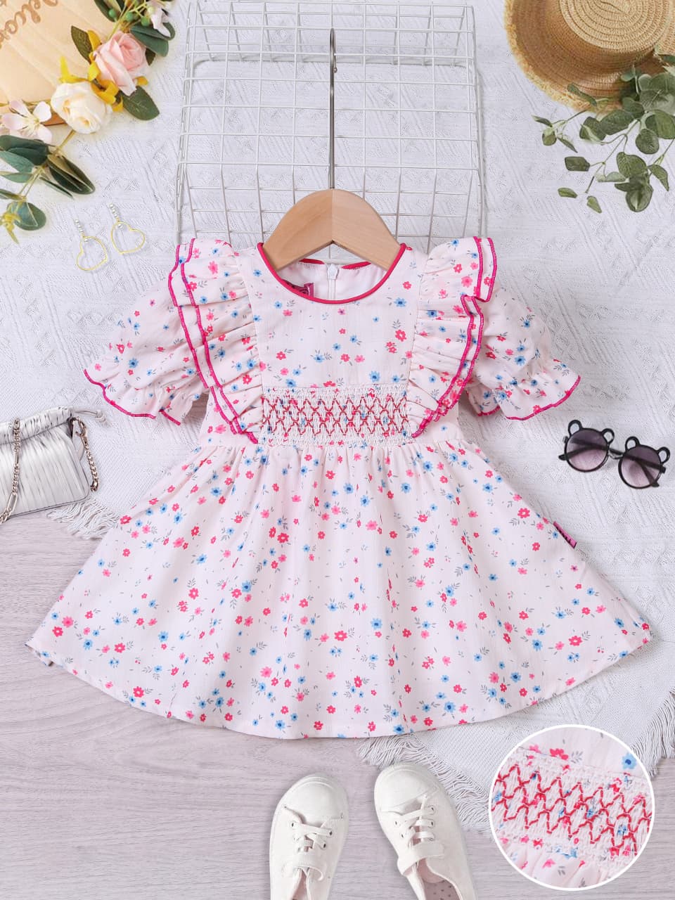 أضيفي لمظهر طفلتك لمسة من النعومة والبهجة مع هذا الفستان البناتي الجميل موديل 14. يتميز الفستان بطبعة زهور صغيرة بألوان وردية وزرقاء تمنح التصميم حيوية وأناقة صيفية رائعة. يأتي الفستان بكشكش أمامي ممتد من الأكتاف إلى منطقة الصدر، مع تطريز خيط أحمر يضيف لمسة جمالية جذابة تعزز من جمال التصميم. الأكمام القصيرة المنتفخة تضفي مظهراً طفولياً لطيفاً، بينما تأتي القصّة الواسعة لتوفر راحة كاملة وتسمح بحرية الحركة طوال اليوم. الخامة خفيفة وناعمة على البشرة، مما يجعل الفستان مناسبًا للمشاوير اليومية، المناسبات الهادئة، حفلات الميلاد، أو اللبس المنزلي الصيفي. مميزات المنتج: طبعة زهور صغيرة بألوان مبهجة كشكش أمامي وأكتاف بتصميم أنثوي جميل تطريز خيط أحمر يبرز تفاصيل الفستان أكمام قصيرة منتفخة لطابع طفولي قصّة واسعة مريحة وخفيفة مثالي للمناسبات البسيطة واللبس اليومي