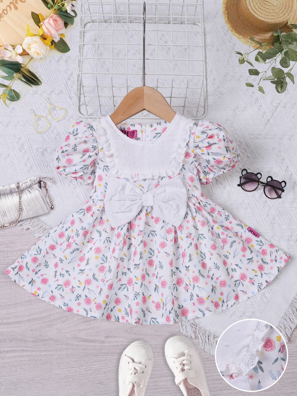 امنحي طفلتك إطلالة ناعمة ومنعشة مع هذا الفستان البناتي الرقيق موديل 6. يتميز الفستان بخامة خفيفة مزينة بطبعات زهور صغيرة بألوان متعددة تمنح مظهراً صيفياً مبهجاً. تأتي الياقة البيضاء المصنوعة من الدانتيل بتصميم واسع يضفي لمسة كلاسيكية أنيقة، فيما تزين الصدر شريطة كبيرة بنفس اللون لتمنح الفستان جمالاً إضافياً. الأكمام القصيرة المنتفخة تعطي طابعاً طفولياً محبباً، بينما تأتي القصّة الواسعة لتمنح الطفلة حرية حركة وراحة طوال اليوم. الفستان مثالي للمناسبات الخفيفة، الزيارات العائلية، حفلات الميلاد، أو حتى للاستخدام اليومي في الأجواء الصيفية. مميزات المنتج: تصميم مزهر بألوان جميلة شريطة بيضاء كبيرة لمظهر أنيق ياقة دانتيل واسعة تضيف لمسة فاخرة أكمام منتفخة بتصميم طفولي خامة مريحة وخفيفة مناسبة للصيف مثالي للمناسبات واللبس اليومي