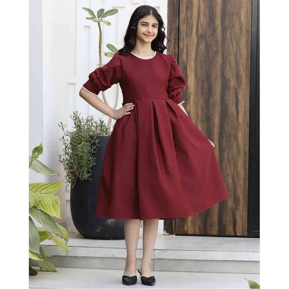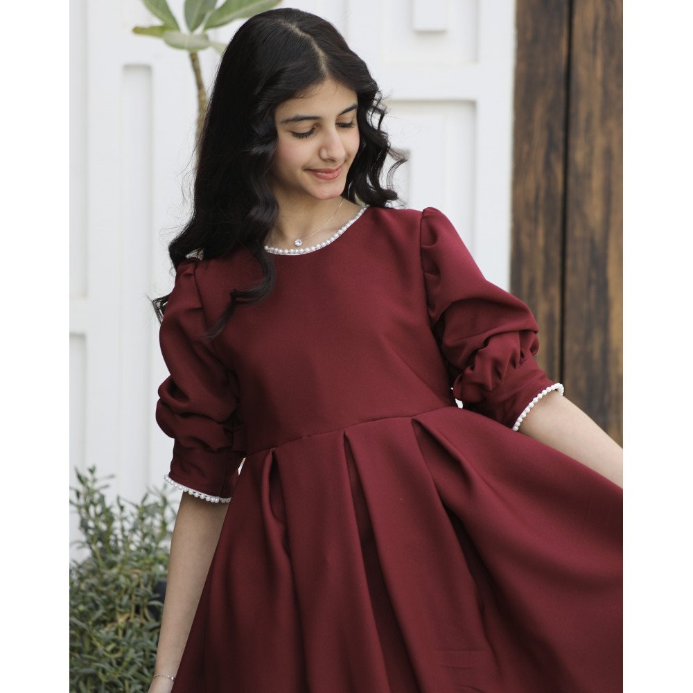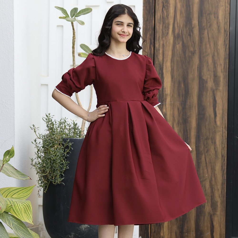فخامة العودي .. حين يتوج ببريق اللؤلؤ الأبيضهناك فساتين تصمم لتبقى خالدة في صور الذكريات الجميلة، وهذا الفستان هو قطعة فنية تنبض بالرقي والبراءة في آن واحد. نقدم لكِ الموديل 1167، تصميم يجمع بين قوة اللون الأحمر الجذاب ونقاء حبات اللؤلؤ التي تزيّن تفاصيله بعناية فائقة. صُمم هذا الفستان ليمنح أميرتك الصغيرة حضوراً ملكياً يفيض بالأناقة الكلاسيكية، حيث يحيط اللؤلؤ بياقة الفستان كعقد ثمين، ويمتد ليمنح الأكمام لمسة من الترف والجمال. إنه ليس مجرد فستان، بل هو قطعة صُممت لتجعل من طفلتك أيقونة للأناقة في كل مناسبة. لماذا هذا الفستان هو قطعة الاستثناء لمناسباتك القادمة؟لأنه يجمع بين التصميم الانسيابي الفاخر وأدق التفاصيل الجمالية:ياقة مرصعة باللؤلؤ: تتميز الرقبة بياقة دائرية راقية محددة بالكامل بـ حبات اللؤلؤ الأبيض، مما يضفي بريقاً ملائكياً يضيء وجه طفلتك ويغني عن أي إكسسوارات إضافية.نهاية أكمام لؤلؤية: تأتي الأكمام بتصميم مريح وتنتهي بصف من اللؤلؤ المتراص عند المعصم، مما يضفي لمسة من الفخامة اليدوية (Handmade feel) مع كل حركة.ثلاثة ألوان ملكية: اختاري اللون الذي يعكس شخصية أميرتك؛ الأحمر المشرق للبهجة، أو العودي للهيبة الأرستقراطية، أو الليموني العصري لإطلالة منعشة.قصة مرتبة وأنيقة: ينسدل الفستان بقصة واسعة قليلاً توفر الراحة المطلقة وتمنح الجسم شكلاً متناسقاً، مما يجعله مثاليًا للاحتفالات الطويلة.مثالي لجميع المناسبات السعيدة: سواء كنتِ تبحثين عن فستان بناتي للعيد أو لحفلات الزفاف والزيارات الرسمية، فإن موديل 1167 هو الخيار الذي سيجعلها محط الأنظار.جودة تليق بلحظات لا تُنسى نحن في "توتي كيدز" ندرك أن التميز يبدأ من جودة التنفيذ. هذا الفستان مصنوع بحرفية عالية جداً، من أقمشة فاخرة تحافظ على رونقها وألوانها الزاهية، مع تقنيات تثبيت متطورة للؤلؤ تضمن بقاءه ساطعاً ومثبتاً بإتقان مهما تعددت مرات الارتداء، ليبقى الفستان ذكرى جميلة لأجمل الأوقات السعيدة.امنحيها إطلالة تتألق بـالأحمر وسحر اللؤلؤ! اجعلي من إطلالة أميرتك في المناسبة القادمة لوحة فنية لا تُنسى بقطعة تجمع بين الفن والترف.✨ اطلبيه الآن (موديل 1167) باللون المفضل لأميرتك ودعيها تشرق بجمال لا يقاوم! ✨ شاركينا إطلالتها الساحرة!يسعدنا دائماً رؤية أميراتكم يتألقن بتصاميمنا التي تعكس ذوقكم الرفيع. ندعوكِ لمشاركة صورها وتقييمك للمنتج، فرأيك هو مصدر إلهامنا الدائم لنقدم الأفضل.خدماتنا: نقدم لكِ تجربة تسوق ممتعة مع شحن سريع وموثوق، وسياسة استبدال واسترجاع مرنة لضمان رضاكِ الكامل.