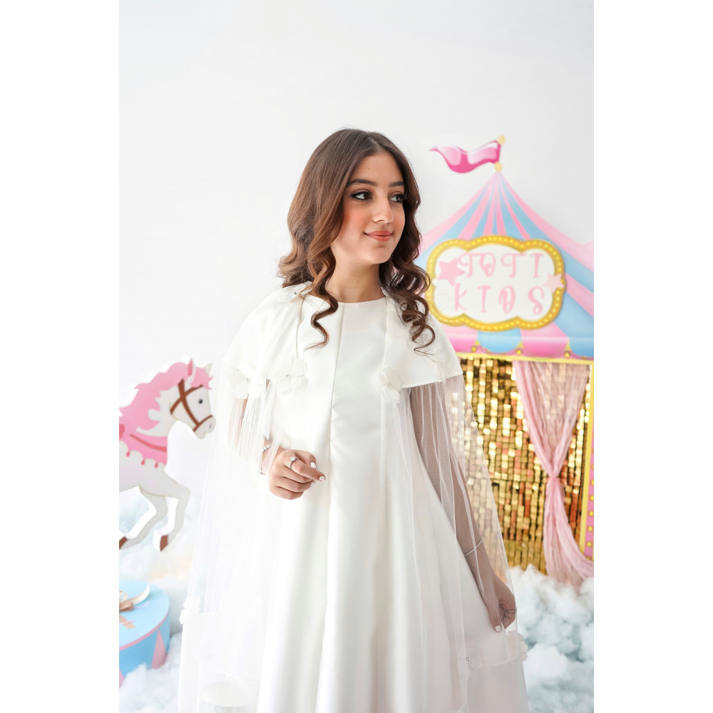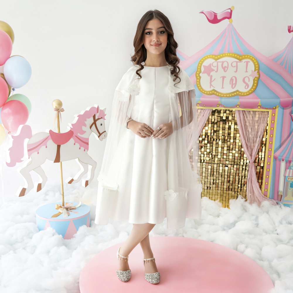 إطلالة البطلة الخارقة.. أناقة تروي قصة من التميزفي عالم الموضة، هناك تصاميم تُرتدى، وهناك تصاميم تروي قصة. هذا الفستان هو قصة من الثقة والتميز، مصمم خصيصًا للفتاة التي لا تخشى أن تكون بطلة حكايتها. نقدم لكِ قطعة فنية تجمع بين بساطة التصميم وقوة التفاصيل، بلون أخضر فاتح هادئ يزينه كاب خلفي ينسدل بأناقة ليمنحها إطلالة درامية تخطف الأنظار. إنه ليس مجرد فستان، بل هو بيان عن الأناقة العصرية، قطعة فريدة مصممة لتجعل من أميرتك أيقونة للموضة في كل مناسبة. لماذا هذا الفستان هو قطعة الموسم الاستثنائية؟لأنه يجمع بين التصميم الجريء، الجودة العالية، والتفاصيل التي تصنع الفارق.تصميم فريد مع كاب: يتميز الفستان بكاب خلفي طويل ينسدل من الأكتاف، مما يضفي لمسة درامية وعصرية على الإطلالة، مع تفاصيل زهور نافرة على الأكتاف تزيد من جماله.قماش راقٍ ولون هادئ: صُنع هذا الفستان البناتي باللون الأخضر الفاتح من قماش متماسك يحافظ على قصته الأنيقة، بينما تأتي الأكمام من التل الشفاف لتضيف لمسة من النعومة.قصة عصرية ومريحة: يأتي الفستان بقصة على شكل حرف A (A-line) تضمن راحة تامة وحرية في الحركة، مما يجعله مثاليًا للاحتفالات.مثالي لكل المناسبات الخاصة: سواء كنتِ تبحثين عن فستان بناتي للعيد بتصميم مودرن أو لإطلالة مميزة في حفلات أعياد الميلاد، هذا التصميم هو خيارك الأمثل.        جودة تلمسينها في كل خيط من 1 - 18 سنة ✨ اطلبيه الآن ودعي أميرتك تتألق بسحر الطبيعة الخلاب! ✨