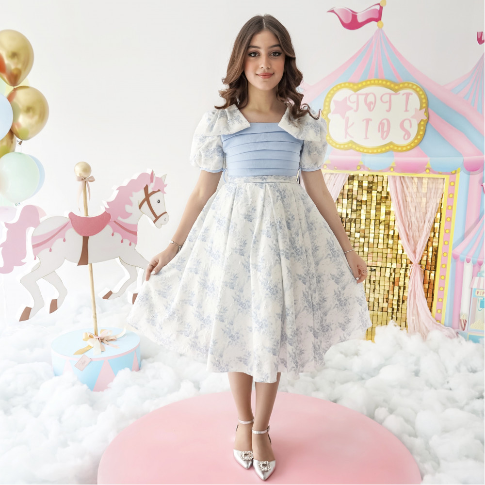 تصميم يجمع بين الرقة والفخامةفي عالم تتسارع فيه الموضة، تبقى للتصاميم الكلاسيكية جاذبيتها الخالدة. نقدم لكِ فستانًا يجمع بين رقة الذكريات وجمال الحاضر، قطعة فنية مصممة لتروي قصة من النعومة والأناقة. بلونيه الهادئين، الأزرق السماوي الصافي والأبيض النقي المزين بزهور رقيقة، يأخذ هذا الفستان أميرتك في رحلة إلى عالم من الجمال البسيط. كل تفصيلة فيه، من الصدرية المزمومة إلى الأكمام المنفوشة، تحكي عن حرفية عالية وذوق رفيع، ليمنح طفلتك إطلالة ملائكية تليق ببرائتها وتجعل من مناسباتها السعيدة لحظات لا تُنسى. لأن طفلتك تستحق الأجمل، صممنا هذا الفستان ليكون خيارها الأمثل في كل مناسبة.أناقة خالدة: يتميز الفستان بتصميمه ذي اللونين، مع صدرية (توب) باللون الأزرق السماوي وقماش مزموم (سموك)، تمنحها مظهرًا فريدًا ومريحًا، مع ياقة مربعة تضفي لمسة عصرية.قماش صيفي بامتياز: صُنعت تنورة الفستان والأكمام من قماش قطني ناعم ومزين بنقشة زهور كلاسيكية باللون الأزرق، وهو مثالي لأجواء الصيف بفضل خامته الباردة التي تسمح بالتهوية. يمكنكِ الآن الحصول على أفضل فستان بناتي صيفي بأكمام منفوشة.تفاصيل فاتنة: أكمام قصيرة منفوشة تمنح الفستان لمسة أنثوية رقيقة، بينما تأتي التنورة بقصة واسعة متوسطة الطول تتيح لطفلتك اللعب والحركة بحرية وأناقة.لكل الأوقات السعيدة: يعتبر هذا الفستان البناتي الكلاسيكي المورد خيارًا رائعًا للأعياد، حفلات الشاي، الزيارات العائلية، والجلسات التصويرية التي تتطلب إطلالة مميزة. جودة تلمسينها في كل خيط من 1 - 18 سنة