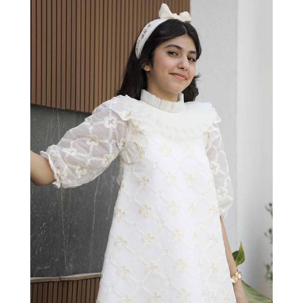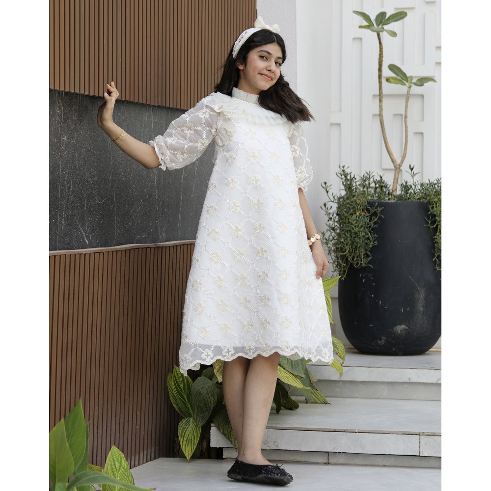 باقة من النور.. حين تعانق الورود الذهبية أحلام الأميراتهناك فساتين تُلبس، وهناك قطع فنية صُممت لتتوج طفلتك كملكة في كل حضور، وهذا الفستان هو عنوان لتلك الفخامة المشرقة. نقدم لكِ الموديل 1154، تحفة فنية مستوحاة من انعكاس أشعة الشمس على بساتين الزهور، حيث تلتقي طبعة الورود الذهبية والصفراء بقماش ينسدل بنعومة ملكية. صُمم هذا الفستان ليمنح أميرتك الصغيرة إطلالة درامية ساحرة، بفضل قصة "الكلوش" الواسعة التي تمنحها هيبة الأميرات، وكشكش الطبقات الذي يزين الصدر والرقبة ليضفي لمسة من الرقي الكلاسيكي. إنه ليس مجرد فستان، بل هو قطعة من الضوء والجمال مصممة لتجعل من طفلتك نجمة الحفل المتألقة. لماذا هذا الفستان هو الخيار الأكثر فخامة لأميرتك؟لأنه يجمع بين التصميم الانسيابي المبتكر وبريق التفاصيل اليدوية الراقية:طبعة ورود ذهبية فاخرة: يتميز الفستان بقماش منقوش بزهور ذهبية وصفراء براقة، تمنح طفلتك إشراقة استثنائية وإطلالة تفيض بالفخامة والبهجة.كشكش طبقات (Ruffles) على الصدر: يزدان الصدر والرقبة بتصميم الكشكش المتعدد الطبقات، مما يعطي أبعاداً جمالية للفستان ويبرز دقة وحرفية التصميم بأسلوب أرستقراطي.قصة "كلوش" واسعة جداً: ينسدل الفستان بقصة واسعة (Full Flare) تمنح أميرتك حجماً ملكياً وحرية تامة في الحركة، لتبدو وكأنها فراشة تتألق في كل زاوية.رقبة بتصميم فني: تصميم الرقبة المزين بالكشكش يغنيكِ عن إضافة أي إكسسوارات، حيث يبرز جمال الوجه ويضفي لمسة من النقاء والبراءة.مثالي للمناسبات الكبرى: سواء كان الاحتفال بعيد، حفل زفاف، أو مناسبة رسمية، فإن الموديل 1154 يضمن أن تكون طفلتك هي الأكثر تميزاً وإشراقاً.جودة تليق بلحظات لا تُنسى نحن في "توتي كيدز" نؤمن أن التميز يبدأ من جودة التنفيذ. هذا الفستان مصنوع بحرفية عالية من أقمشة باردة وناعمة تسمح لبشرة طفلتك بالتنفس، مع خياطة متقنة تضمن بقاء طبقات الكشكش محافظة على رونقها المنفوش والفخم مهما تعددت مرات الارتداء. امنحيها إطلالة تشرق بـبريق الذهب والجمال!اجعلي من مناسبة أميرتك القادمة ذكرى لا تُمحى بقطعة تجمع بين الفن والترف.✨ اطلبيه الآن (موديل 1154) ودعي أميرتك الصغيرة تشرق بسحر الورود الذهبية! ✨ شاركينا إطلالتها الساحرة!يسعدنا دائماً رؤية أميراتكم يتألقن بتصاميمنا التي تعكس ذوقكم الرفيع. ندعوكِ لمشاركة صورها وتقييمك للمنتج، فرأيك هو مصدر إلهامنا الدائم لنقدم الأفضل.خدماتنا: نقدم لكِ تجربة تسوق ممتعة مع شحن سريع وموثوق، وسياسة استبدال واسترجاع مرنة لضمان رضاكِ الكامل.