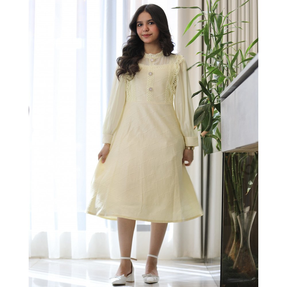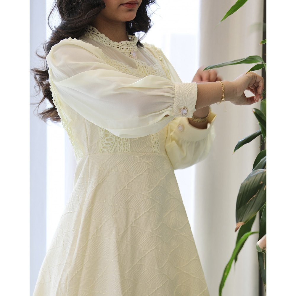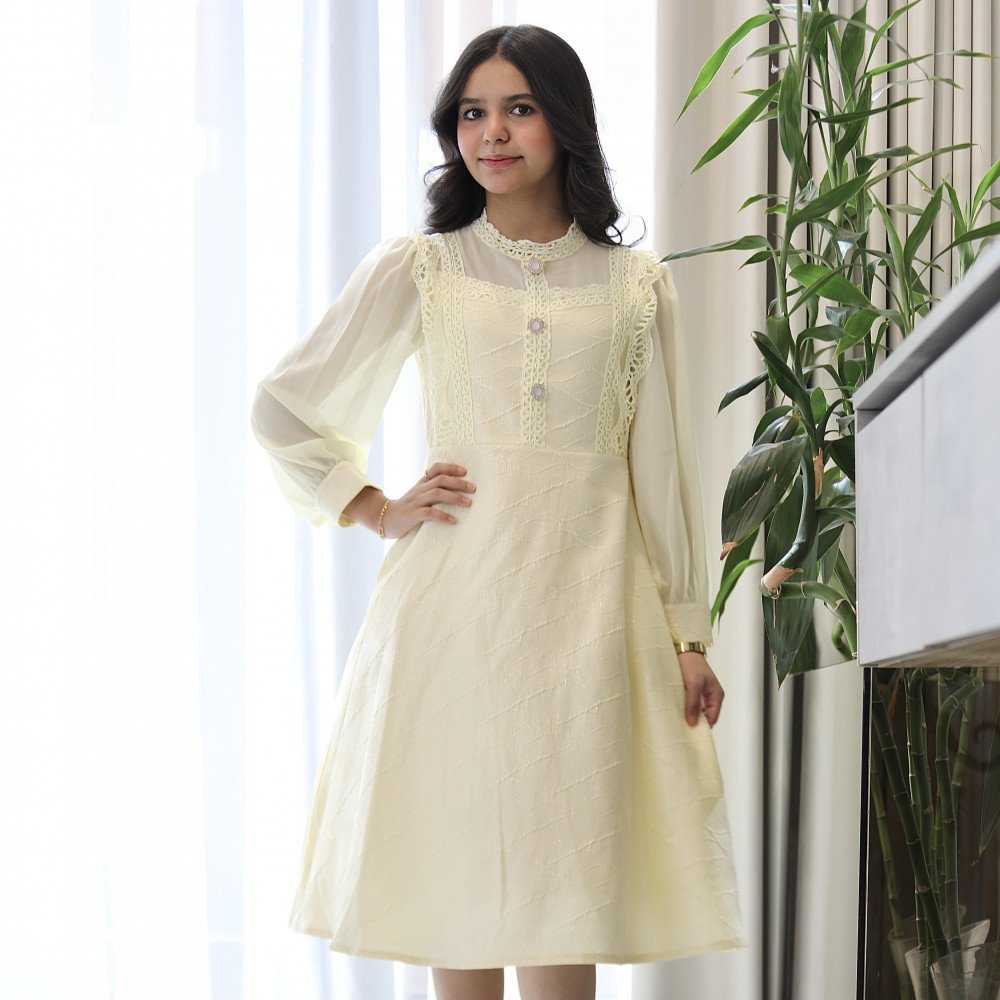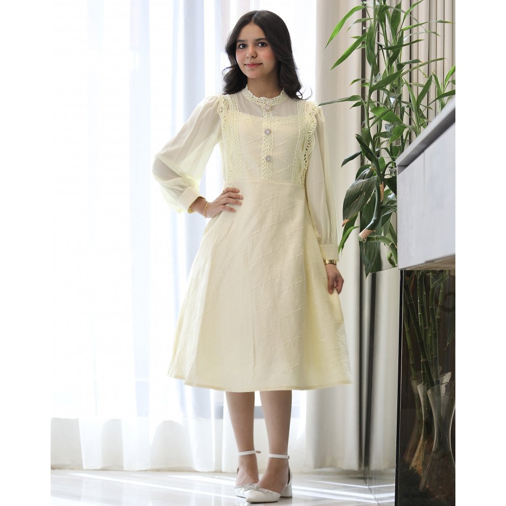 سحر الليمون.. حين تعانق النقوش برودة التصميم الشفاففي "توتي كيدز"، نؤمن أن الأناقة تبدأ من الابتكار، وهذا الفستان هو احتفال حقيقي بالضوء والحيوية. نقدم لكِ الموديل kj2100، قطعة فنية مستوحاة من انتعاش بساتين الليمون تحت خيوط الشمس. يبرز جمال هذا التصميم في التناغم المذهل بين القماش المنقوش ببراعة، والكلفة البيضاء التي تزيّن الصدر بأسلوب أرستقراطي، وتكتمل اللوحة بالأكمام والرقبة الشفافة التي تضفي لمسة ملائكية حالمة على إطلالة أميرتك. إنه ليس مجرد فستان، بل هو قطعة من النور صُممت لتجعل من طفلتك أيقونة للأناقة في كل محفل. لماذا هذا الفستان هو قطعة الاستثناء في خزانة أميرتك؟لأنه يجمع بين التصميم الدرامي المبتكر وأدق التفاصيل الجمالية:نسيج بنقوش راقية: يتميز الفستان بقماش فاخر منسوج بنقوش دقيقة تمنح القطعة عمقاً جمالياً وفخامة، مع لون ليموني مشرق يفيض بالطاقة والبهجة.كلفة بيضاء ملكية: يزدان الصدر بقطعة عريضة من الكلفة (الدانتيل) البيضاء المتقنة، التي تضفي لمسة أرستقراطية فاخرة وتغنيكِ تماماً عن إضافة أي إكسسوارات معقدة.رقبة وأكمام شفافة حالمة: تأتي الرقبة والأكمام بتصميم من القماش الشفاف الراقي، مما يمنح الفستان طابعاً أنثوياً رقيقاً ويبرز براءة وجمال أميرتك بأسلوب "مودرن" جذاب.أزرار زينة فاخرة: يتوسط الصدر صف من الأزرار الأنيقة التي تعزز الطابع الملكي للفستان وتضيف تفصيلاً جمالياً يعكس دقة التصميم واحترافية الحياكة.قصة انسيابية مريحة: يجمع التصميم بين المظهر الفخم والراحة المطلقة، مما يتيح للطفلة الحركة واللعب بكل خفة مع الحفاظ على مظهرها المرتب والراقي طوال وقت الحفل.جودة تليق بلحظات لا تُنسى نحن نضع الجودة في مقدمة أولوياتنا. هذا الفستان مصنوع بحرفية عالية جداً، من أقمشة مختارة بعناية لتكون باردة وناعمة على البشرة، مع خياطة متقنة تضمن بقاء الكلفة والأجزاء الشفافة محافظة على رونقها الفاخر وشكلها المنفوش مهما تعددت مرات الارتداء.امنحيها إطلالة تشرق بـسحر الليمون والشفافية! اجعلي من إطلالة أميرتك في المناسبة القادمة ذكرى لا تُمحى بقطعة تجمع بين الفن والترف.✨ اطلبيه الآن (موديل kj2100) ودعي أميرتك الصغيرة تشرق بجمال لا يقاوم! ✨ شاركينا إطلالتها الساحرة!يسعدنا دائماً رؤية أميراتكم يتألقن بتصاميمنا التي تعكس ذوقكم الرفيع. ندعوكِ لمشاركة صورها وتقييمك للمنتج، فرأيك هو مصدر إلهامنا الدائم لنقدم الأفضل دائماً.خدماتنا: نقدم لكِ تجربة تسوق ممتعة مع شحن سريع وموثوق لجميع المناطق، وسياسة استبدال واسترجاع مرنة لضمان رضاكِ الكامل.