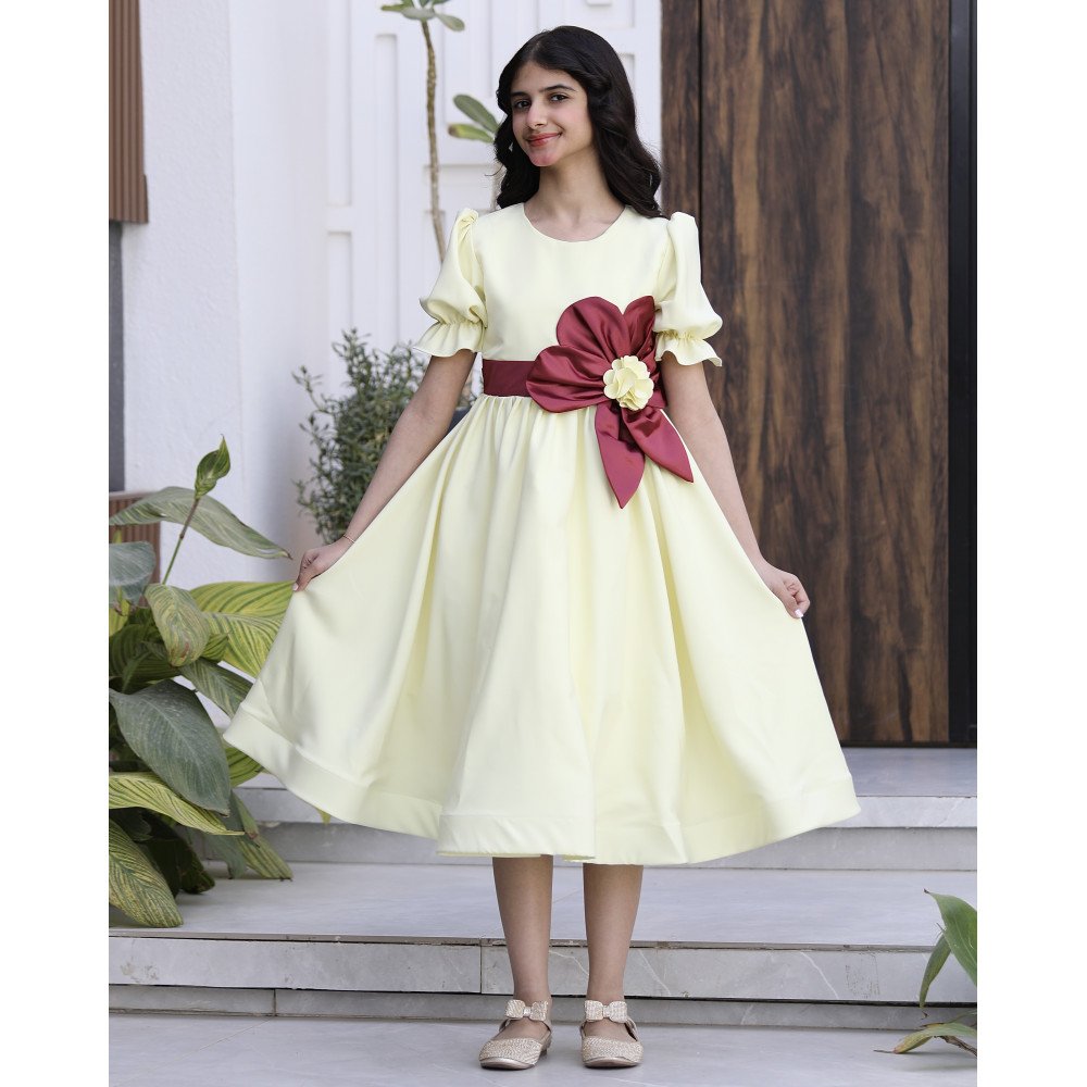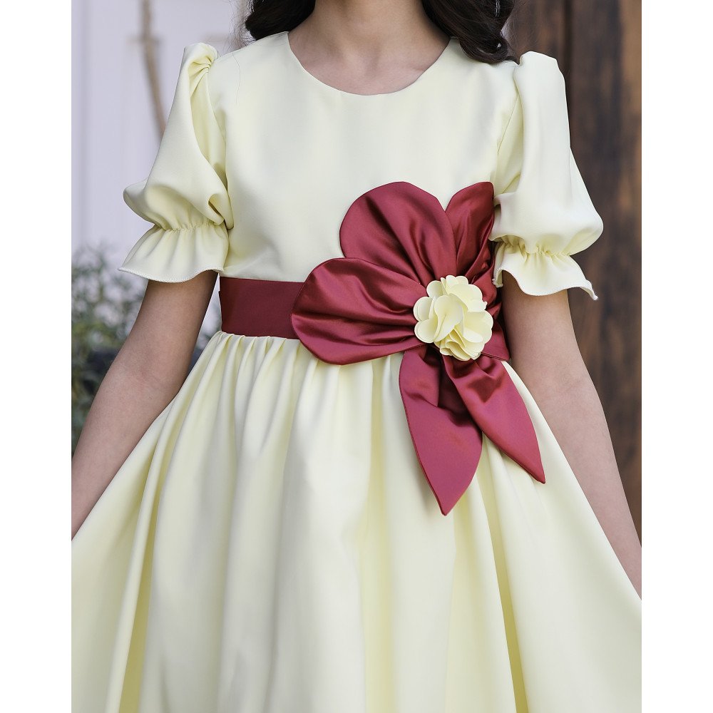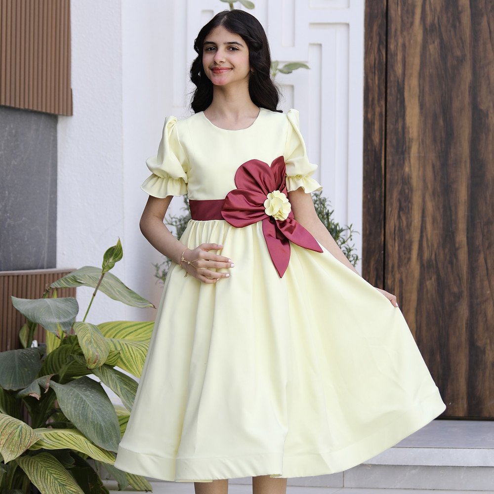 نسمات الليمون.. حين تشرق الأناقة ببهجة الألوانفي عالم الموضة، هناك ألوان تمنحك شعوراً بالانتعاش بمجرد النظر إليها، واللون الليموني هو ملك الإشراقة الصيفية. نقدم لكِ الموديل 916، قطعة فنية تجمع بين حيوية اللون العصري وفخامة التفاصيل اليدوية المبتكرة. صُمم هذا الفستان ليمنح أميرتك الصغيرة حضوراً طاغياً يفيض بالمرح والرقي، حيث تبرز الوردة العودية الكبيرة على الخصر بقلبها الليموني الصغير كعلامة فارقة في التميز، وتكتمل اللوحة بالأكمام الكشكشة التي تضفي لمسة من الدلال. إنه ليس مجرد فستان، بل هو قطعة من الضوء صُممت لتجعل طفلتك تتألق كفراشة في يومٍ صيفي مشرق. لماذا هذا الفستان هو قطعة التميز لمناسباتك القادمة؟لأنه يجمع بين التصميم العصري الجريء وأدق التفاصيل الجمالية:اللون الليموني المشرق: يتميز الفستان بلونه الليموني العصري الذي يعكس روح التفاؤل والبهجة، كما يتوفر منه اللون العودي الفاخر والأحمر الكلاسيكي ليناسب كل الأذواق.وردة الخصر المزدوجة: يزدان الخصر بوردة "هاند ميد" كبيرة باللون العودي الملكي، وبداخلها وردة مصغرة باللون الليموني، مما يخلق توازناً بصرياً مذهلاً يبرز دقة وحداثة التصميم.أكمام كشكشة ساحرة: تتميز الأكمام بتصميم الكشكشة (Ruffles) الناعمة، التي تمنح الفستان طابعاً أنثوياً رقيقاً وتضيف حجماً انسيابياً جميلاً عند الكتفين.ياقة دائرية مرتبة: الرقبة مصممة بقصة دائرية ناعمة ومريحة تبرز جمال ملامح طفلتك وتنسجم تماماً مع تفاصيل الفستان المبهجة.قصة واسعة ومريحة: يجمع التصميم بين المظهر الأنيق والراحة المطلقة، مما يتيح لأميرتك الحركة واللعب بكل ثقة وأناقة طوال وقت الحفل.جودة تليق بلحظات لا تُنسى نحن في "توتي كيدز" نؤمن أن التميز يبدأ من جودة التنفيذ. هذا الفستان مصنوع بحرفية عالية من أقمشة باردة وناعمة تسمح لبشرة طفلتك بالتنفس في أجواء الصيف، مع خياطة متقنة تضمن بقاء الوردة وتفاصيل الكشكشة محافظة على رونقها الفاخر مهما تعددت مرات الارتداء. امنحيها إطلالة تتألق بـبهجة الليمون وسحر العودي!اجعلي من مناسبة أميرتك القادمة مهرجاناً للأناقة والجمال بقطعة تجمع بين الابتكار والبهجة.✨ اطلبيه الآن (موديل 916) باللون المفضل لأميرتك ودعيها تتألق ببريق لا يقاوم! ✨ شاركينا إطلالتها الساحرة!يسعدنا دائماً رؤية أميراتكم يتألقن بتصاميمنا التي تعكس ذوقكم الرفيع. ندعوكِ لمشاركة صورها وتقييمك للمنتج، فرأيك هو مصدر إلهامنا الدائم.خدماتنا: نقدم لكِ تجربة تسوق ممتعة مع شحن سريع وموثوق، وسياسة استبدال واسترجاع مرنة لضمان رضاكِ الكامل.