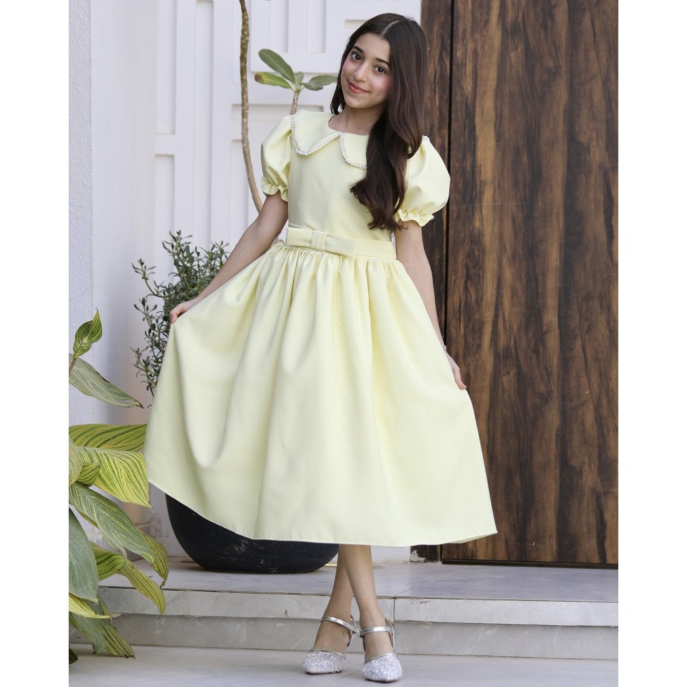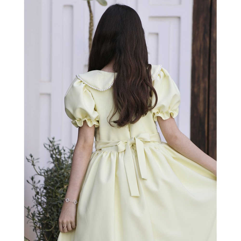 سحر الليموني وبريق اللؤلؤ.. حين تعانق البساطة فخامة التفاصيلفي "توتي كيدز"، نعيد تعريف الأناقة الكلاسيكية بلمسات عصرية تأسر القلوب، وهذا الفستان هو تجسيد حي لذلك المفهوم. نقدم لكِ الموديل 1177، قطعة فنية تجمع بين قوة اللون الليموني الصريح ونقاء اللؤلؤ الأبيض الذي يطوق الياقة كعقد ثمين. صُمم هذا الفستان ليمنح أميرتك الصغيرة حضوراً يفيض بالرقة والثقة، حيث تتوسط الخصر فيونكة ناعمة تضفي لمسة من الدلال، بينما تكتمل اللوحة بالأكمام المنفوشة التي تمنح الفستان طابعاً ملكياً استثنائياً. إنه ليس مجرد فستان، بل هو قطعة من البهجة صُممت لتكون جزءاً من أجمل ذكريات طفلتك في العيد وكل مناسبة سعيدة. لماذا هذا الفستان هو قطعة التميز في خزانة أميرتك؟لأنه يجمع بين التصميم الانسيابي الراقي وأدق التفاصيل الجمالية:ياقة ملكية ببريق اللؤلؤ: تتميز الياقة الدائرية (بيتر بان) بتحديد دقيق وكامل بـ حبات اللؤلؤ الأبيض اللامع، مما يضفي إشراقة فورية على وجه أميرتك ويغنيكِ عن إضافة إكسسوارات حول العنق.فيونكة الخصر الرقيقة: يزدان منتصف الخصر بفيونكة صغيرة منسقة بإتقان، تعمل كقطعة جمالية تربط بين بساطة الصدر واتساع التنورة بأسلوب أنثوي راقٍ.حزام خلفي لأناقة متكاملة: يكتمل السحر من الخلف بـ حزام أنيق يتيح لكِ ضبط المقاس بدقة، ويمنح الفستان فيونكة خلفية ساحرة تكتمل بها الإطلالة من كل الزوايا.أكمام منفوشة عصرية: تأتي الأكمام بتصميم "الباف" (Puff Sleeves) المريح الذي يضفي حجماً ملكياً عند الكتفين ويزيد من جاذبية التصميم العام.ثلاثة ألوان ملكية: سواء اخترتِ الأحمر المشرق للبهجة، أو العودي الفاخر للهيبة الملكية، أو الليموني العصري للتميز، فإن كل لون يحكي قصة جمال مختلفة.قصة انسيابية مريحة: يجمع التصميم بين المظهر المرتب والراحة المطلقة، بفضل القماش الذي يسمح بحرية الحركة واللعب بكل ثقة وأناقة.جودة تليق بلحظات لا تُنسى نحن في "توتي كيدز" نؤمن أن التميز يبدأ من جودة التنفيذ. هذا الفستان مصنوع بحرفية عالية جداً، من أقمشة فاخرة تحافظ على رونقها وألوانها الزاهية، مع خياطة متقنة تضمن ثبات اللؤلؤ وتفاصيل الخصر محافظة على شكلها الفخم مهما تعددت مرات الارتداء.امنحيها إطلالة تشرق بـبريق اللؤلؤ وسحر الأحمر! اجعلي من إطلالة أميرتك في المناسبة القادمة لوحة فنية لا تُمحى بقطعة تجمع بين الفن والترف.✨ اطلبيه الآن (موديل 1177) باللون المفضل لأميرتك ودعيها تتألق بجمال لا يقاوم! ✨ شاركينا إطلالتها الساحرة!يسعدنا دائماً رؤية أميراتكم يتألقن بتصاميمنا التي تعكس ذوقكم الرفيع. ندعوكِ لمشاركة صورها وتقييمك للمنتج، فرأيك هو مصدر إلهامنا الدائم لنقدم الأفضل.خدماتنا: نقدم لكِ تجربة تسوق ممتعة مع شحن سريع وموثوق، وسياسة استبدال واسترجاع مرنة لضمان رضاكِ الكامل.