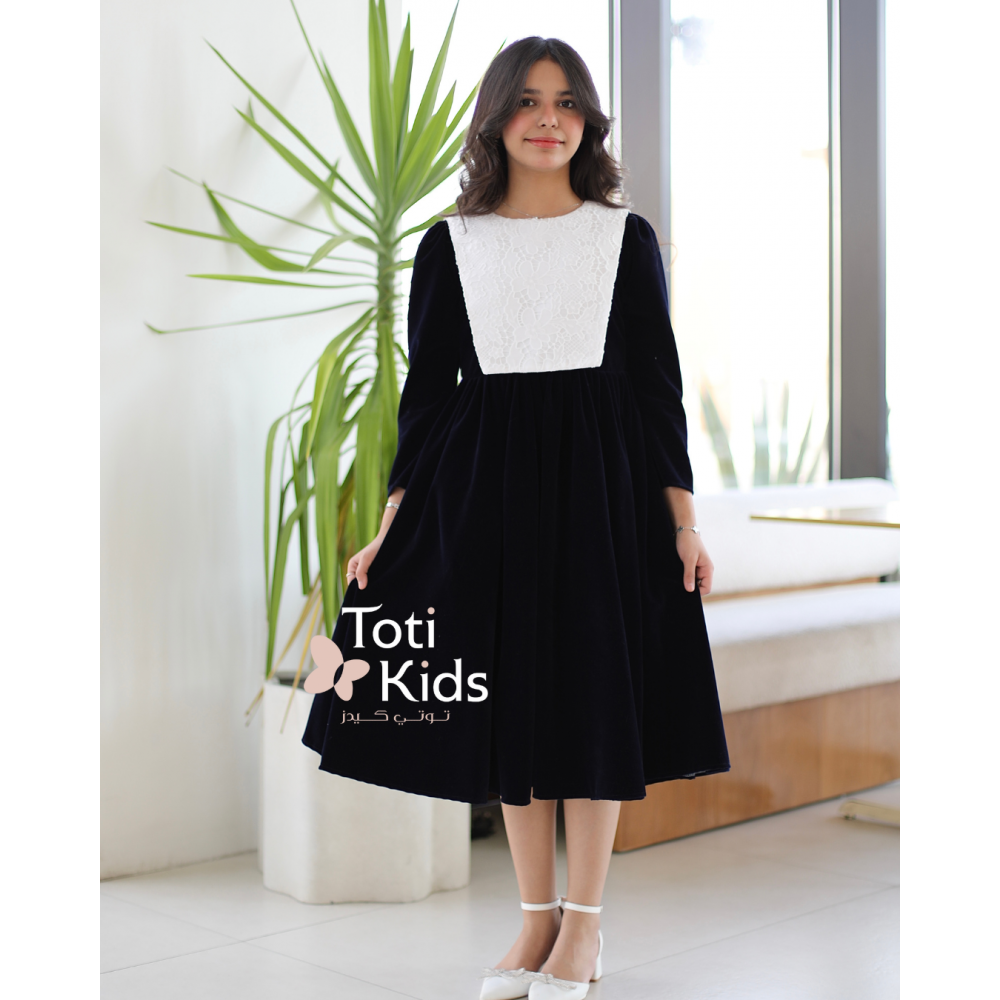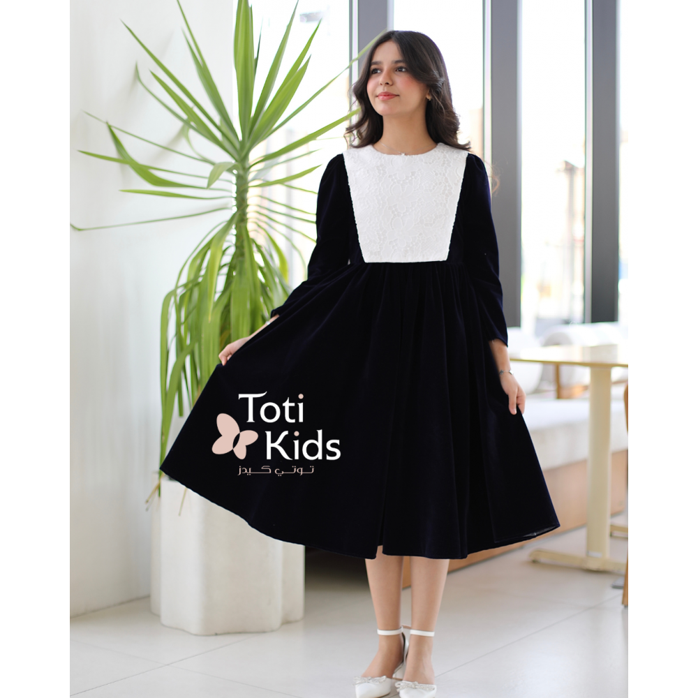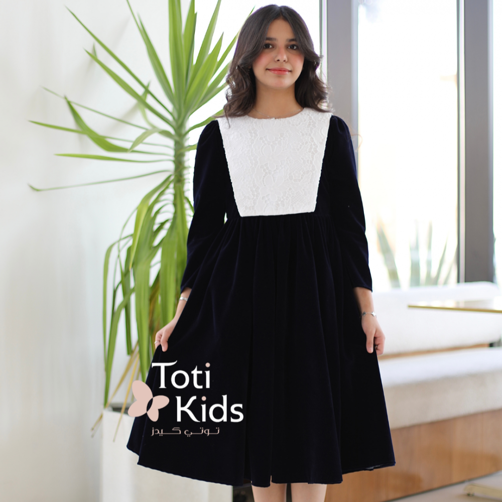 فخامة الكحلي الملكي.. ولوحة فنية من الزهورفي ليالي الشتاء الأنيقة، يتربع اللون الكحلي على عرش الفخامة. نقدم لكِ هذا الفستان الاستثنائي الذي يجمع بين عمق اللون المخملي وسحر التفاصيل الفنية. ما يميز هذا التصميم هو تلك القطعة الفنية التي تزين مقدمة الصدر؛ قماش مطرز بعناية فائقة على شكل باقة من الورود والأزهار، لتكسر حدة اللون الداكن وتمنح طفلتك إطلالة مشرقة وراقية تخطف الأنظار في كل مناسبة. لماذا هذا الفستان هو خيارك للفخامة الشتوية؟لأنه يجمع بين الدفء، الرقي، والتفاصيل المشغولة بحرفية:قطعة صدر مطرزة (Floral Embroidery): الميزة الأبرز هي القطعة الأمامية المطرزة بنقوش زهور وأوراق شجر دقيقة، تضفي لمسة من الحيوية والجمال الكلاسيكي على الفستان.مخمل كحلي فاخر: صُنع الفستان من أجود خامات المخمل الناعم بلون كحلي (Navy Blue) عميق وغني، يمنح شعوراً بالدفء والفخامة الفورية.تصميم كلاسيكي راقٍ: يأتي الفستان بقصة مريحة وأنيقة، مع ياقة ناعمة وأكمام طويلة، ليكون الخيار الأمثل للأجواء الباردة والمناسبات الرسمية.تناغم الألوان: التباين المدروس بين لون المخمل الكحلي وألوان التطريز الزاهية يخلق توازناً بصرياً ساحراً يجعل الفستان قطعة فنية بحد ذاته.مثالي للمناسبات: هذا الفستان الشتوي هو الرفيق الأمثل لحفلات العشاء، الزيارات العائلية الهامة، والأعياد.جودة وتفاصيل لا تُنسىعند البحث عن فستان مخمل بناتي مطرز، فإن الجودة هي الأساس. هذا الفستان مبطن بالكامل لضمان راحة طفلتك، ومصمم بخياطة متقنة تحافظ على رونق التطريز والمخمل طويلاً. ✨ اطلبيه الآن لتمتلك قطعة فنية من الدفء والجمال! ✨