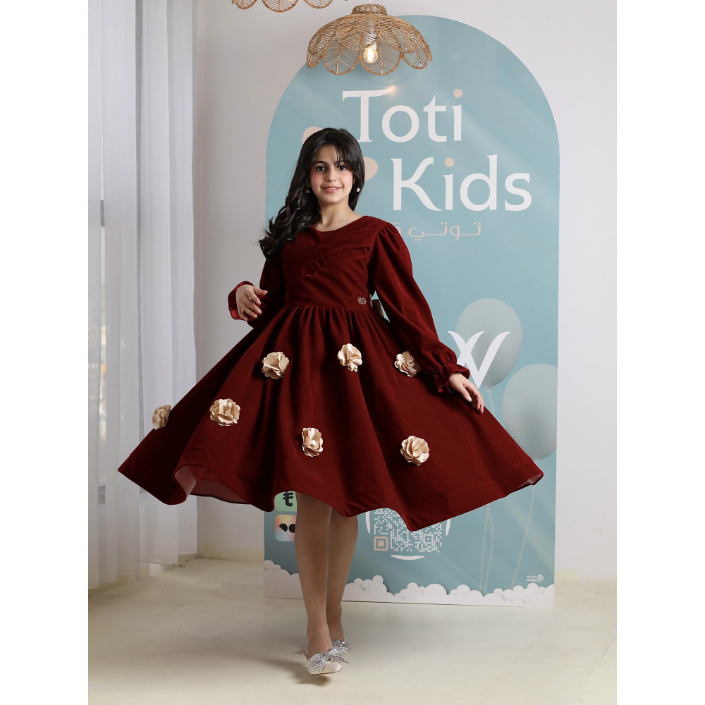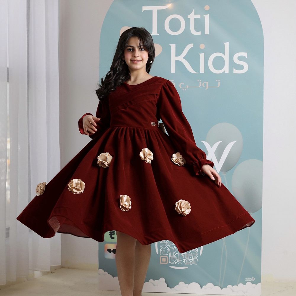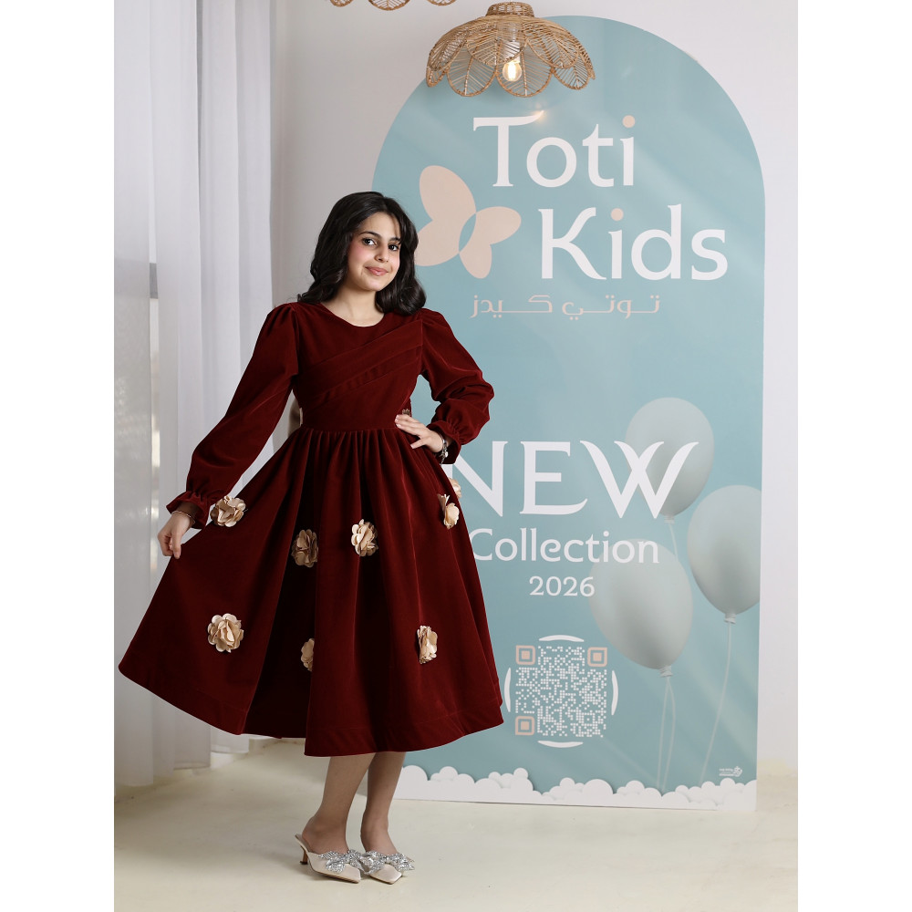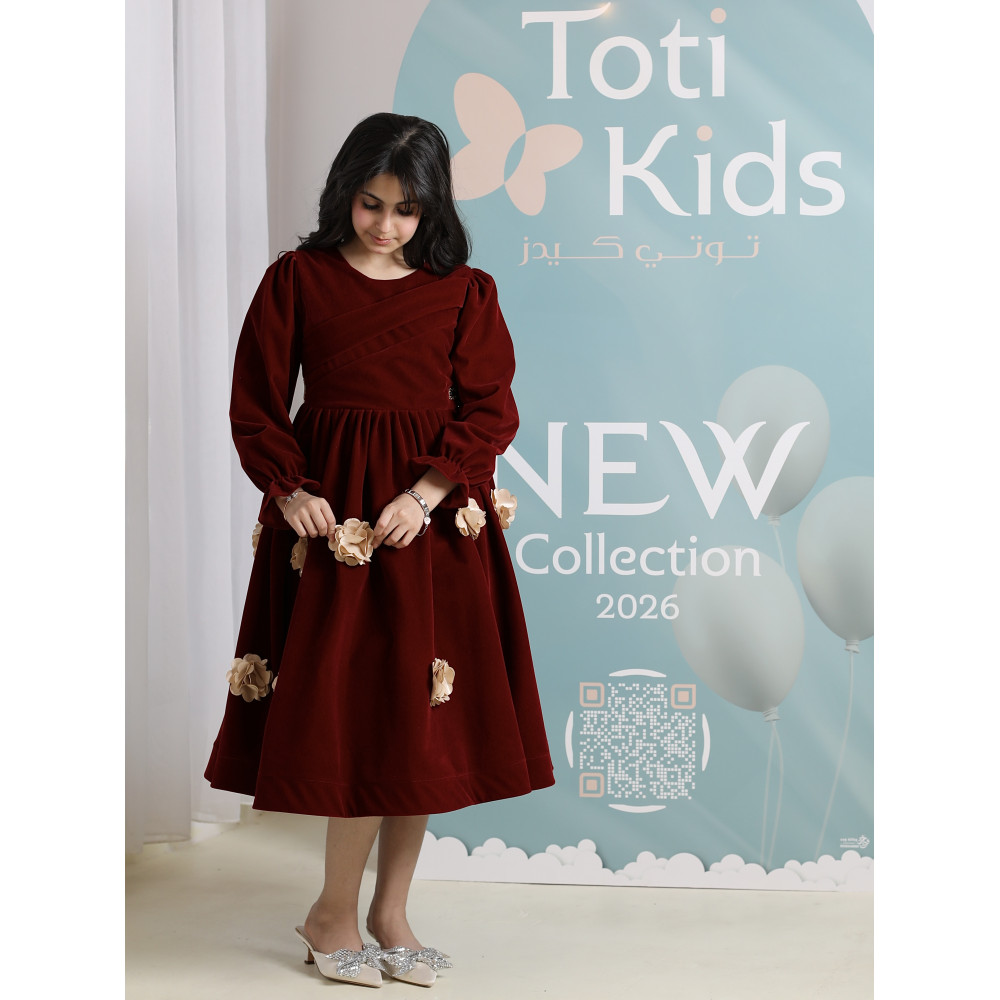 دفء الشتاء وفخامة الأميرات.. في فستان واحدعندما يجتمع دفء المخمل مع سحر التصميم، تولد قطعة استثنائية تليق بأميرة. نقدم لكِ فستان الشتاء الأنيق، تحفة فنية باللون العنابي الغني الذي يجسد فخامة الموسم. صُمم هذا الفستان ليمنح طفلتك إطلالة ملكية دافئة، بقصته التي تتراقص مع كل حركة، وزهوره البارزة التي تضيف لمسة من الرومانسية. إنه ليس مجرد فستان، بل هو قطعة أيقونية مصممة لتكون نجمة كل مناسبة شتوية، من الأعياد إلى الاحتفالات الكبرى. لماذا هذا الفستان هو قطعة الشتاء المفضلة؟لأنه يجمع بين التصميم الراقي، جودة الخامات، والدفء الذي تحتاجه أميرتك.فخامة المخمل الشتوي: صُنع هذا الفستان البناتي المخمل من أجود أنواع قماش المخمل الثقيل، ليوفر دفئًا لا مثيل له ومظهرًا ملكيًا بلونه العنابي الجذاب.تصميم يخطف الأنظار: يتميز الفستان بتنورة كاملة (Full-skirt) تمنحها إطلالة منفوشة وساحرة، ومزينة بزهور ذهبية بارزة (3D) موزعة بأناقة لتضيف لمسة من التميز.أناقة وراحة: يأتي الفستان بأكمام طويلة وياقة ناعمة، ليجمع بين الاحتشام والراحة التامة طوال فترة الاحتفال.مثالي للمناسبات: هذا الفستان الشتوي الفاخر هو الخيار الأمثل لحفلات الأعياد، الزيارات العائلية، والمناسبات الرسمية في ليالي الشتاء الباردة.جودة تليق بليالي الشتاء الفاخرةعند البحث عن ملابس شتوية للمناسبات، فإن الجودة هي ما يضمن الدفء والأناقة. هذا الفستان مصنوع بحرفية عالية ليدوم طويلاً ويحافظ على رونقه. ✨ اطلبيه الآن لتتألق أميرتك بدفء وفخامة في كل مناسبة! ✨