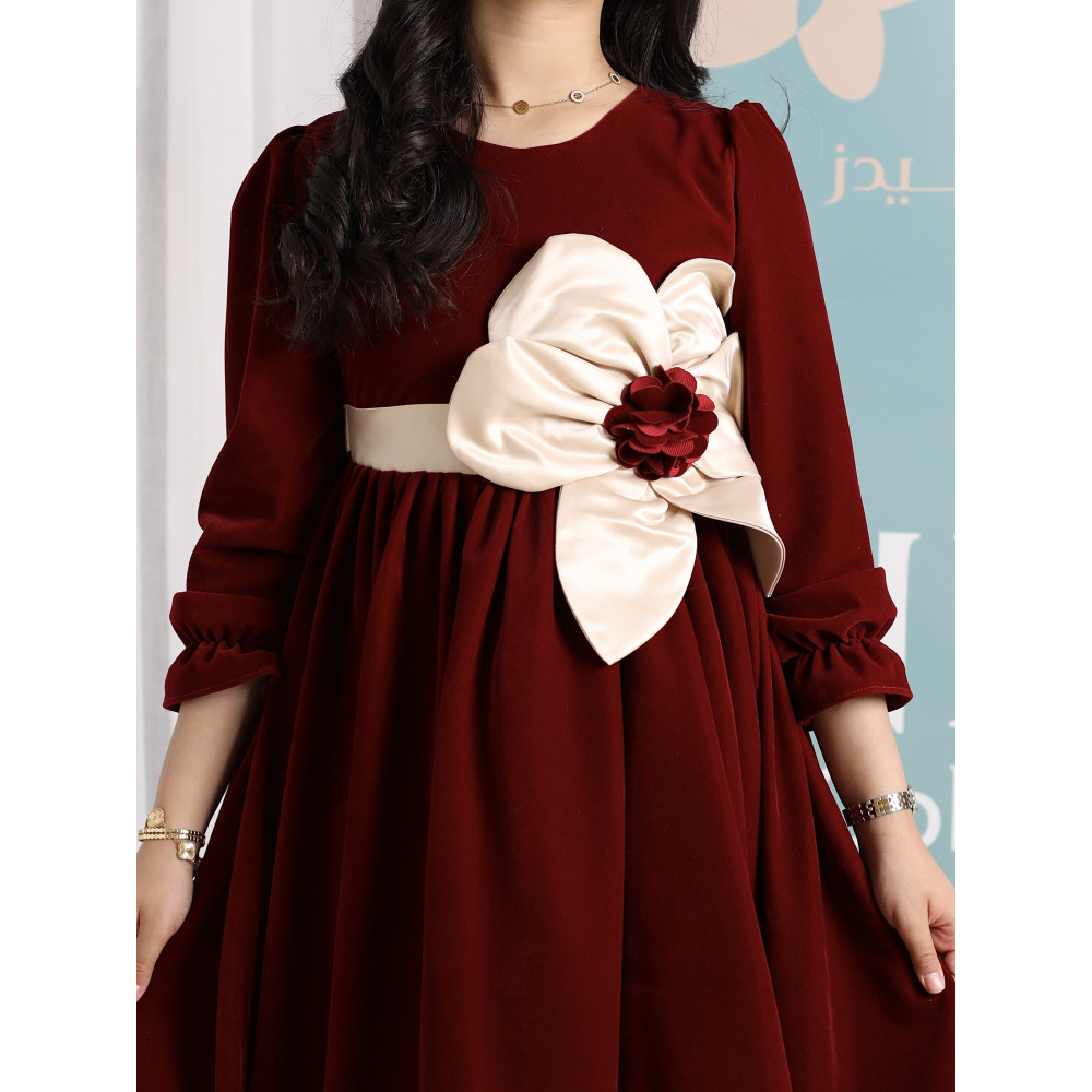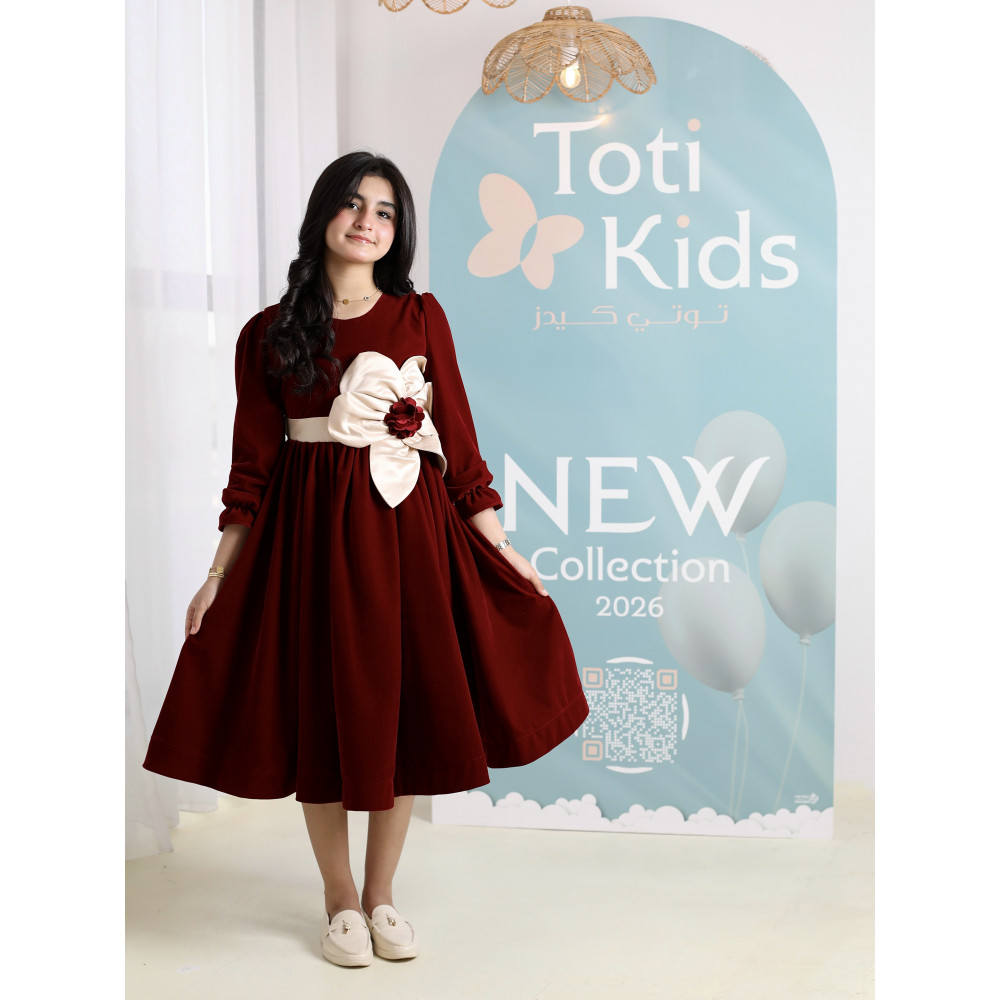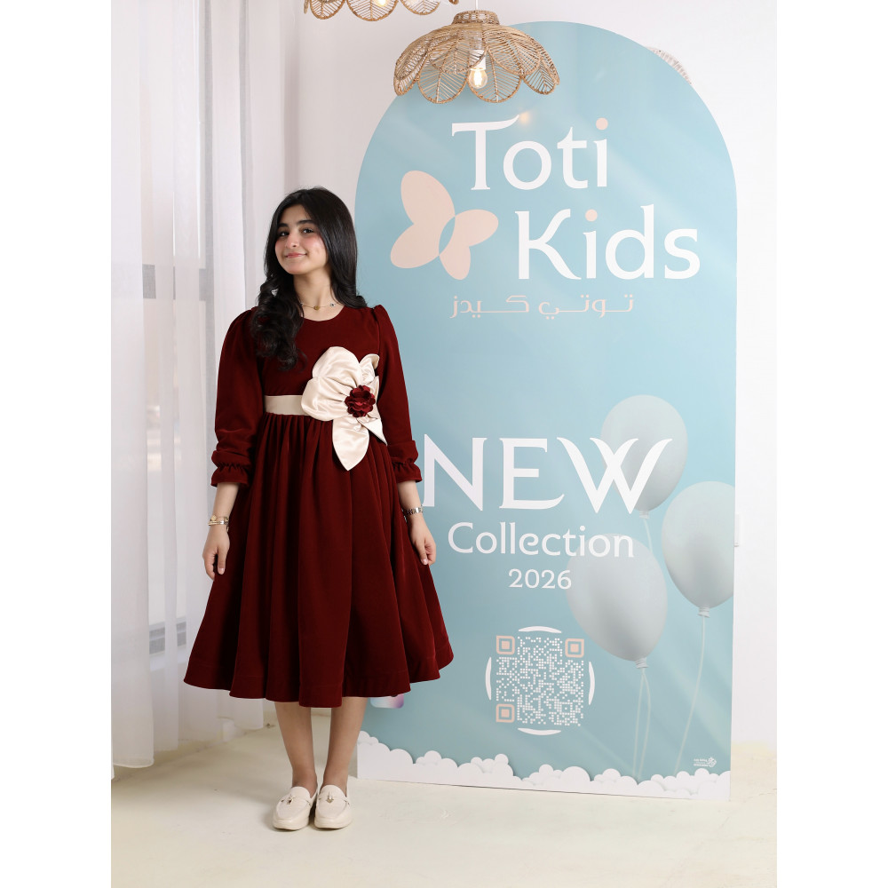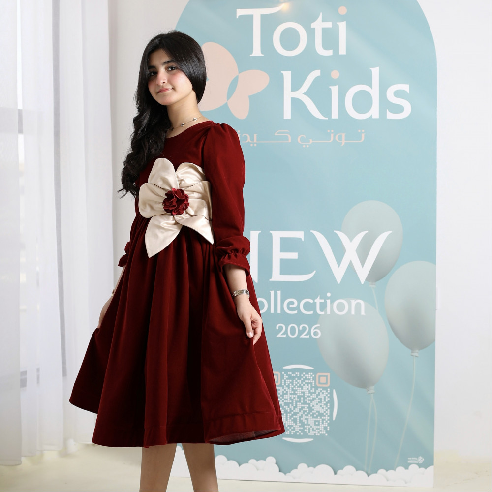 إطلالة بفيونكة تخطف الأنظار.. فخامة بلمسة جريئةفي ليالي الشتاء الباردة، الأناقة هي عنوان الدفء. نقدم لكِ فستانًا يجمع بين الفخامة الملكية للمخمل العنابي ولمسة من الجرأة الراقية. هذا التصميم ليس كأي فستان مخملي آخر؛ إنه قطعة فنية تتوسطها فيونكة ضخمة من الساتان بلون السكري، لتكون النقطة المحورية لإطلالة تخطف الأنظار. صُمم هذا الفستان للفتاة الواثقة التي تحب أن تكون نجمة الحفل، ليمنحها دفئًا وراحة بإطلالة لا تُنسى. لماذا هذا الفستان هو قطعة الشتاء المميزة؟لأنه يجمع بين التصميم الجريء، فخامة الأقمشة، والتفاصيل الراقية.فخامة المخمل الشتوي: صُنع هذا الفستان البناتي المخمل من أجود أنواع قماش المخمل الثقيل باللون العنابي، ليوفر دفئًا لا مثيل له ومظهرًا ملكيًا.فيونكة ساتان تخطف الأنظار: يتميز الفستان بفيونكة ضخمة على الصدر من قماش الساتان باللون السكري، تتوسطها وردة من المخمل العنابي، مما يخلق تباينًا فخمًا وجريئًا.تصميم أنيق ودافئ: يأتي الفستان بأكمام طويلة وقصة A-line كلاسيكية تضمن الراحة التامة وحرية الحركة، وتسمح للفيونكة بأن تكون بطلة التصميم.مثالي للأعياد والمناسبات: هذا الفستان الشتوي الفاخر هو الخيار الأمثل لحفلات الأعياد، الزيارات الرسمية، والمناسبات التي تتطلب إطلالة دافئة ومميزة. جودة تليق بأناقتها الاستثنائيةعند البحث عن ملابس شتوية للمناسبات، فإن هذا التصميم يقدم مزيجًا مثاليًا من الدفء والأناقة الجريئة. مصنوع بحرفية عالية ليدوم طويلاً ويحافظ على رونقه. ✨ اطلبيه الآن لتتألق أميرتك بإطلالة لا تُنسى! ✨
