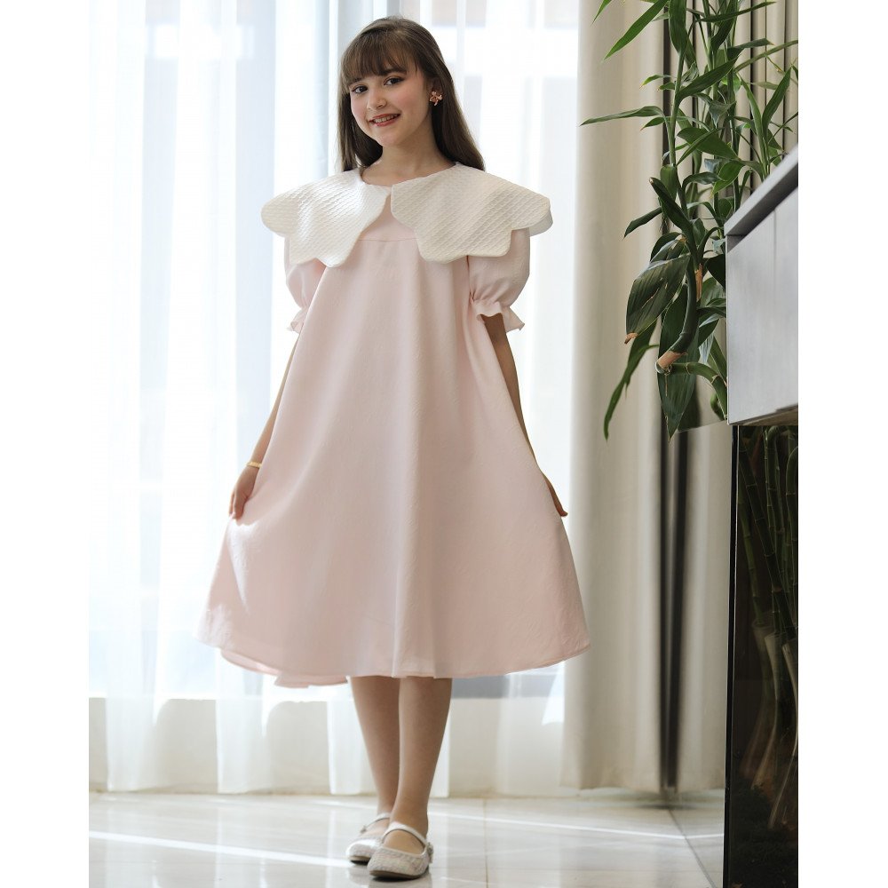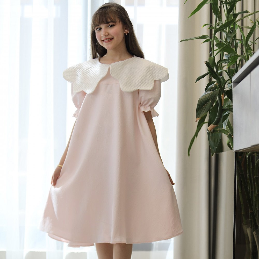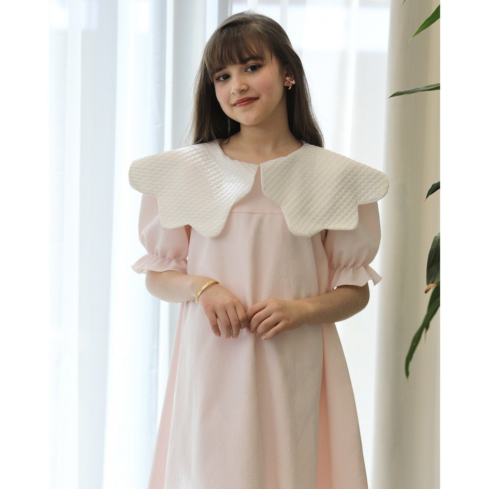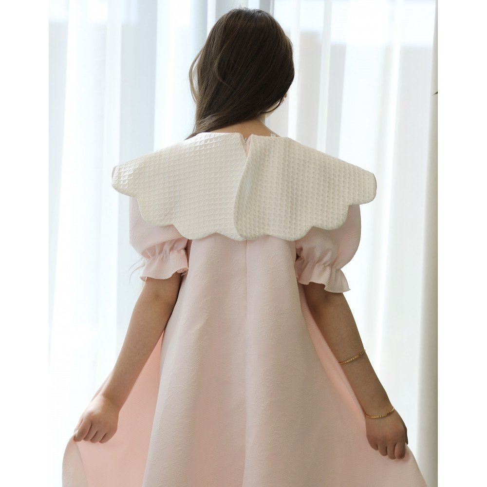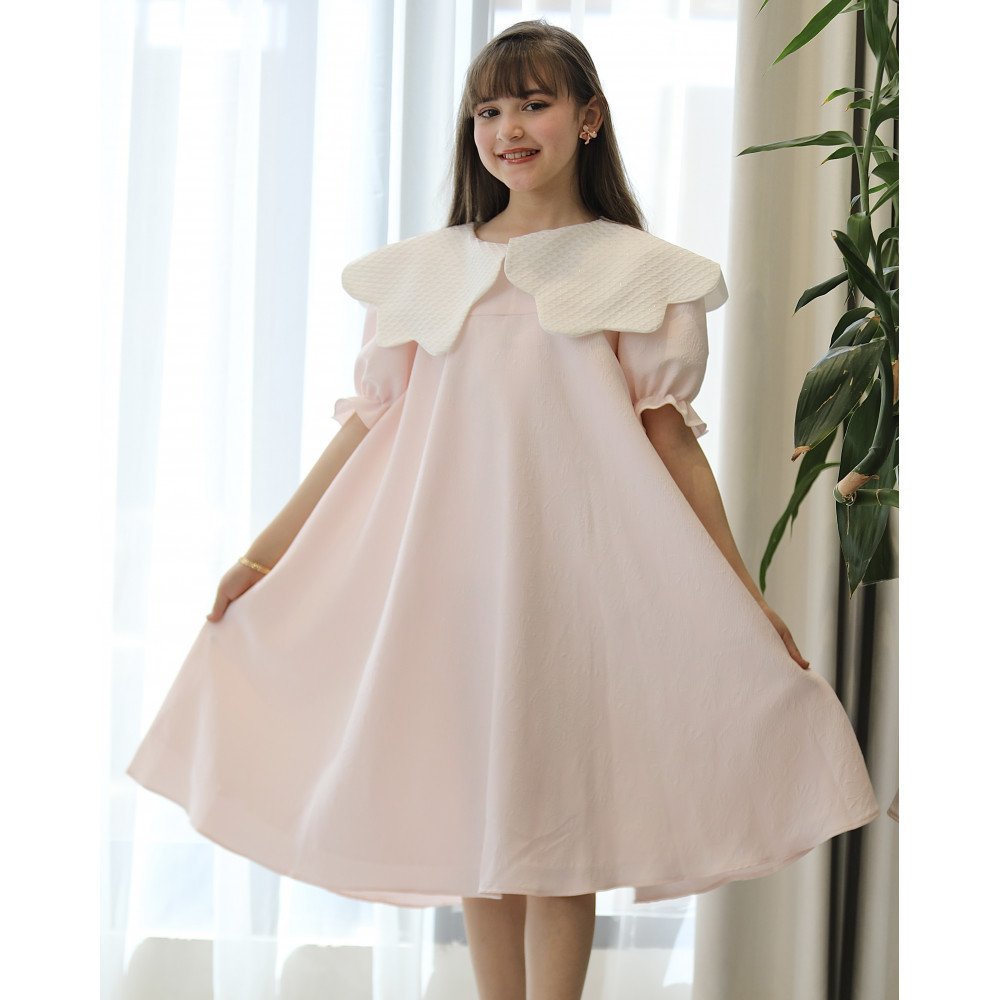فستان بناتي مشجر ورود بتصميم خصر مفتوح ودلعة بيضاء - 1200