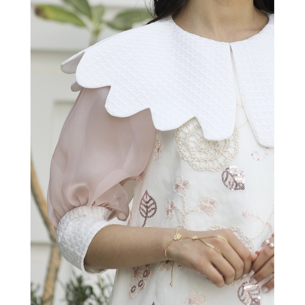 فستان بناتي مطرز بأكمام شفافة | ياقة بيضاء ملكية - 1142