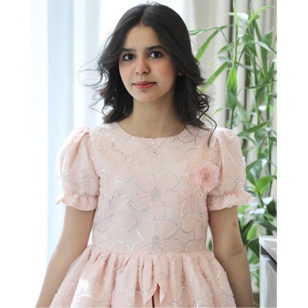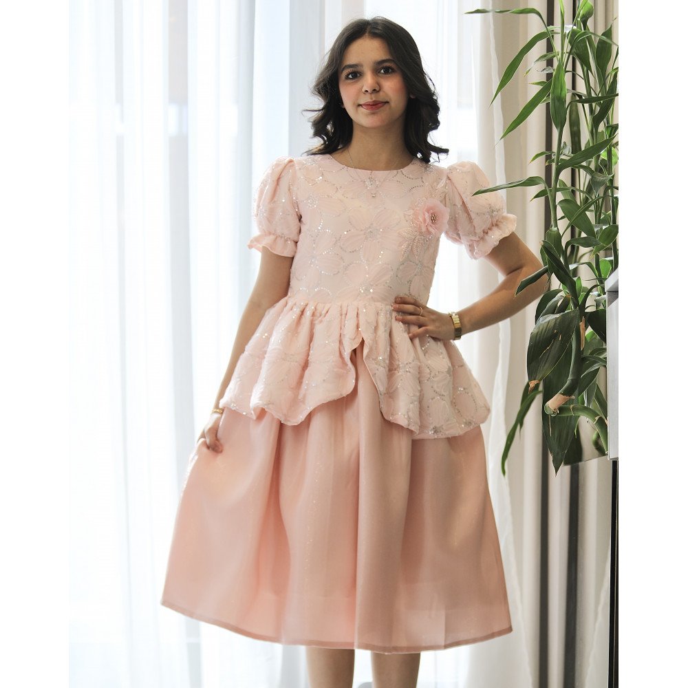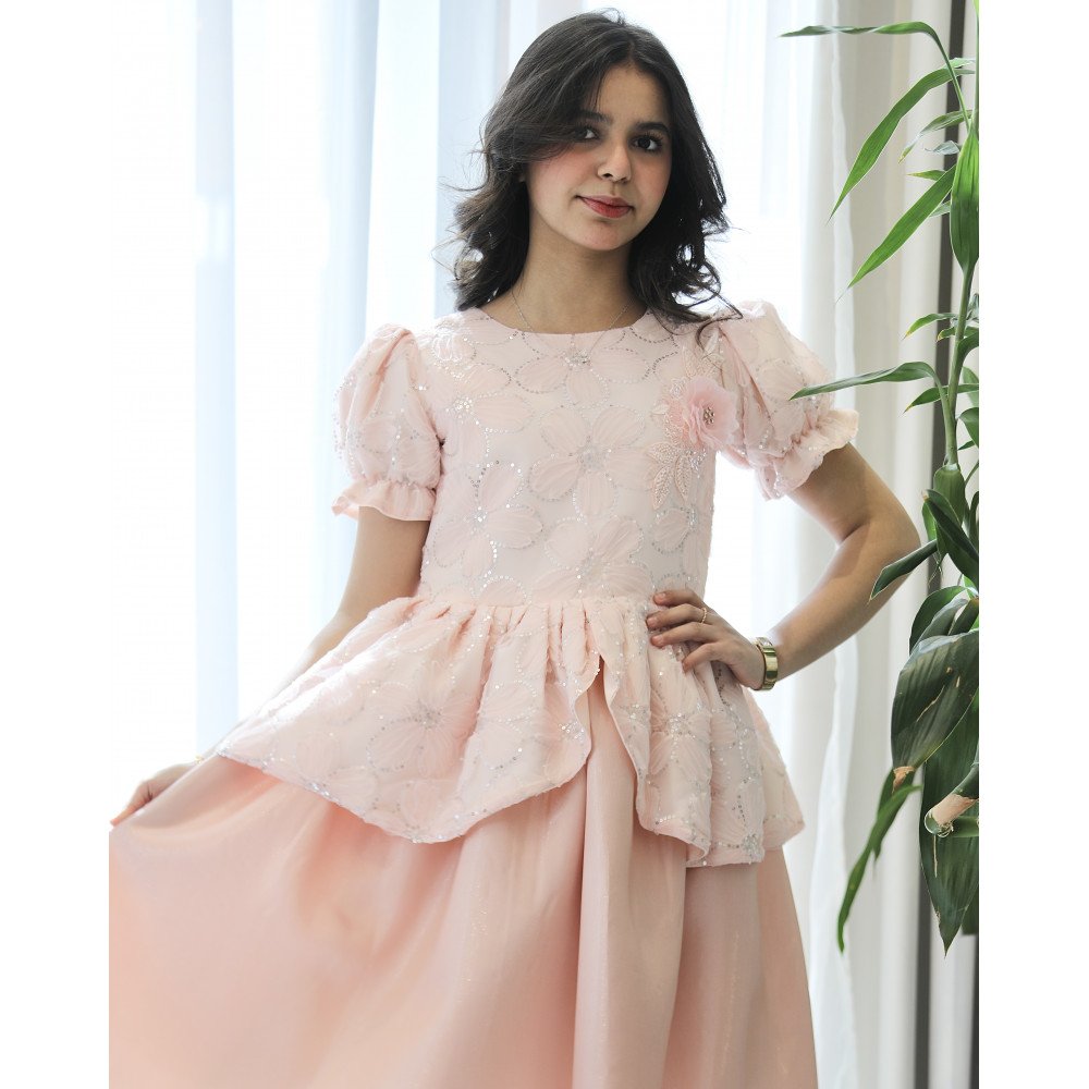 سحر الورد وبريق التطريز.. حين تلتقي الفخامة ببراءة الأميراتفي عالم "توتي كيدز"، نؤمن أن كل فستان يجب أن يحكي قصة جمال، والموديل 1218 هو رواية الأناقة الحالمة لهذا الموسم. يجمع هذا الفستان بين فخامة القماش المطرز ببراعة، ورقّة الوردة التي تتوسط الصدر لتعطي انطباعاً أرستقراطياً يخطف الأنظار. صُمم هذا الفستان ليمنح أميرتك الصغيرة حضوراً طاغياً يفيض بالثقة، حيث تلتقي الأكمام الملكية المنفوشة مع بريق التطريز الذي يغطي الفستان كحديقة من الضوء. إنه ليس مجرد فستان، بل هو قطعة صُممت لتجعل من طفلتك أيقونة للجمال في كل محفل. لماذا هذا الفستان هو قطعة الاستثناء في خزانة أميرتك؟لأنه يجمع بين التصميم الدرامي المتقن وأدق التفاصيل الجمالية:وردة الصدر الثلاثية الأبعاد (3D Flower): يتميز الصدر بوردة ضخمة وراقية مصنوعة يدوياً، تضفي لمسة من الفخامة الحركية وتغنيكِ تماماً عن إضافة أي إكسسوارات معقدة.تطريز فني متكامل: الفستان مشغول بالكامل بتطريزات دقيقة من الخيوط اللامعة والفصوص التي تعكس الضوء بجمال ساحر، مما يمنح الفستان عمقاً وفخامة تليق بأهم المناسبات.أكمام "باف" ملكية: تأتي الأكمام بتصميم منفوش ينتهي بكشكشة رقيقة، مما يضفي لمسة من الدلال والأنوثة ويواكب أحدث صيحات الموضة العالمية لفساتين الأطفال.قصة "بيبلوم" وخصر محدد: يتميز التصميم بوجود طبقة إضافية عند الخصر تمنح الفستان حجماً ملكياً وحركة انسيابية مميزة تبرز جمال القوام.بطانة ناعمة وراحة مطلقة: صُنع الفستان ببطانة داخلية من القطن الناعم لضمان راحة بشرة طفلتك طوال ساعات الاحتفال، مما يتيح لها الحركة واللعب بكل ثقة.جودة تليق بلحظات لا تُنسى نحن نضع الجودة في مقدمة أولوياتنا. هذا الفستان مصنوع بحرفية عالية جداً، من أقمشة مختارة بعناية لتحافظ على رونقها وبريق تطريزها مهما تعددت مرات الارتداء. تقنيات التثبيت اليدوي للوردة تضمن بقاءها بنفس الشكل الفخم، ليبقى الفستان ذكرى جميلة لأجمل الأوقات.امنحيها إطلالة تشرق بـسحر الورد والتطريز! اجعلي من إطلالة أميرتك في المناسبة القادمة لوحة فنية لا تُنسى بقطعة تجمع بين الفن والترف الرسمي.✨ اطلبيه الآن (موديل 1218) ودعي أميرتك الصغيرة تشرق بجمال لا يقاوم! ✨ شاركينا إطلالتها الساحرة!يسعدنا دائماً رؤية أميراتكم يتألقن بتصاميمنا. ندعوكِ لمشاركة صورها وتقييمك للمنتج، فرأيك هو مصدر إلهامنا الدائم لنقدم الأفضل.خدماتنا: نقدم لكِ تجربة تسوق ممتعة مع شحن سريع وموثوق، وسياسة استبدال واسترجاع مرنة لضمان رضاكِ الكامل.