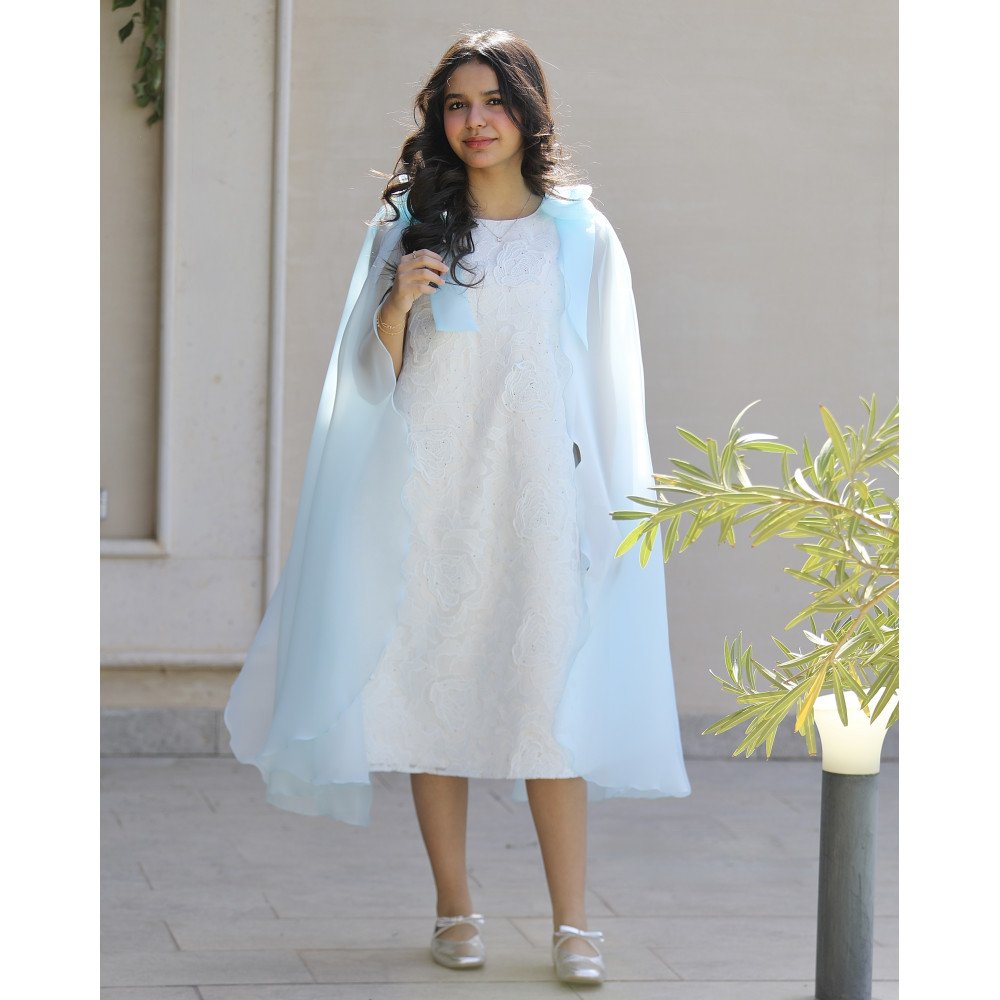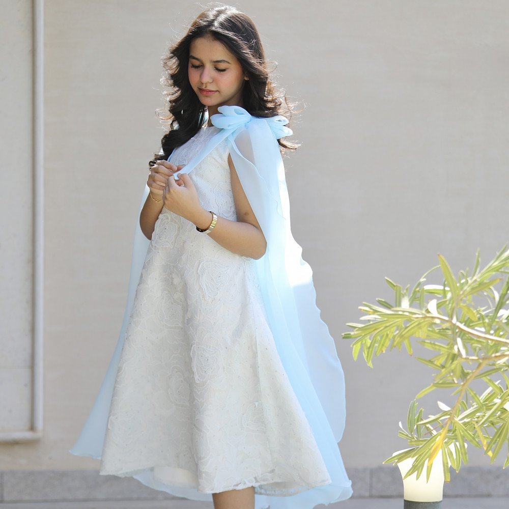 سحر الورود.. حين تعانق الرقة أجنحة الفراشاتفي عالم "توتي كيدز"، لا نصمم مجرد فساتين، بل ننسج أحلاماً ترتديها أميرتك لتشرق في كل مناسبة. نقدم لكِ الموديل 1201، تحفة فنية تجسد الأنوثة الطفولية في أرقى صورها. يبرز جمال هذا الفستان من خلال قماشه الفاخر المزدان بمطرزات ورود كبيرة وبارزة من نفس نوع الخامة، مما يعطيه فخامة "الكوتور" الراقية. وتكتمل اللوحة بتصميم الأكتاف الفريد الذي يحول طفلتك إلى فراشة حقيقية تتألق في سماء الأناقة. إنه ليس مجرد فستان، بل هو القطعة التي ستجعل ابنتك نجمة الحفل المتوجة بسحر الطبيعة. لماذا هذا الفستان هو قطعة الاستثناء في خزانة أميرتك؟لأنه يجمع بين النسيج الغني وأدق التفاصيل الجمالية التي تخطف الأنظار:قماش مطرز بالورود البارزة: يتميز الفستان بنسيج فريد يحمل نقشات ورود ضخمة محاكة ببراعة من نفس القماش، مما يضفي عمقاً بصرياً وفخامة استثنائية تجعل الإطلالة ملكية بامتياز.فيونكات "أجنحة الفراشة الأيقونية": الميزة الأبرز هي الفيونكات الضخمة على الكتفين، والتي ينسدل منها ذيل طويل انسيابي يحاكي أجنحة الفراشة في رقتها وحركتها، مما يضفي لمسة درامية ساحرة مع كل خطوة.لون سماوي حالم: تم اختيار درجة السماوي الهادئة لتناسب نقاء الأطفال وتمنح أميرتك إشراقة ملائكية تناسب حفلات الزفاف، الأعياد، وجلسات التصوير الاستثنائية.قصة انسيابية مريحة: ينسدل الفستان بقصة واسعة ومريحة (A-line)، تتيح لأميرتك الحركة واللعب بكل خفة وثقة مع الحفاظ على مظهرها المرتب والراقي طوال وقت الاحتفال.تفاصيل تسبق الموضة: يدمج التصميم بين كلاسيكية الورود وعصرية الذيول المنسدلة من الأكتاف، مما يجعله القطعة الأكثر تميزاً وجاذبية لهذا الموسم.جودة تليق بلحظات لا تُنسى نحن في "توتي كيدز" نؤمن أن التميز يبدأ من جودة التنفيذ. هذا الفستان مصنوع بحرفية يدوية عالية، من أقمشة مختارة بعناية لتكون ناعمة وباردة على بشرة طفلتك، مع خياطة متقنة تضمن بقاء الذيول والفيونكات محافظة على شكلها الفخم ورونقها مهما تعددت مرات الارتداء.امنحيها إطلالة تشرق بـفخامة الورد وبريق الفراشات! اجعلي من إطلالة أميرتك في المناسبة القادمة ذكرى لا تُمحى بقطعة تجمع بين الفن والترف.✨ اطلبيه الآن (موديل 1201) ودعي أميرتك الصغيرة تشرق بجمال لا يقاوم! ✨ شاركينا إطلالتها الساحرة!يسعدنا دائماً رؤية أميراتكم يتألقن بتصاميمنا التي تعكس ذوقكم الرفيع. ندعوكِ لمشاركة صورها وتقييمك للمنتج، فرأيك هو مصدر إلهامنا الدائم لنقدم الأفضل دائماً.خدماتنا: نقدم لكِ تجربة تسوق ممتعة مع شحن سريع وموثوق، وسياسة استبدال واسترجاع مرنة لضمان رضاكِ الكامل.