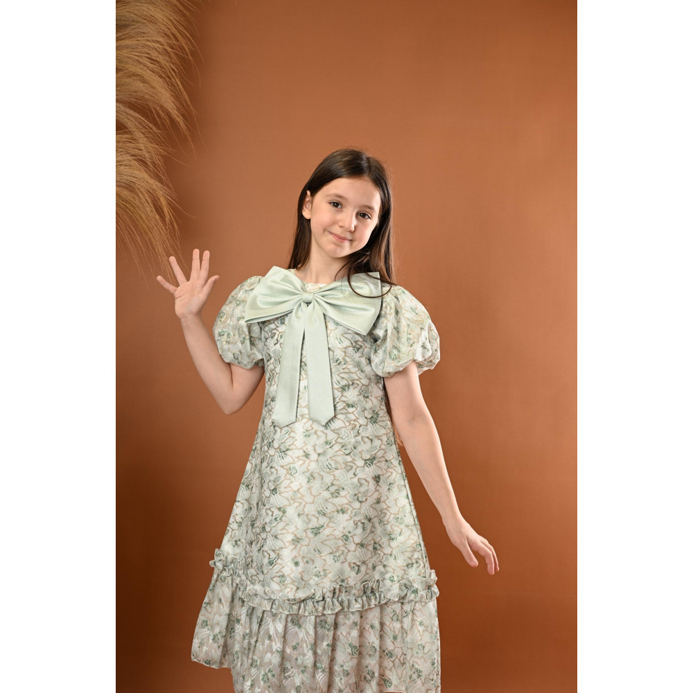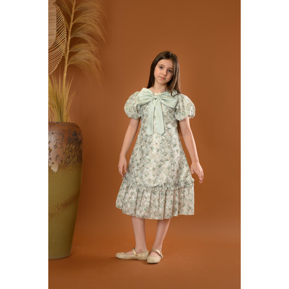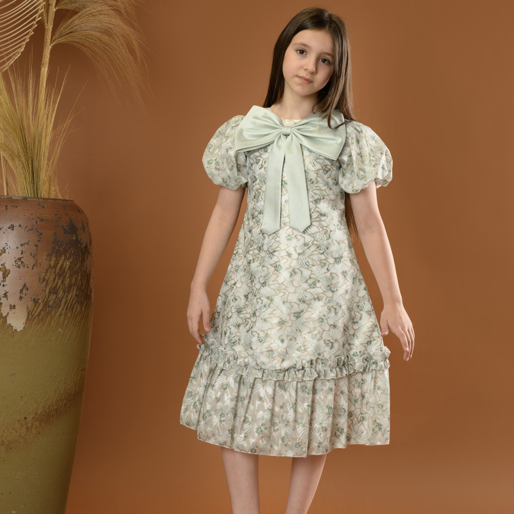 اجعلي طفلتك تتألق بإطلالة أنثوية ورقيقة مع هذا الفستان المميز من ماركة ميدي كيدز Midikids. يتميز الفستان بنقشات زهرية ناعمة، مع فيونكة كبيرة على الصدر تضيف لمسة أنيقة وجذابة. الأكمام المنتفخة والتصميم الكلاسيكي مع الكشكش عند الحافة يضفيان على الفستان مظهراً حالماً ومثالي للمناسبات الخاصة مثل الحفلات والأعياد. مصنوع من خامات عالية الجودة لضمان الراحة والأناقة. اختاري علامة ميدي كيدز Midikids للحصول على تصميم يجمع بين الجمال والرقي