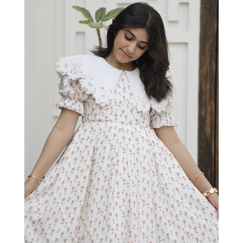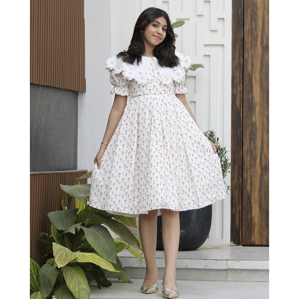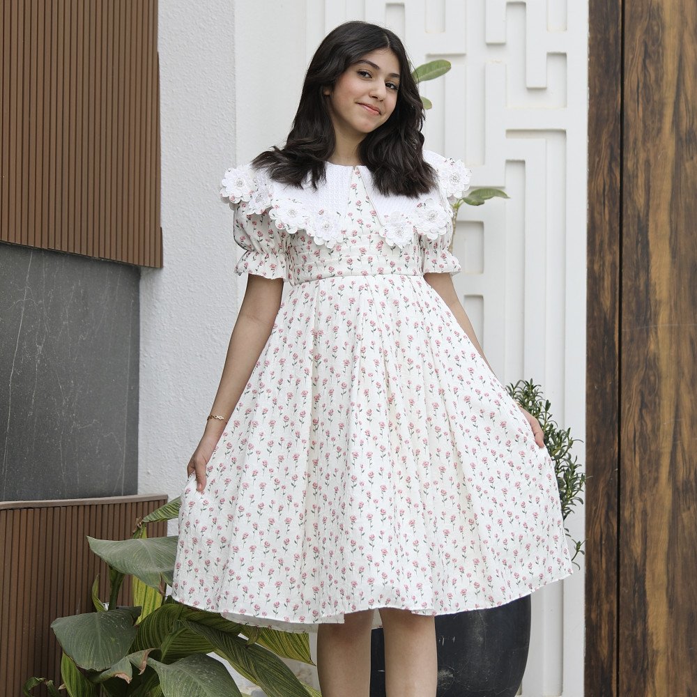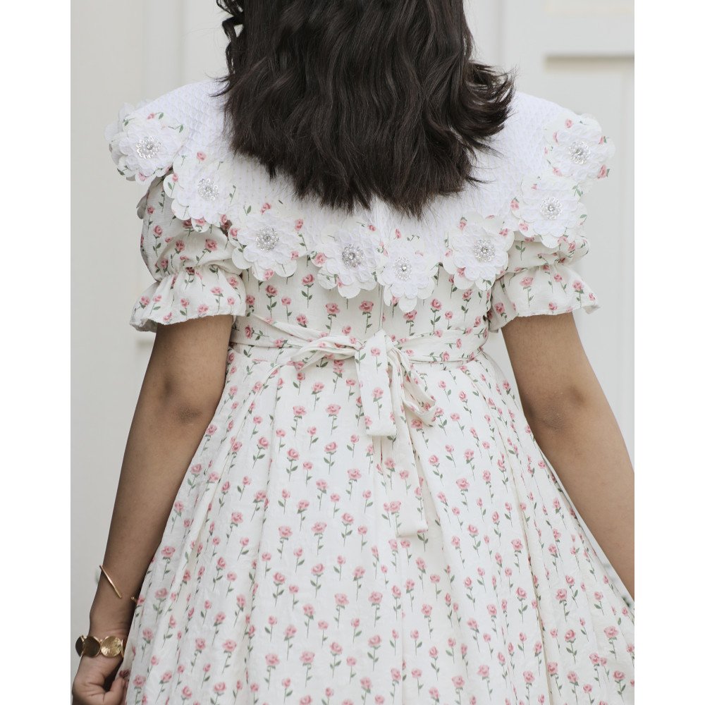 سحر الطبيعة.. حين تتحول الزهور إلى حكاية أناقةهناك فساتين مصممة لتكون مجرد ملابس، وهناك فساتين صُممت لتكون قصيدة من الجمال، وهذا الفستان هو عنوان للرقة والبهجة. نقدم لكِ تحفة فنية مستوحاة من بساتين الربيع، حيث تتفتح الزهور الملونة على قماش فاخر ينسدل بنعومة ملكية. صُمم هذا الفستان ليمنح أميرتك الصغيرة إطلالة تفيض بالحيوية والأنوثة، بفضل تداخل طبقات الصدر التي تضفي حركية فنية مذهلة، ولمسة البريق التي تزيّن الرقبة. إنه ليس مجرد فستان، بل هو دعوة لتتألق طفلتك كنجمة في كل احتفال. لماذا هذا الفستان هو خيارك الأرقى؟لأنه يجمع بين التصميم الفني المبتكر وأدق التفاصيل الجمالية:نقشة زهور ساحرة: يتميز الفستان بقماش مورد بنقشات زهور رقيقة وألوان متناغمة تمنح طفلتك إشراقة ربيعية مبهجة.طبقات الصدر المبتكرة: يزدان الصدر بتصميم الطبقات المتتالية (Ruffles) التي تمنح الفستان حجماً وانسيابية، مما يضفي طابعاً فخماً ومميزاً على القصة.رقبة "دلعة" مرصعة: تأتي الرقبة بقصة "دلعة" أنيقة وواسعة تبرز جمال التصميم، ومحددة بصف من الفصوص اللامعة (الستراس) التي تضفي بريقاً ساحراً حول الوجه.قصة تبرز البراءة: التصميم يجمع بين الأناقة والراحة، مما يتيح لأميرتك الحركة بحرية تامة مع الحفاظ على إطلالتها الملكية.مثالي للمناسبات الراقية: هذا الفستان المورد الفاخر هو الخيار الأمثل للأعياد، حفلات الزفاف، والمهرجانات التي تتطلب إطلالة استثنائية تخطف الأنظار.جودة تليق بلحظات لا تُنسى نحن في "توتي كيدز" نعلم أنكِ تبحثين عن الجودة قبل كل شيء. هذا الفستان مصنوع بحرفية عالية من أقمشة باردة وناعمة على بشرة الأطفال، مع خياطة متقنة تضمن ثبات الطبقات والفصوص لتبقى القطعة محتفظة برونقها بعد كل استخدام.امنحيها إطلالة تتفتح كـالزهور! اجعلي من مناسبتها القادمة ذكرى لا تُنسى بقطعة تجمع بين الفن والأناقة.✨ اطلبيه الآن ودعي أميرتك الصغيرة تتألق بسحر لا يُقاوم! ✨شاركينا إطلالتها المشرقة يسعدنا جداً أن نرى صور أميراتكم وهن يتألقن بهذا التصميم الفريد. ندعوكِ لمشاركة تجربتك وتقييمك، فرضاكم هو ما يدفعنا للإبداع دائماً.خدماتنا: نقدم لكِ تجربة تسوق ممتعة مع شحن سريع وموثوق، وسياسة استبدال واسترجاع مرنة لضمان رضاكِ الكامل.