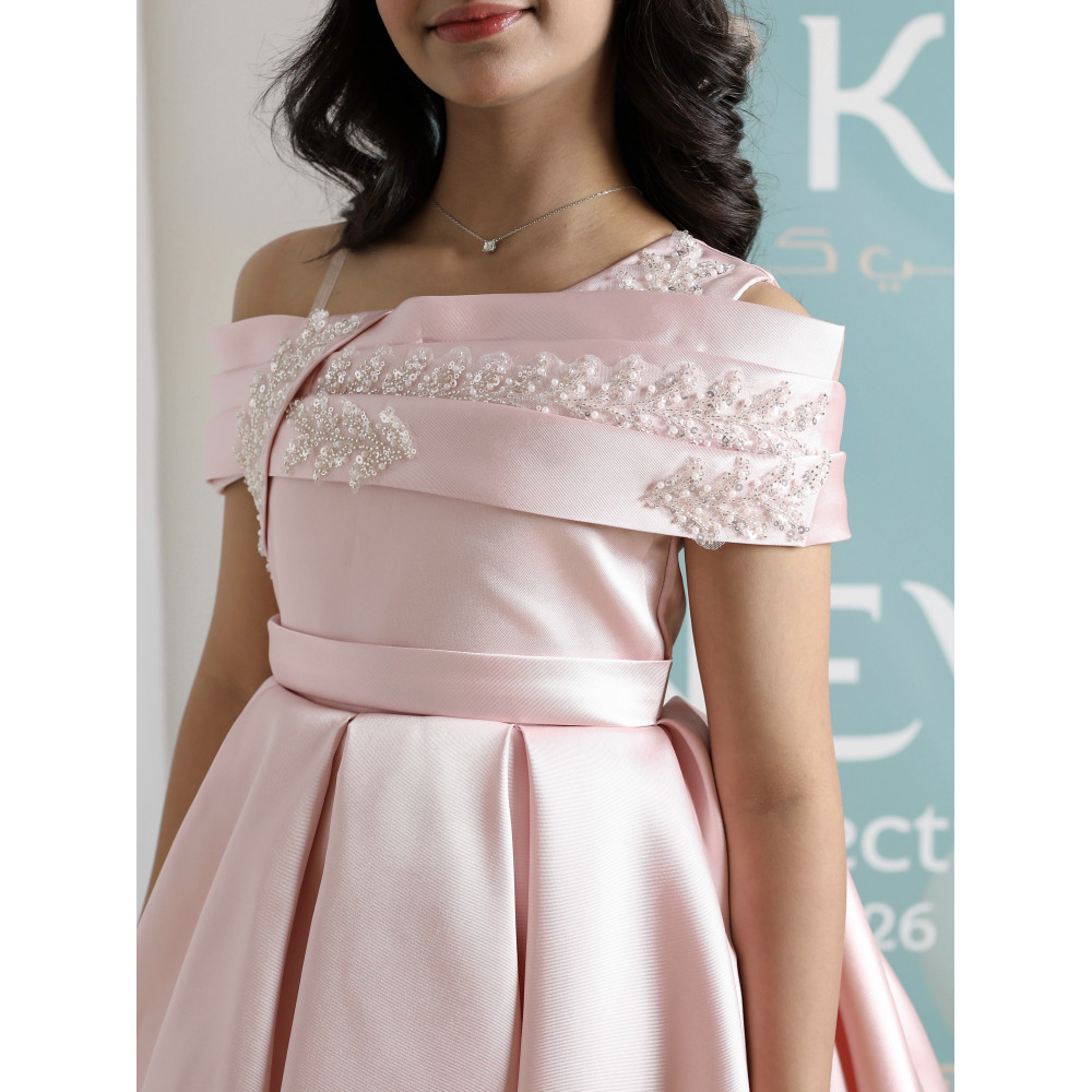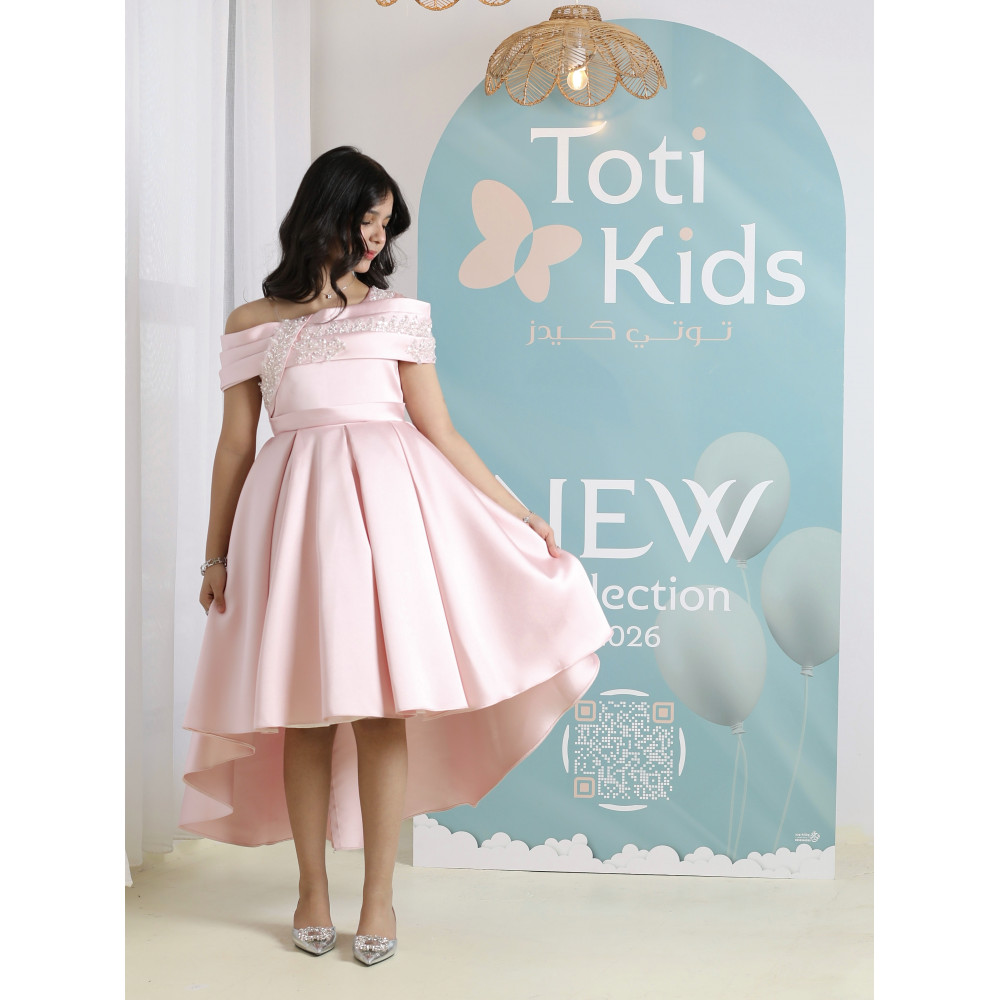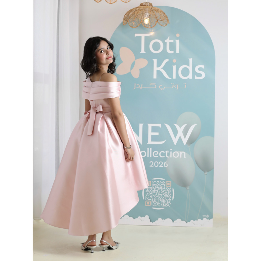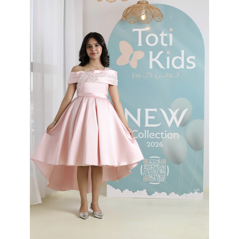 إطلالة الأميرات العصرية.. سحرٌ يجمع بين النعومة والجرأةلكل أميرة عصرية إطلالة تبرز تفردها، وهذا الفستان صُمم ليحكي قصة من الأناقة والتميز. نقدم لكِ قطعة فنية تجمع بين النعومة الحالمة للون الوردي، والجرأة الراقية لقصة الأكتاف المكشوفة، والفخامة العصرية لتصميم الهاي-لو. كل تفصيلة في هذا الفستان، من الكريستال اللامع على الصدر إلى طيات الساتان الغنية، صُنعت لتمنح أميرتك إطلالة استثنائية تجعلها محط الأنظار في كل مناسبة كبرى. لماذا هذا الفستان هو إطلالة الأميرات العصرية؟لأنه يجمع بين التصميم الجريء، فخامة الساتان، وتفاصيل تخطف الأنظار.تصميم أوف شولدر راقٍ: يتميز الفستان بقصة "أوف شولدر" (Off-shoulder) أنيقة، مع صدر مرصع بالكريستال البراق الذي يضفي لمسة من الفخامة والجاذبية.قصة هاي لو (High-low) عصرية: يأتي الفستان بقصة "هاي لو" مميزة، قصيرة من الأمام وطويلة من الخلف، مما يمنح إطلالة درامية وعصرية تبرز جمال التصميم.قماش ساتان فاخر: صُنع هذا الفستان البناتي الوردي الفاخر من أجود أنواع قماش الساتان المتماسك، الذي يمنح التنورة قصتها المنفوشة بكسرات غنية.تفاصيل خلفية أنيقة: يكتمل التصميم من الخلف بفيونكة ناعمة أعلى السحاب، تضيف لمسة من الرقة المتكاملة.مثالي لأعظم المناpesas: هذا الفستان الوردي للأفراح هو الخيار الأول لحفلات الزفاف، والأعياد، والمناسبات التي تتطلب إطلالة عصرية وفاخرة. جودة تليق بأميرتكعند البحث عن فستان سهرة بناتي فاخر، فإن هذا التصميم يقدم كل ما تبحثين عنه من فخامة وجودة. مصنوع بحرفية عالية ليدوم طويلاً ويبقى ذكرى لأجمل اللحظات. ✨ اطلبيه الآن لتتألق بإطلالة عصرية لا تُنسى! ✨