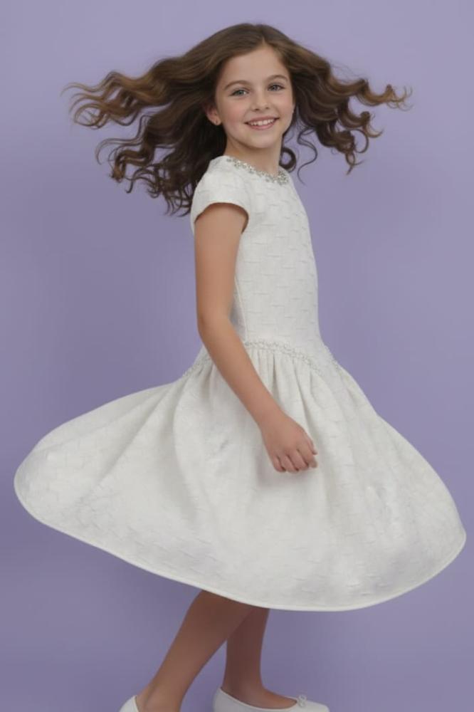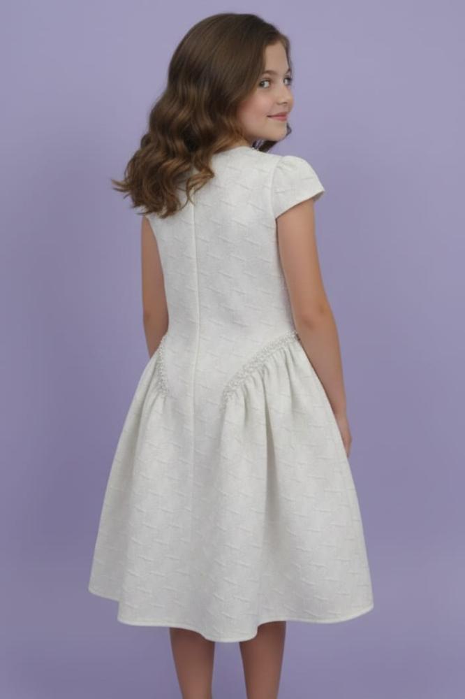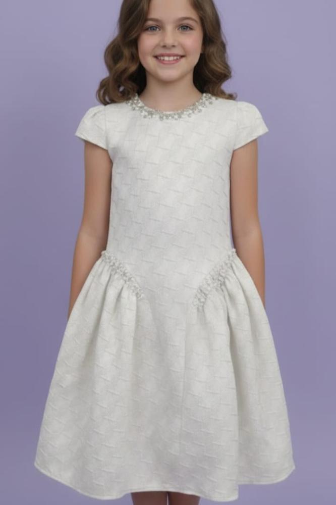 فستان بيج مزين بالؤلؤ على الجوانب جاكار