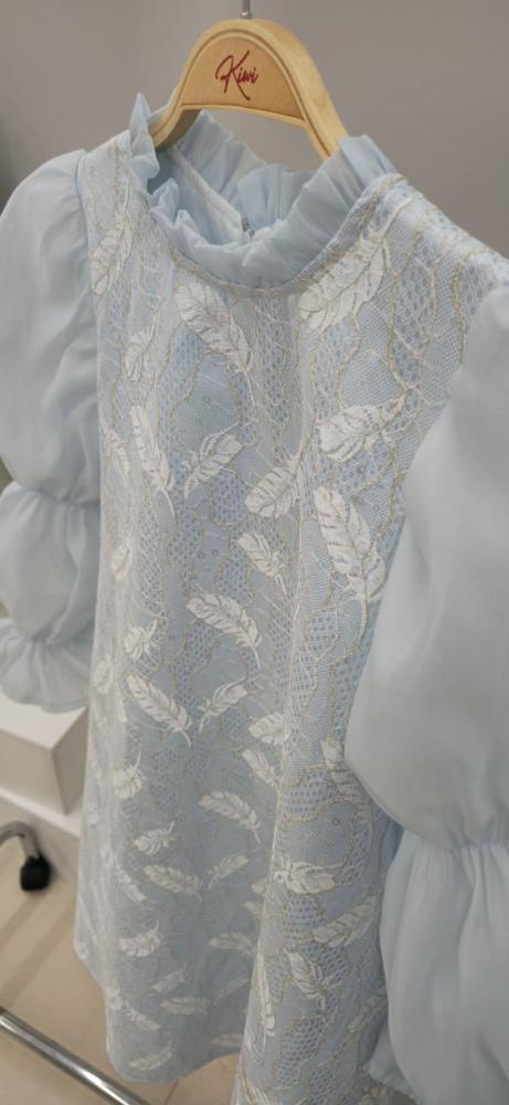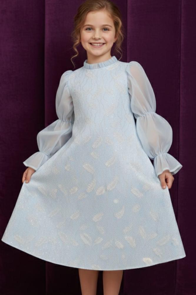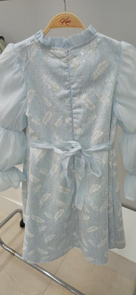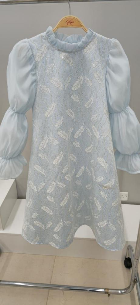 فستان سماوي كم طويل بلمسات ناعمة