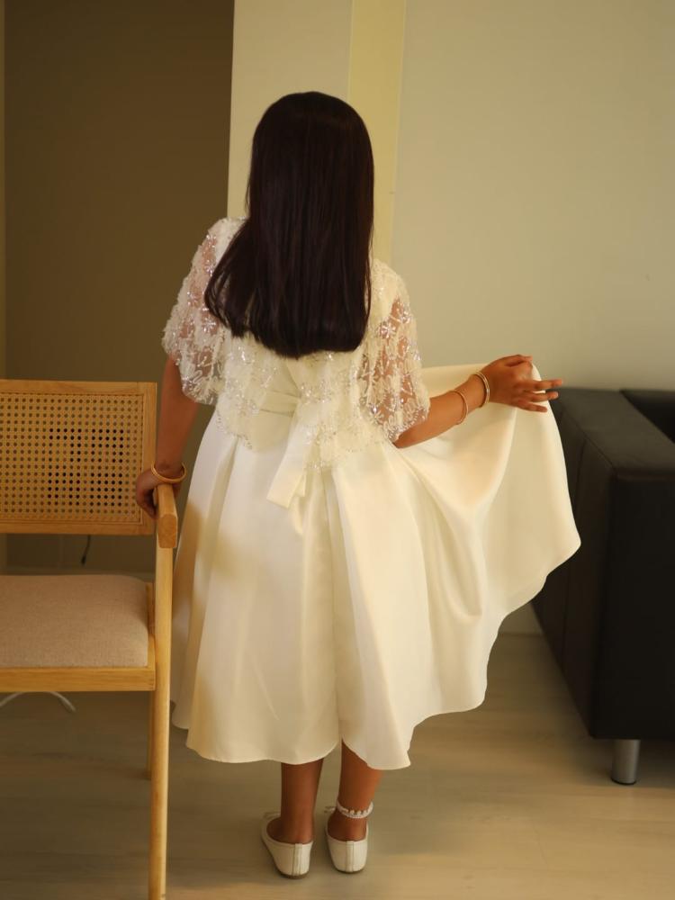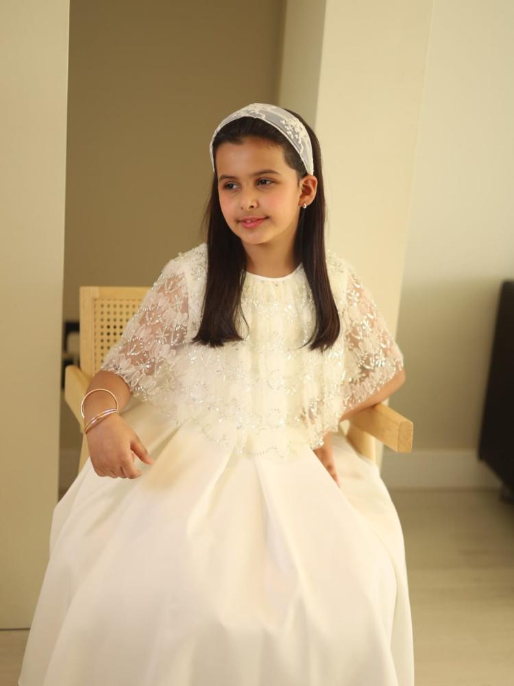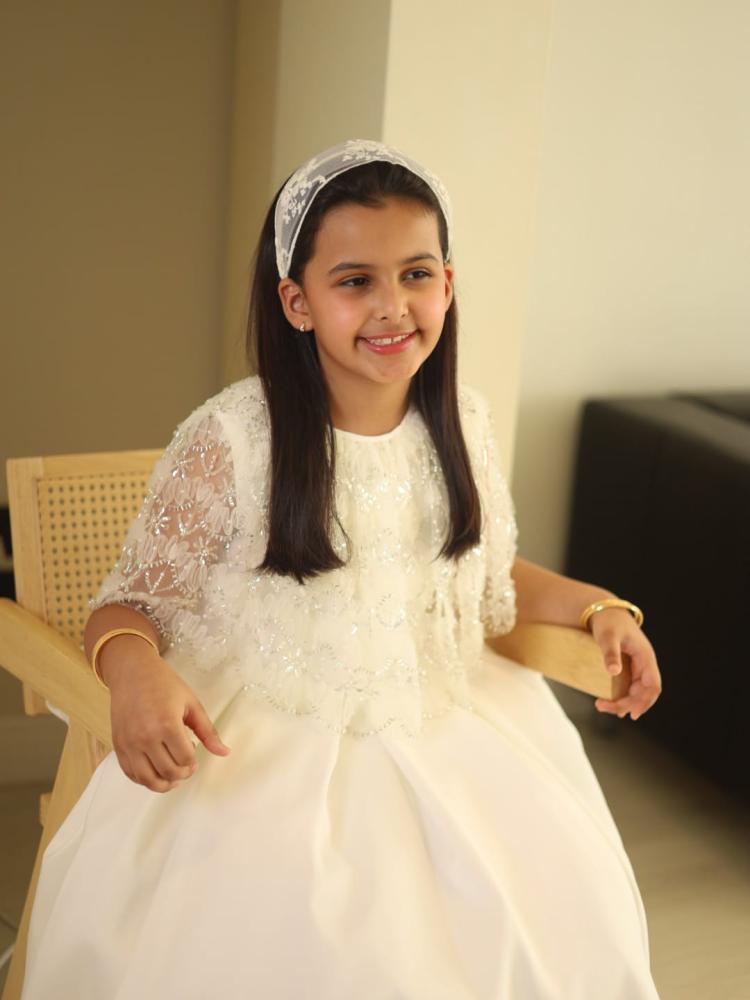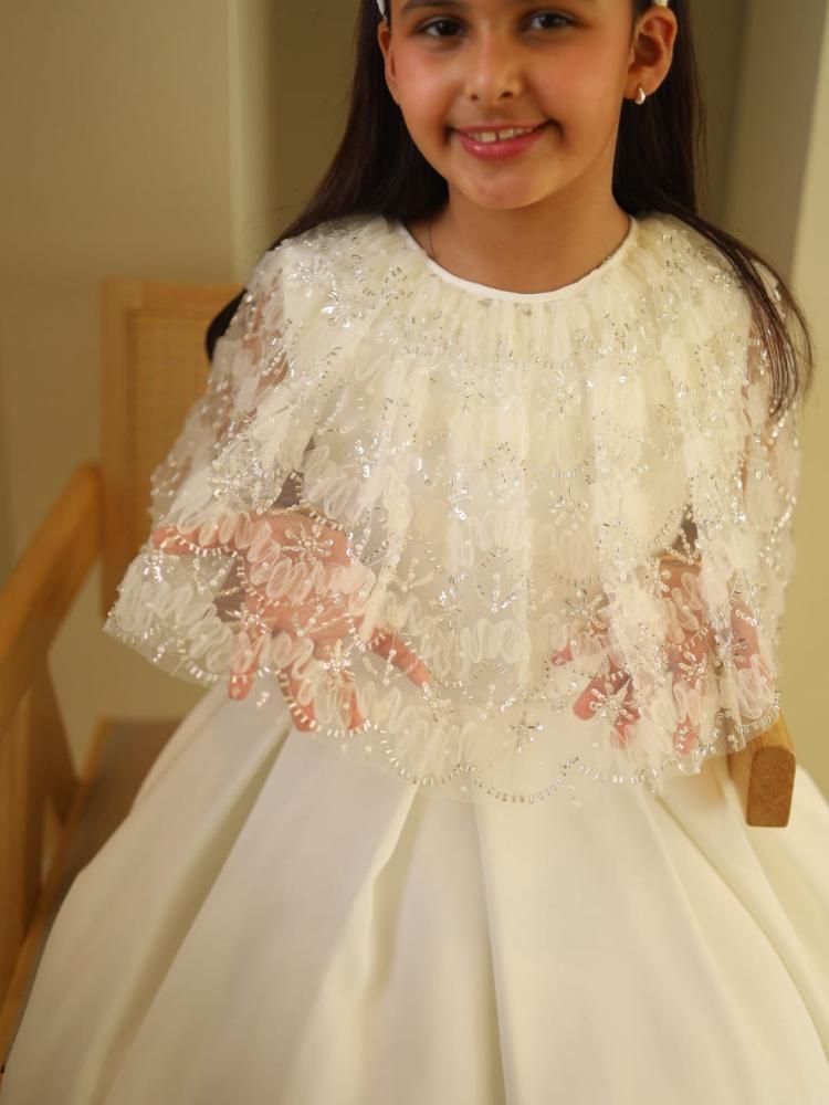 فستان سهرة أطلالة ملكية بلمسات اللؤلؤ والدانتيل