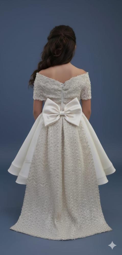 فستان سهرة الفخامة بيج ذيل وصدر مزين باللول