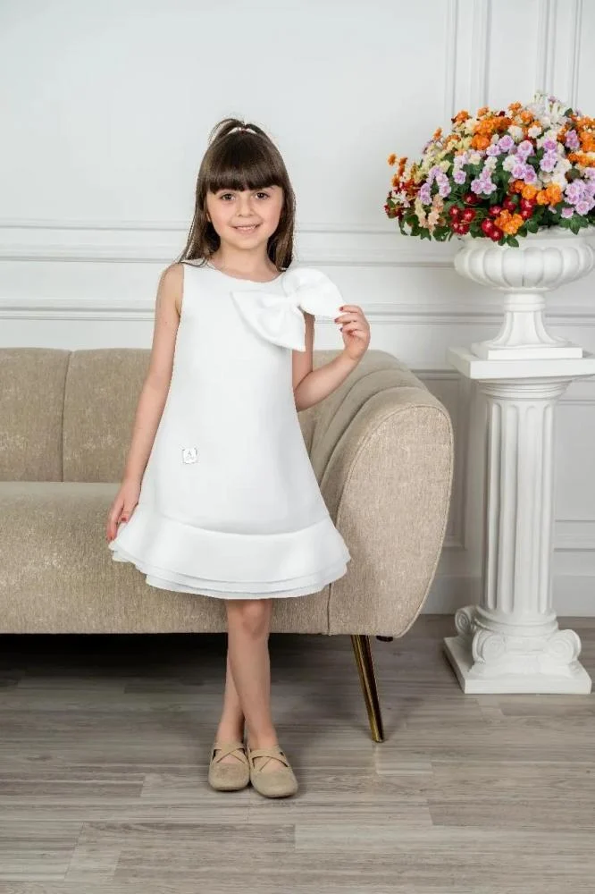 اجعلي طفلتك تتألق كالأميرات في المناسبات الخاصة مع فساتين سهرة بناتي المصممة بعناية. يتميز هذا الفستان الأبيض الأسفنجي بفيونكة أنيقة على الكتف وتصميم قصير يصل إلى الركبة، مما يجعله الخيار المثالي للحفلات، الأعراس، والتجمعات العائلية.