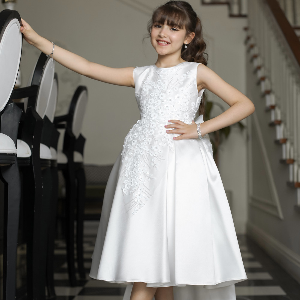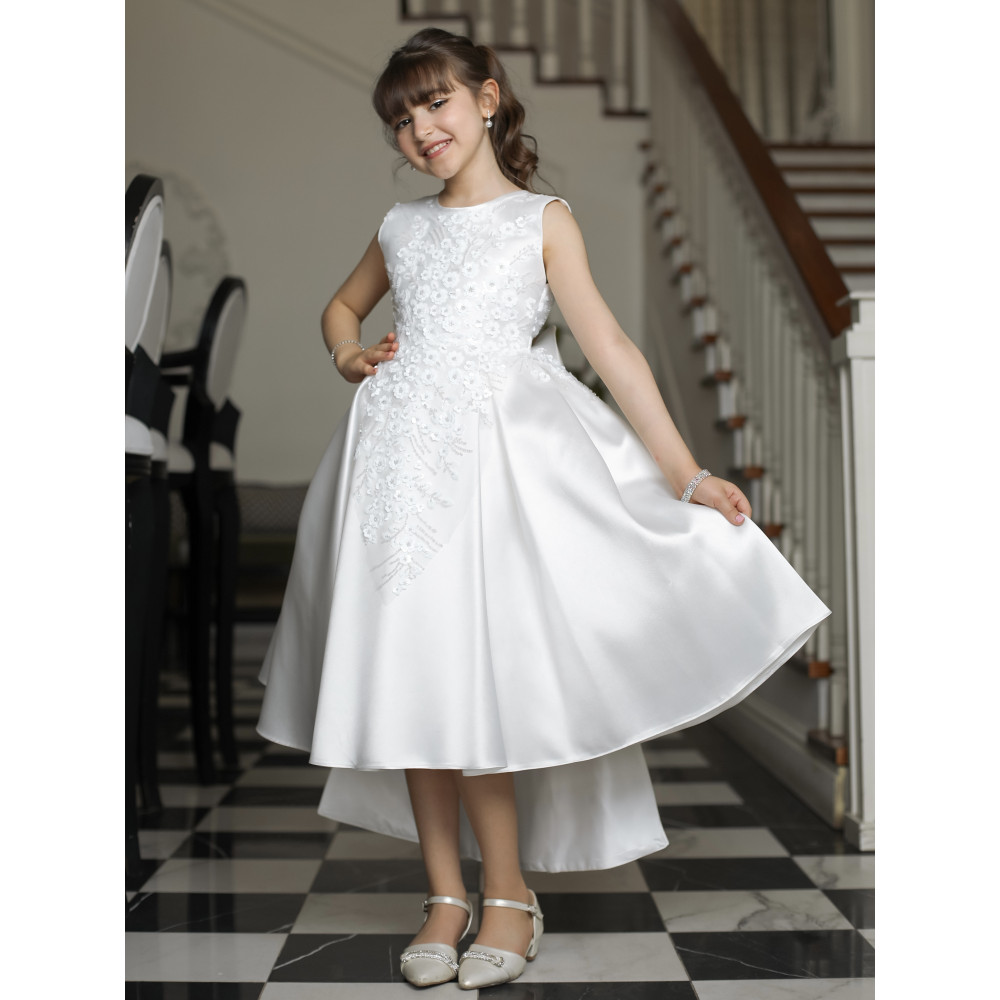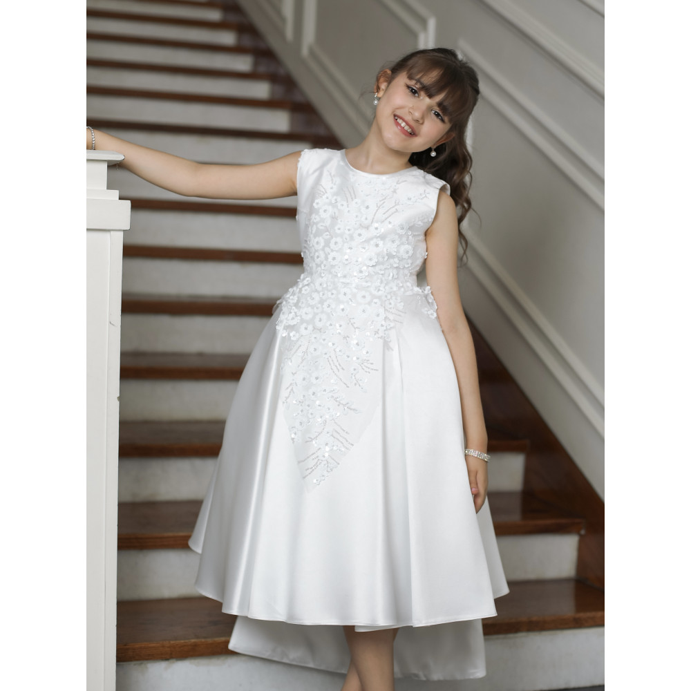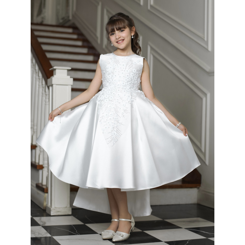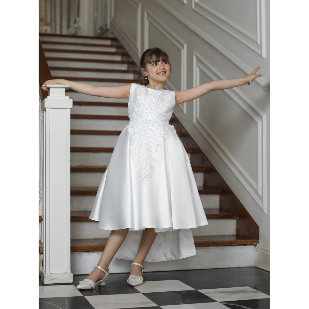 إطلالة ملاك.. قطعة منسوجة من النور والرقيهناك فساتين تروي قصصًا من النقاء والسحر، وهذا الفستان هو أجملها. نقدم لكِ قطعة فنية تبدو وكأنها سحابة بيضاء، مصممة لتمنح أميرتك إطلالة ملائكية تخطف القلوب والأنظار. بتصميمه الذي يجمع بين فخامة قماش الساتان ودقة التطريز اليدوي، يبرز هذا الفستان كتحفة فنية تليق بأهم لحظاتها. إنه ليس مجرد فستان، بل هو تجسيد حي للبراءة والأناقة الراقية.لماذا هذا الفستان هو قطعة استثنائية؟لأنه يجمع بين التصميم الراقي، فخامة الأقمشة، والتفاصيل التي تأسر القلوب.تصميم عصري بقصة هاي لو: يتميز الفستان بقصة "هاي لو" (High-low)، حيث تكون التنورة قصيرة من الأمام وطويلة من الخلف، مما يضفي لمسة عصرية ودرامية على الإطلالة.تطريز يدوي فاخر: يزدان صدر الفستان بتطريزات يدوية نافرة على شكل زهور وأغصان، تتناثر بنعومة لتخلق تأثيرًا بصريًا مذهلاً ينم عن حرفية عالية.قماش ساتان راقٍ: صُنع هذا الفستان البناتي الأبيض للأفراح من قماش الساتان عالي الجودة، الذي يمنح التنورة قصة منفوشة وثابتة، مع لمعان راقٍ يعكس الضوء بأناقة.مثالي لأهم المناسبات: هذا الفستان البناتي بتطريز يدوي هو الخيار الأمثل لحفلات الزفاف، والأعياد، والمناسبات الرسمية التي تتطلب إطلالة ملكية مكتملة. جودة تليق بالأميرات متوفر بمقاسات من 1 إلى 18 سنة ✨ اطلبيه الآن ودعيها تتربع على عرش الأناقة والرقي! ✨