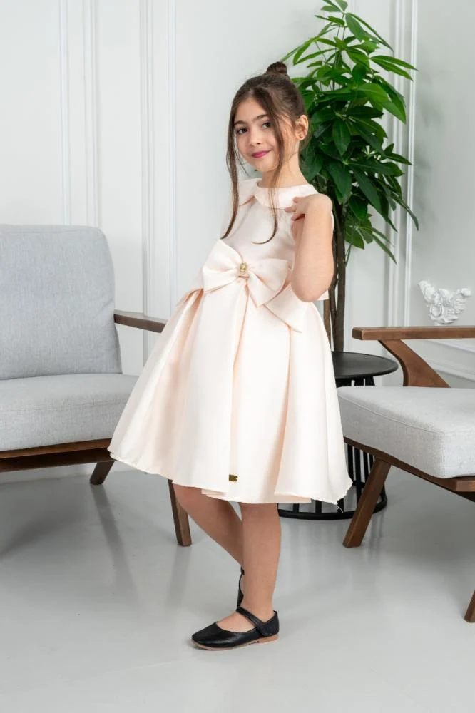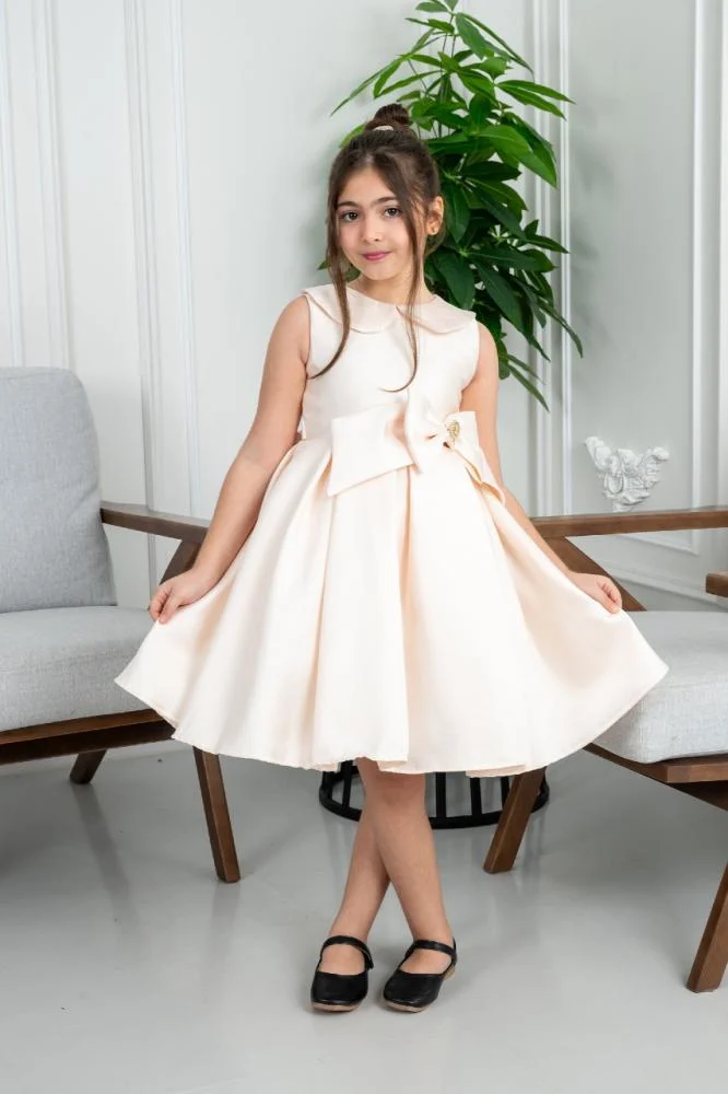 🌟 فستان بناتي فاخر باللون الأبيض العاجي – لمسة ملكية لأميرتك الصغيرة 🌟 ✨ الوصف فستان سهرة أنيق مصمم خصيصًا ليمنح صغيرتك إطلالة راقية في المناسبات الخاصة. يتميز بقصة كلاسيكية فخمة مع ياقة بتصميم راقٍ يضفي لمسة ناعمة. يزينه فيونكة كبيرة عند الخصر مزينة بحلية أنيقة، مع تنورة واسعة تمنح مظهراً جذاباً عند الحركة. الفستان مصنوع من قماش ساتان فاخر بملمس ناعم وانسيابي، ما يجعله خيارًا مثاليًا للمناسبات المميزة.