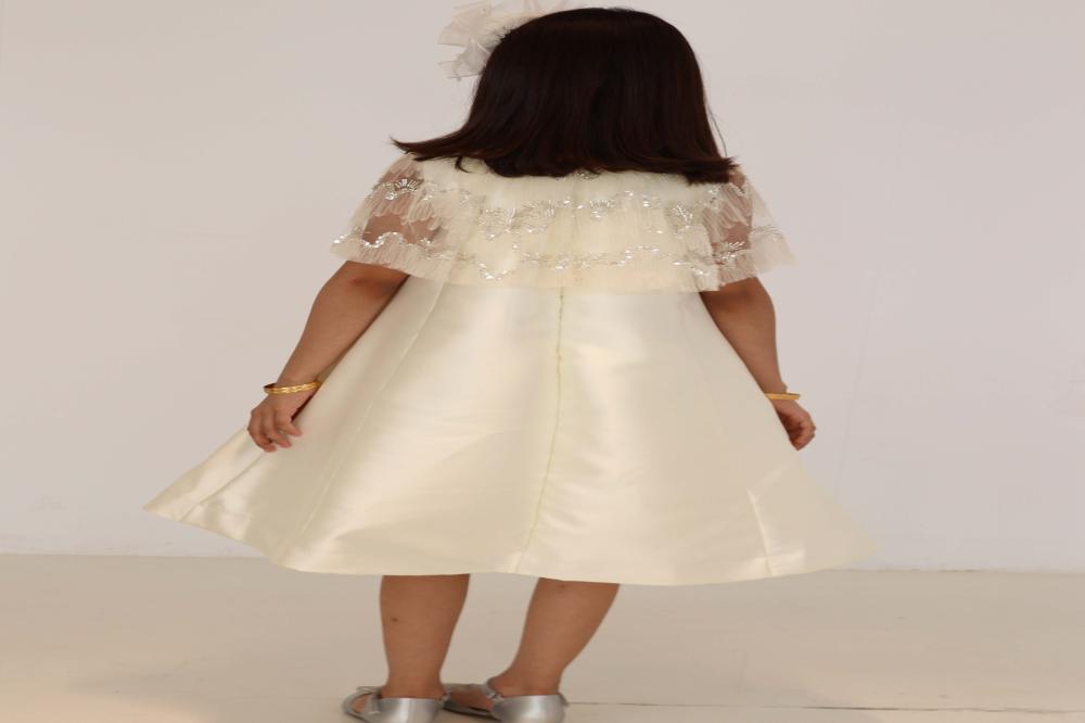 فستان سهرة بيجمع التل والترتر على الاكتاف والصدر