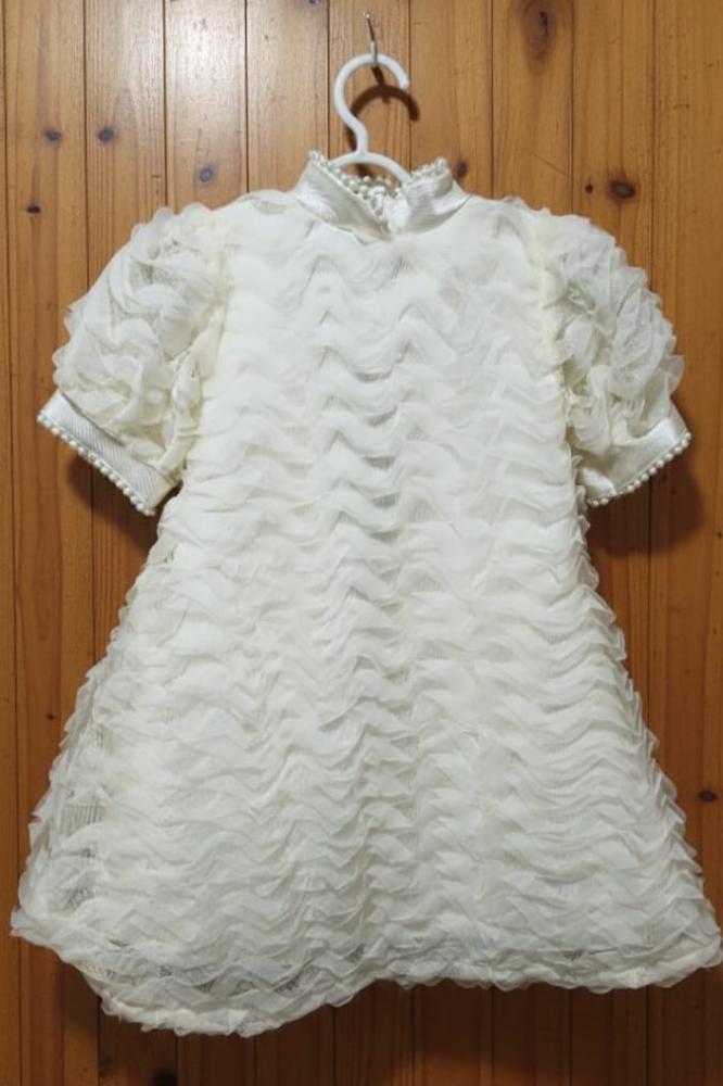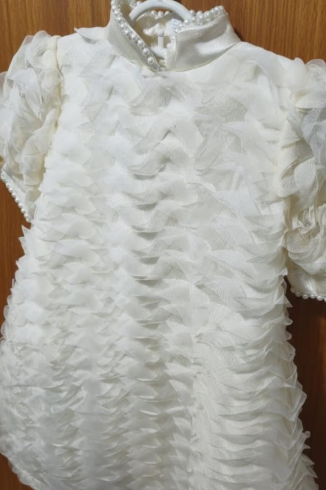 فستان سهرة بيج وتل مع الكسرات الانيقه