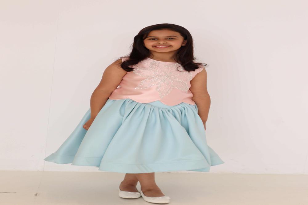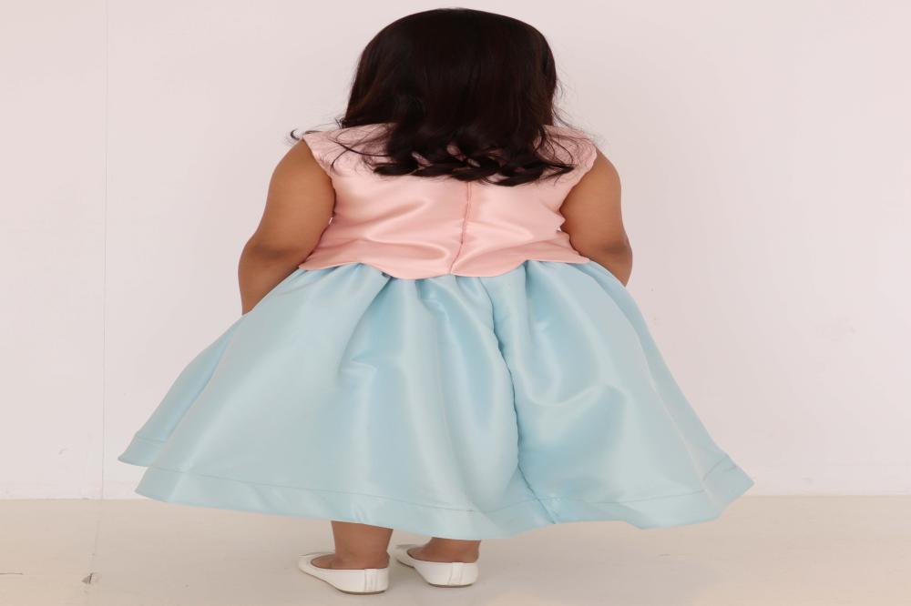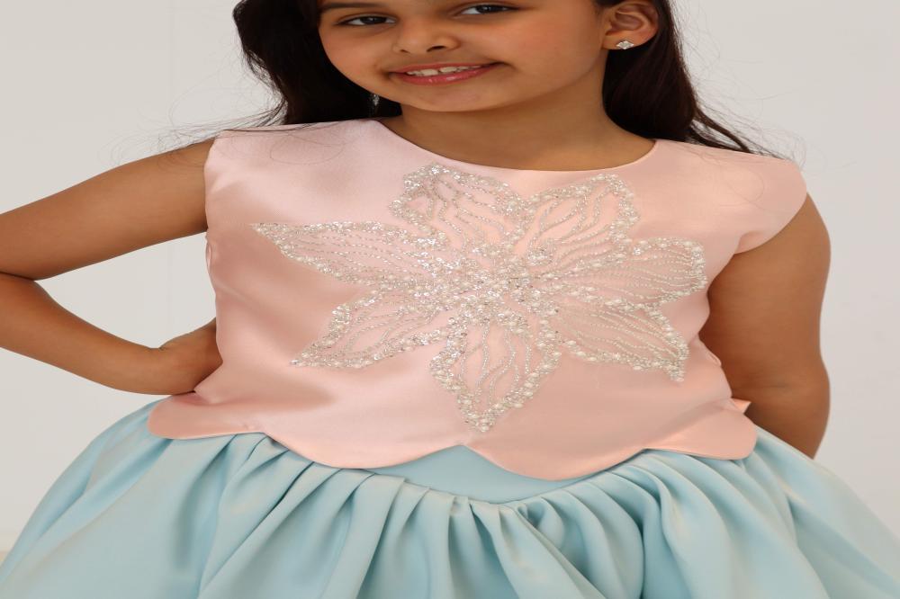 فستان سهرة مزيج الفخامة والاناقه باللونين الوردي الفاتح والسماوي
