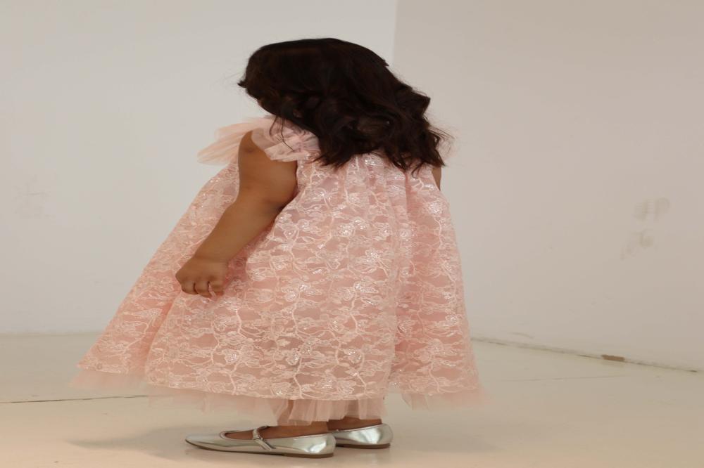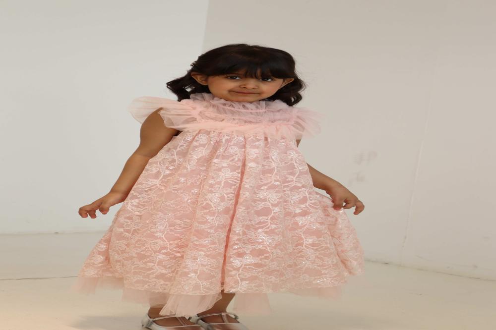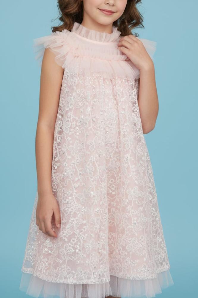 فستان لحمي بالتل على الاكتاف والنهايات