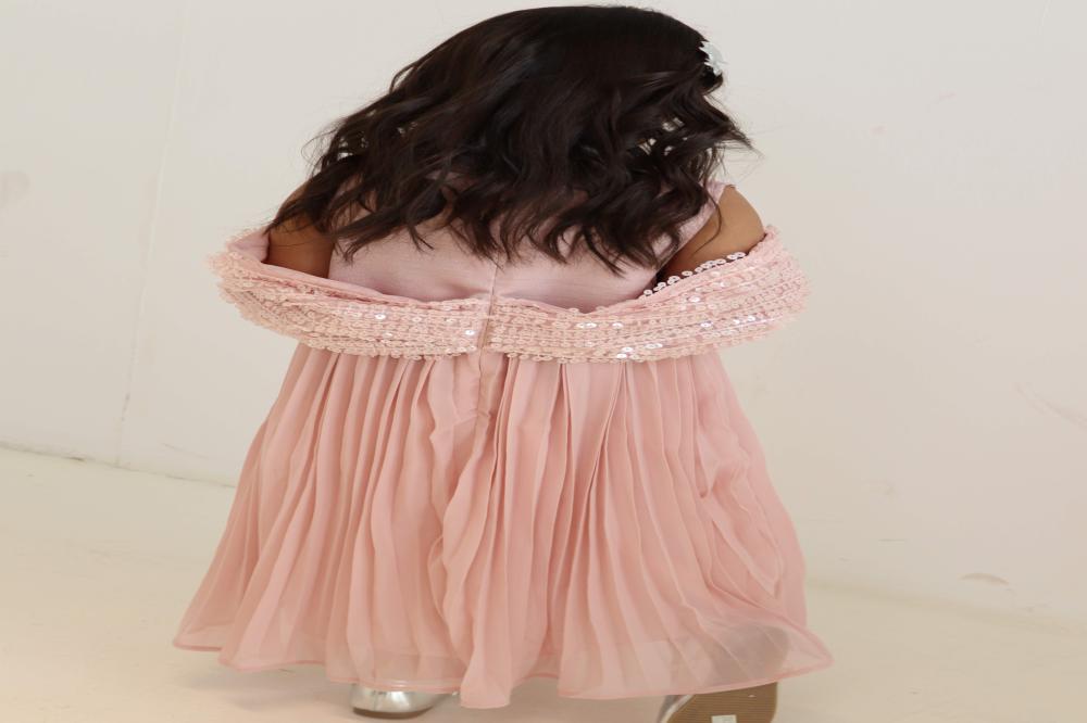 فستان لحمي مع فينكه انيقه على الصدر والاكتاف ترتر وتل على الفستان